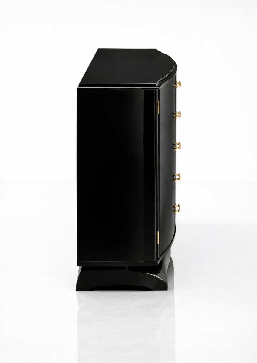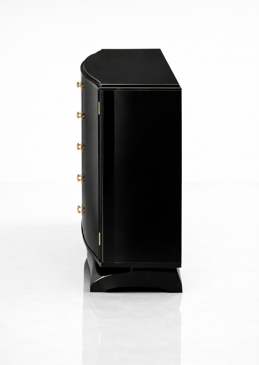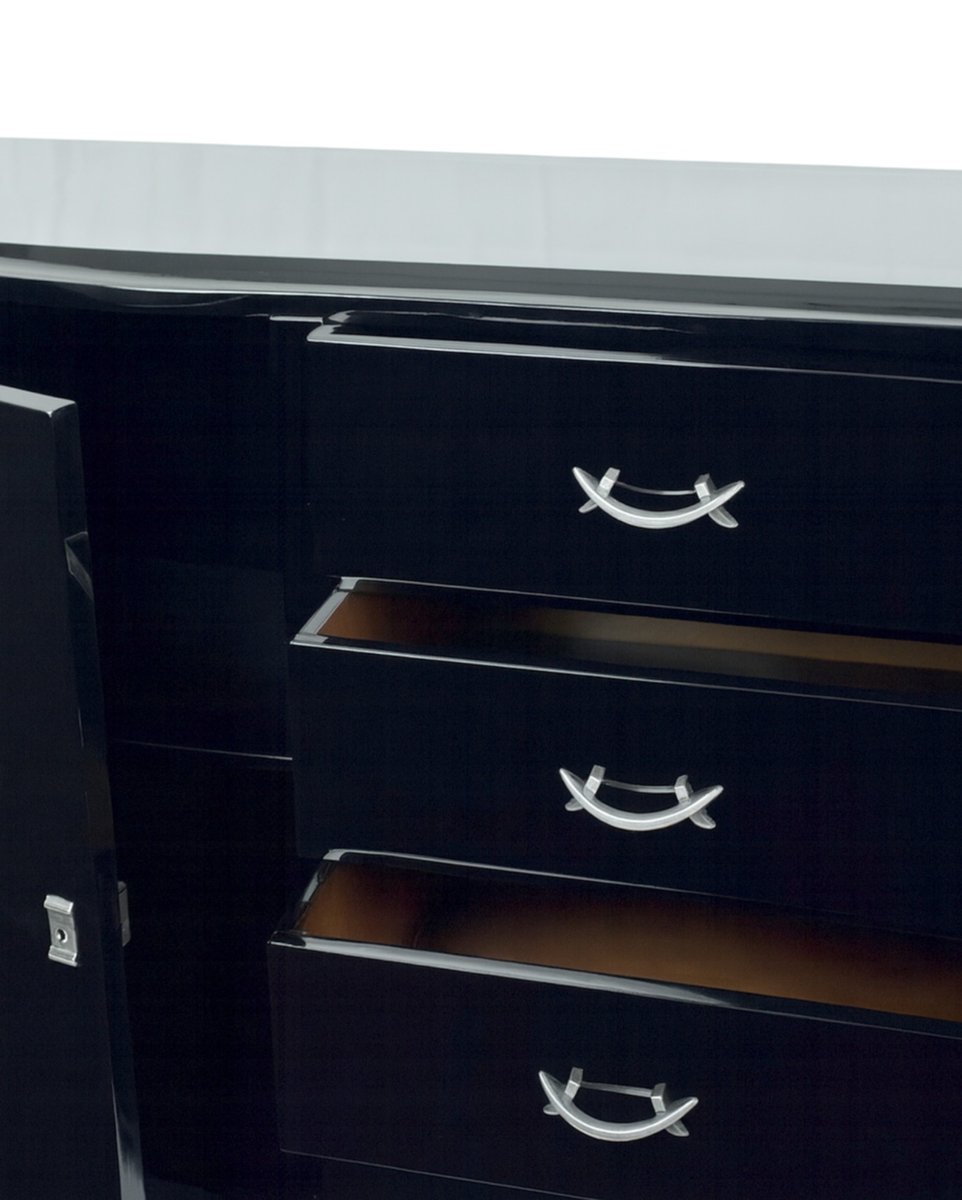 Art Deco Black Lacquered Copper-Plated Credenza, 1940s