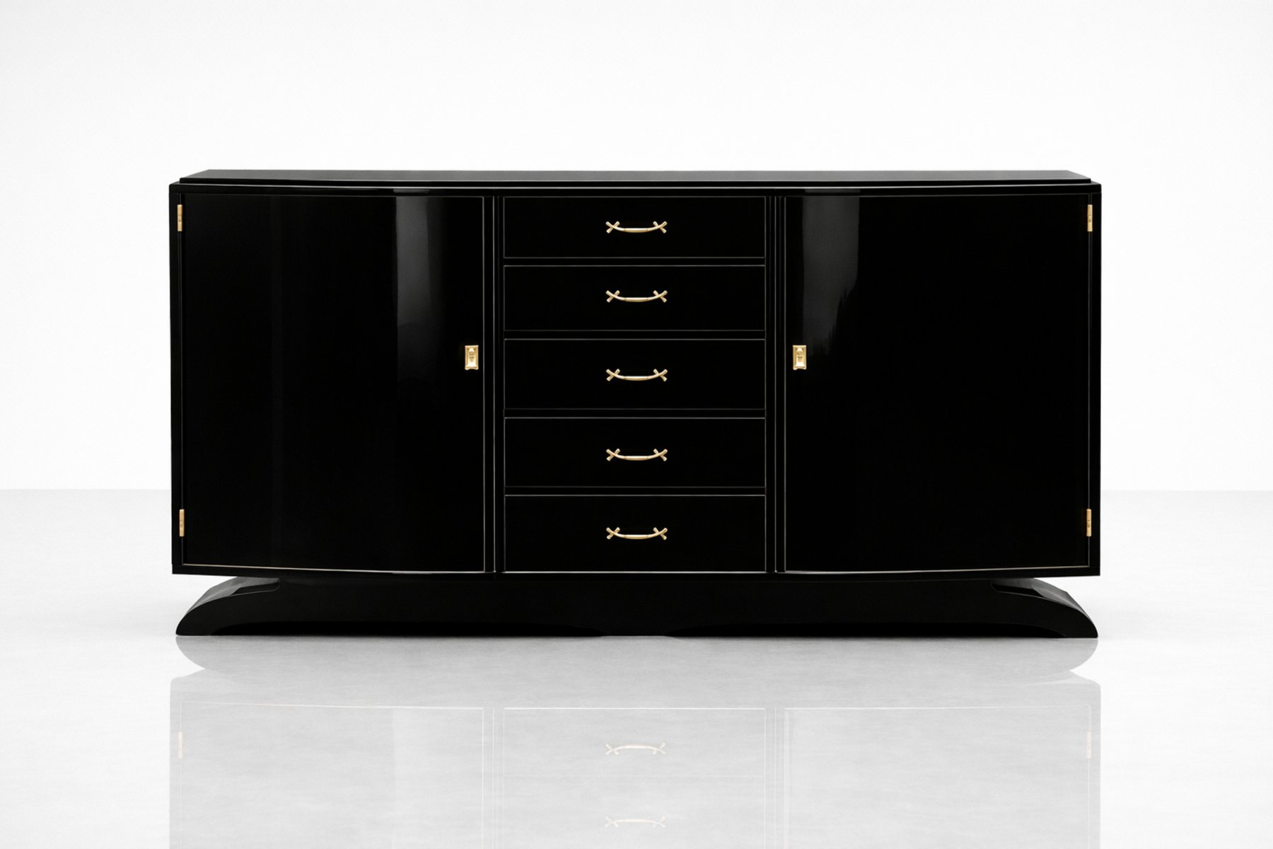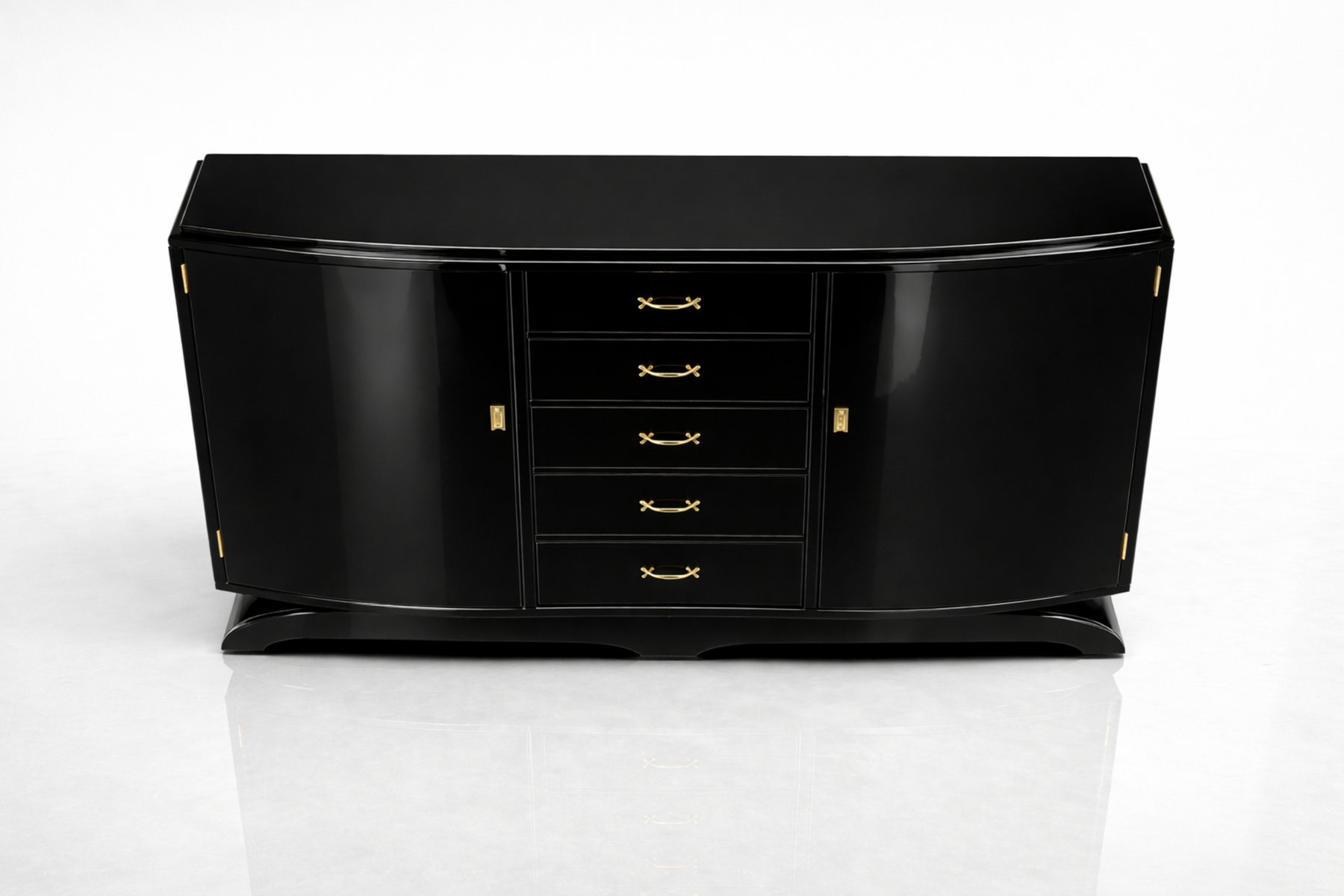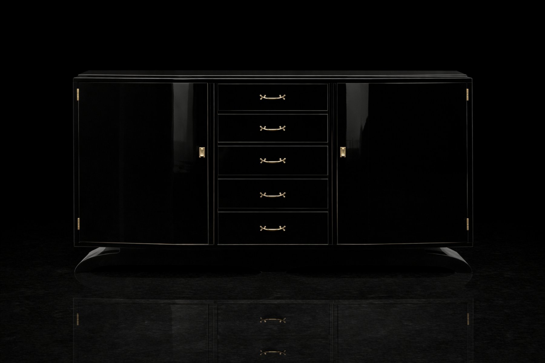 Art Deco Black Lacquered Copper-Plated Credenza, 1940s