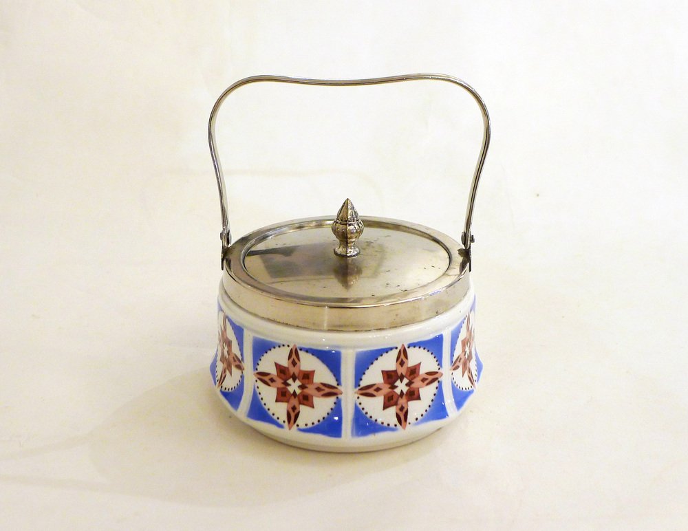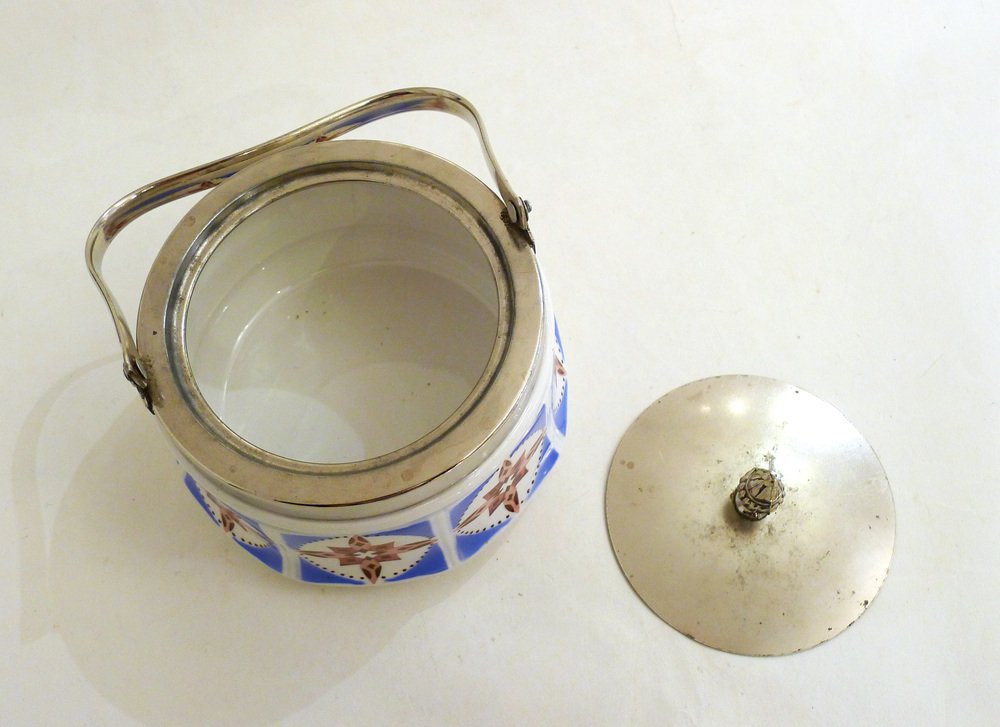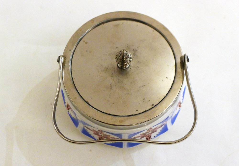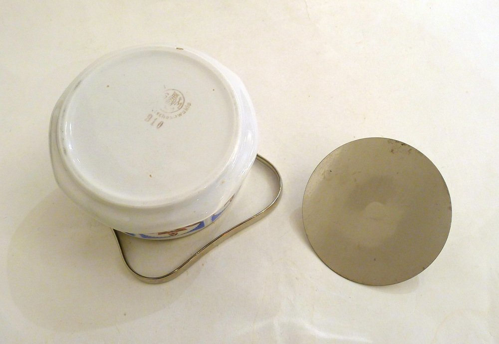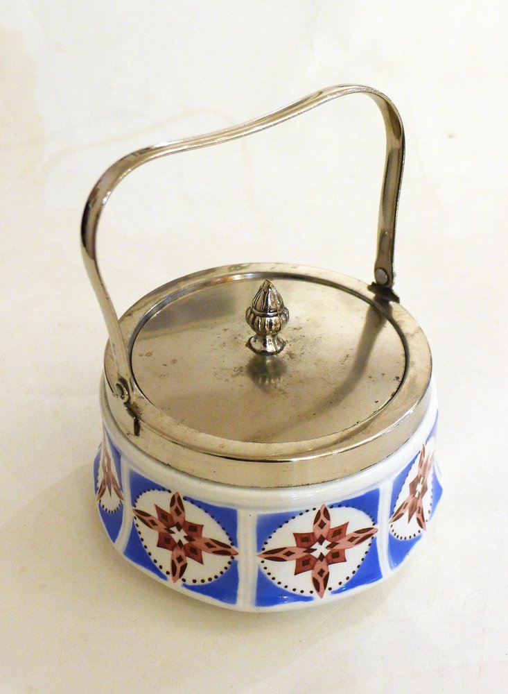Art Deco Candy / Sugar Bowl in Earthenware and Metal from Gebrüder Mehner, Former Czechoslovakia, 1920s