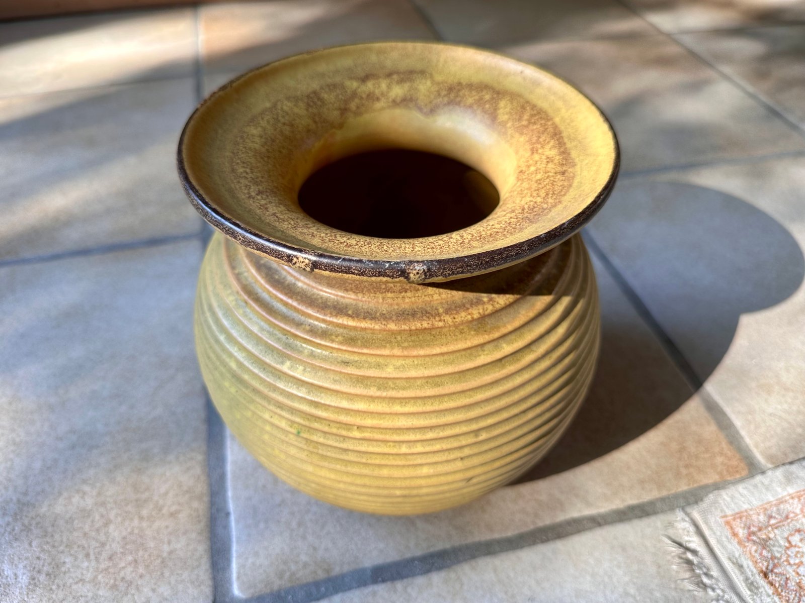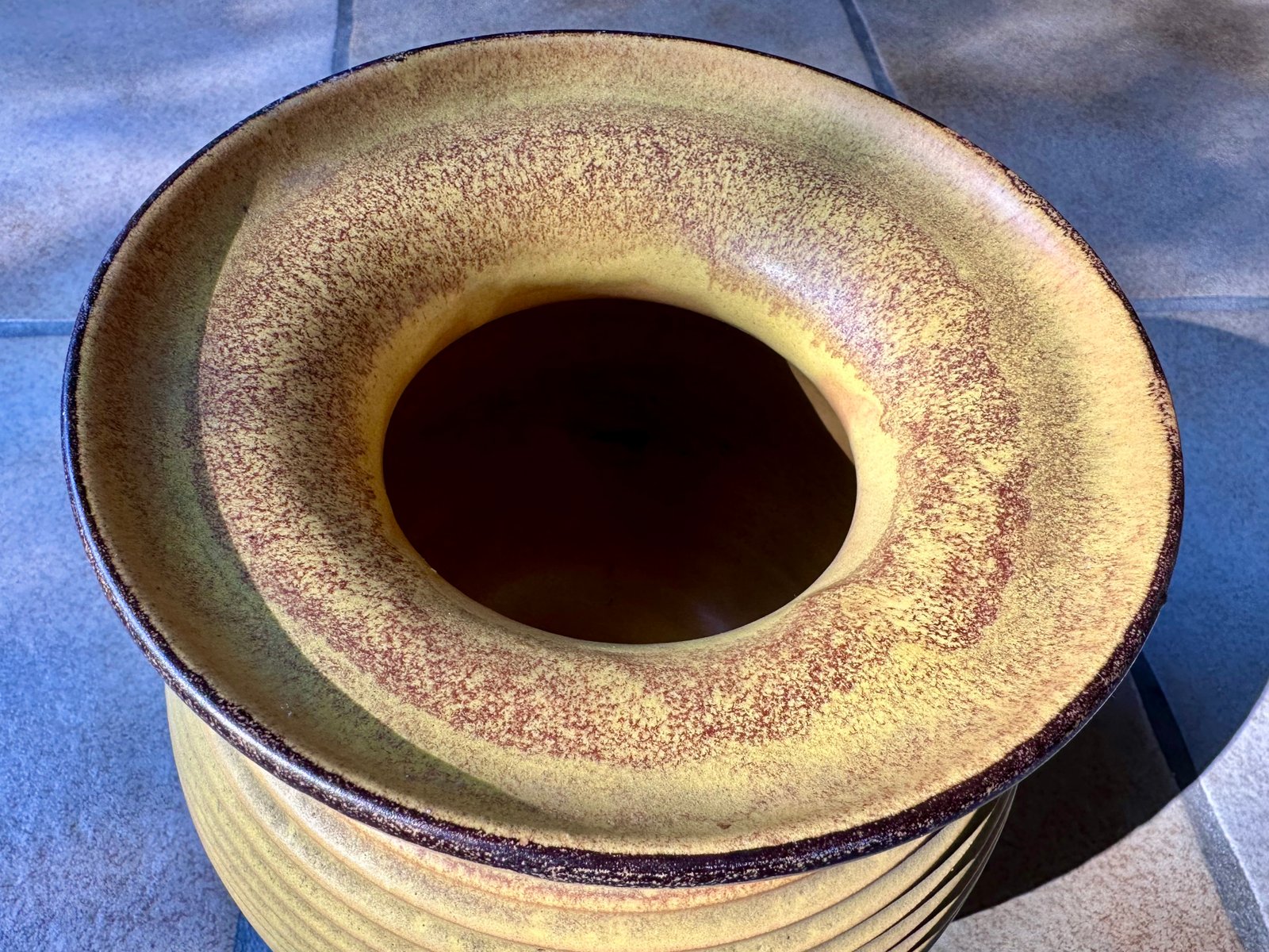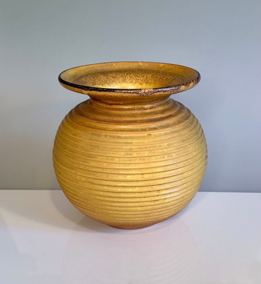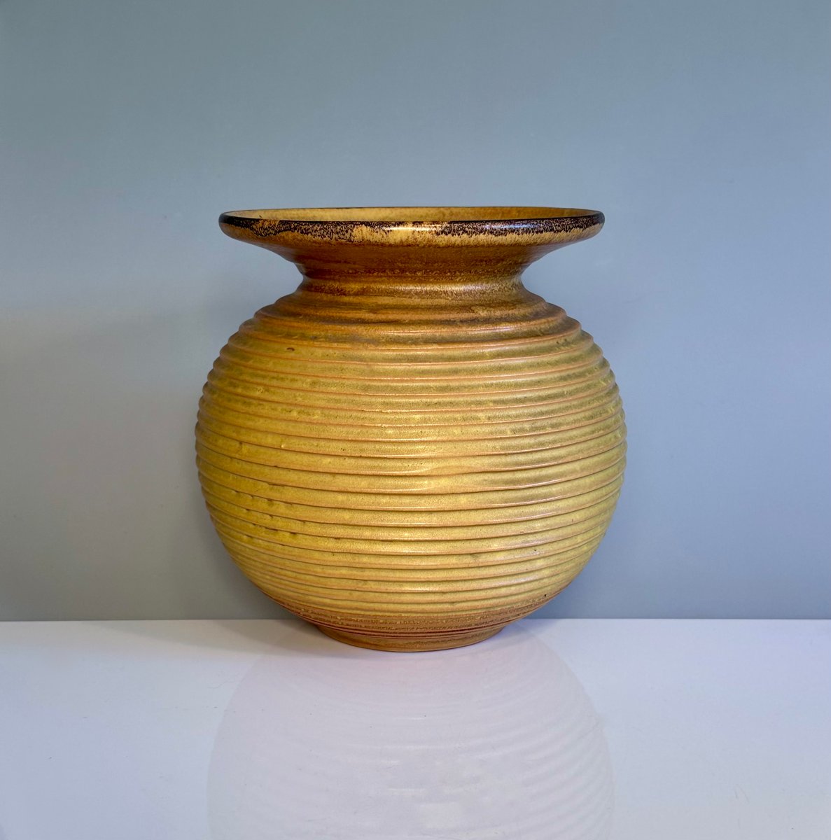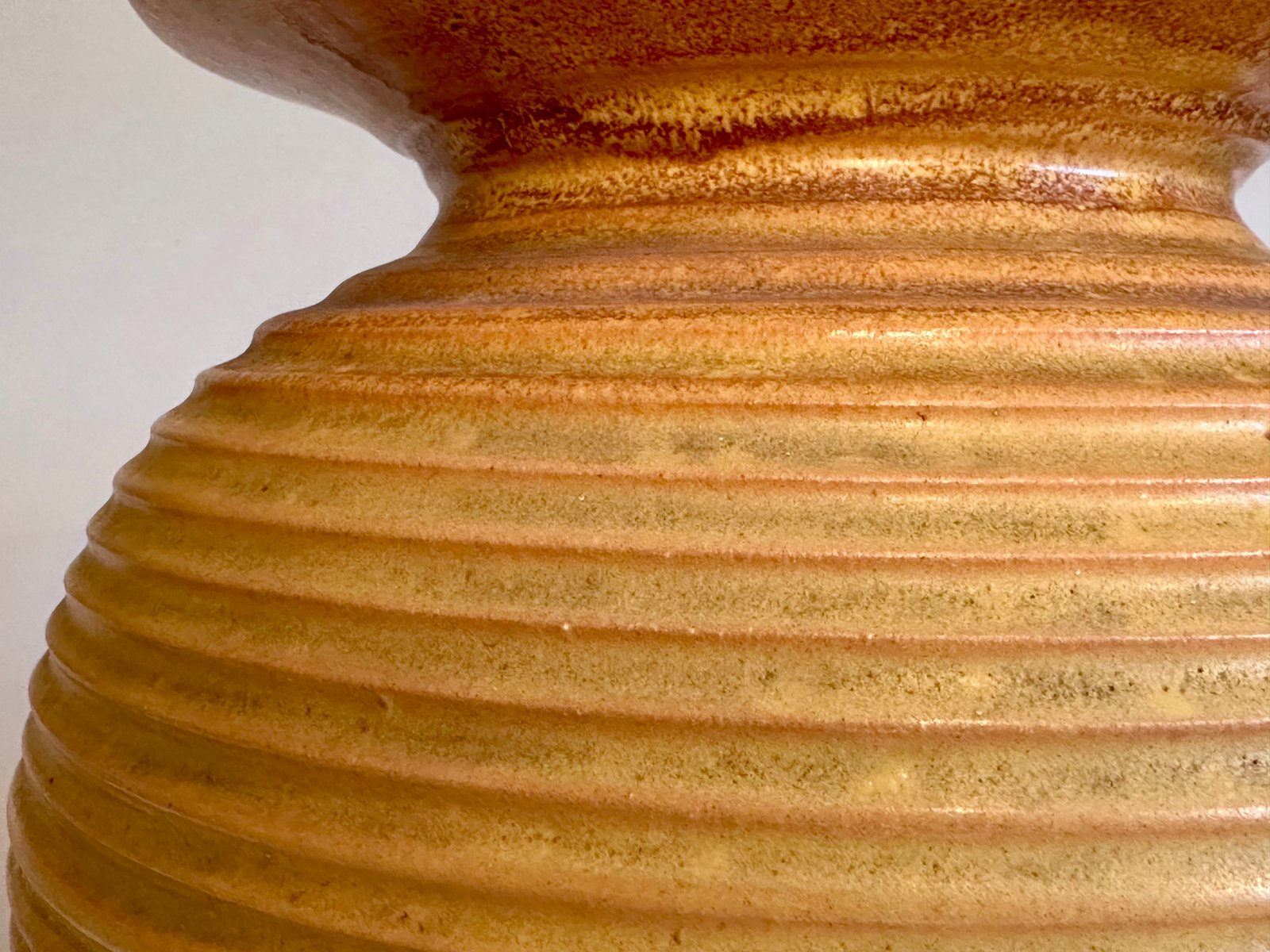 Art Deco Ceramic Vase attributed to Carstens Uffrecht with Ribbed Decor in Ochre Yellow, Germany 1930s