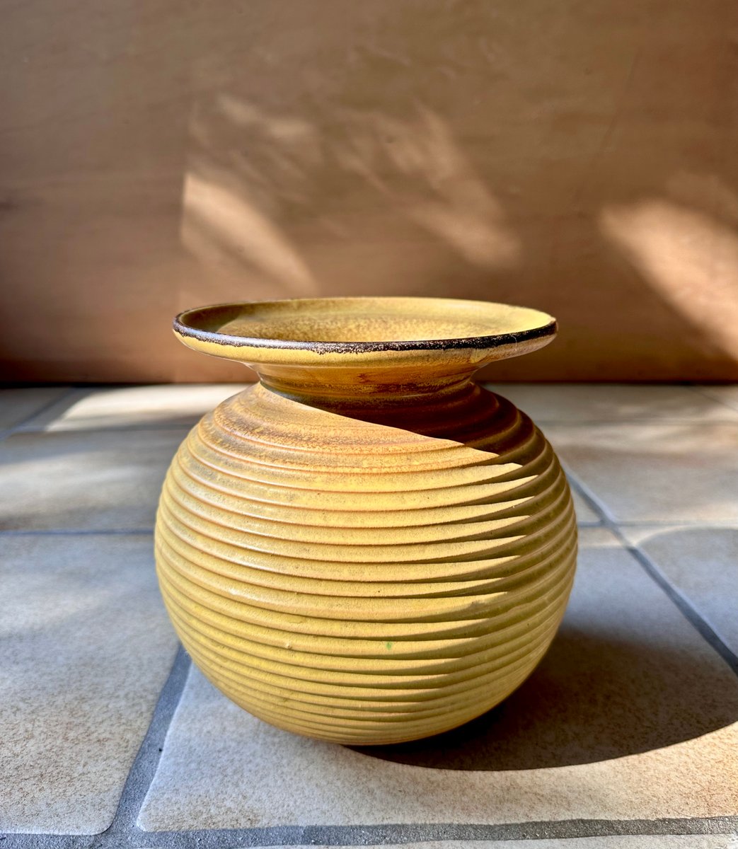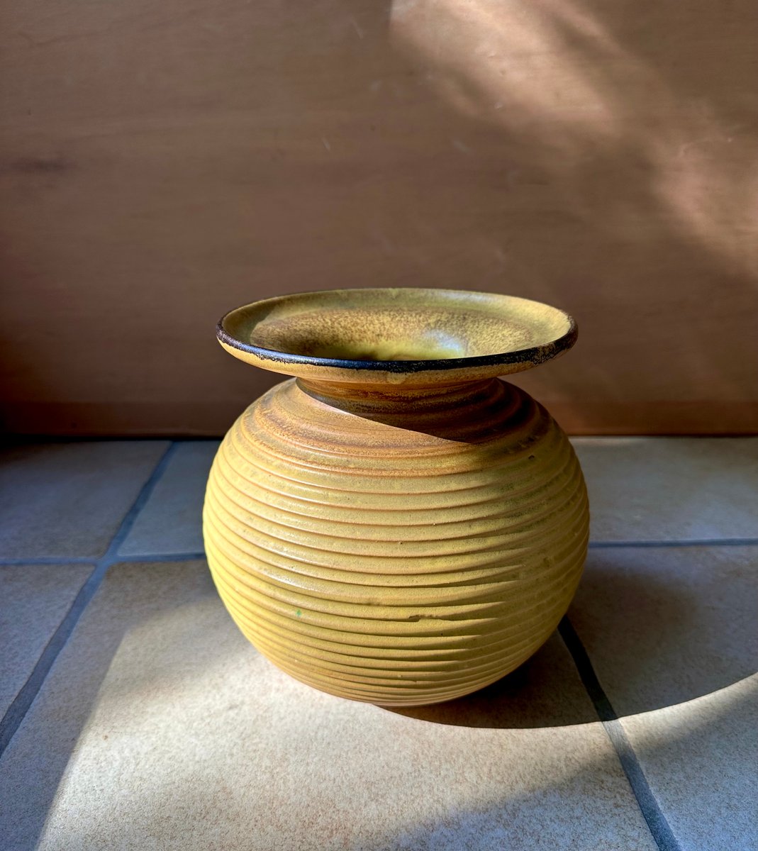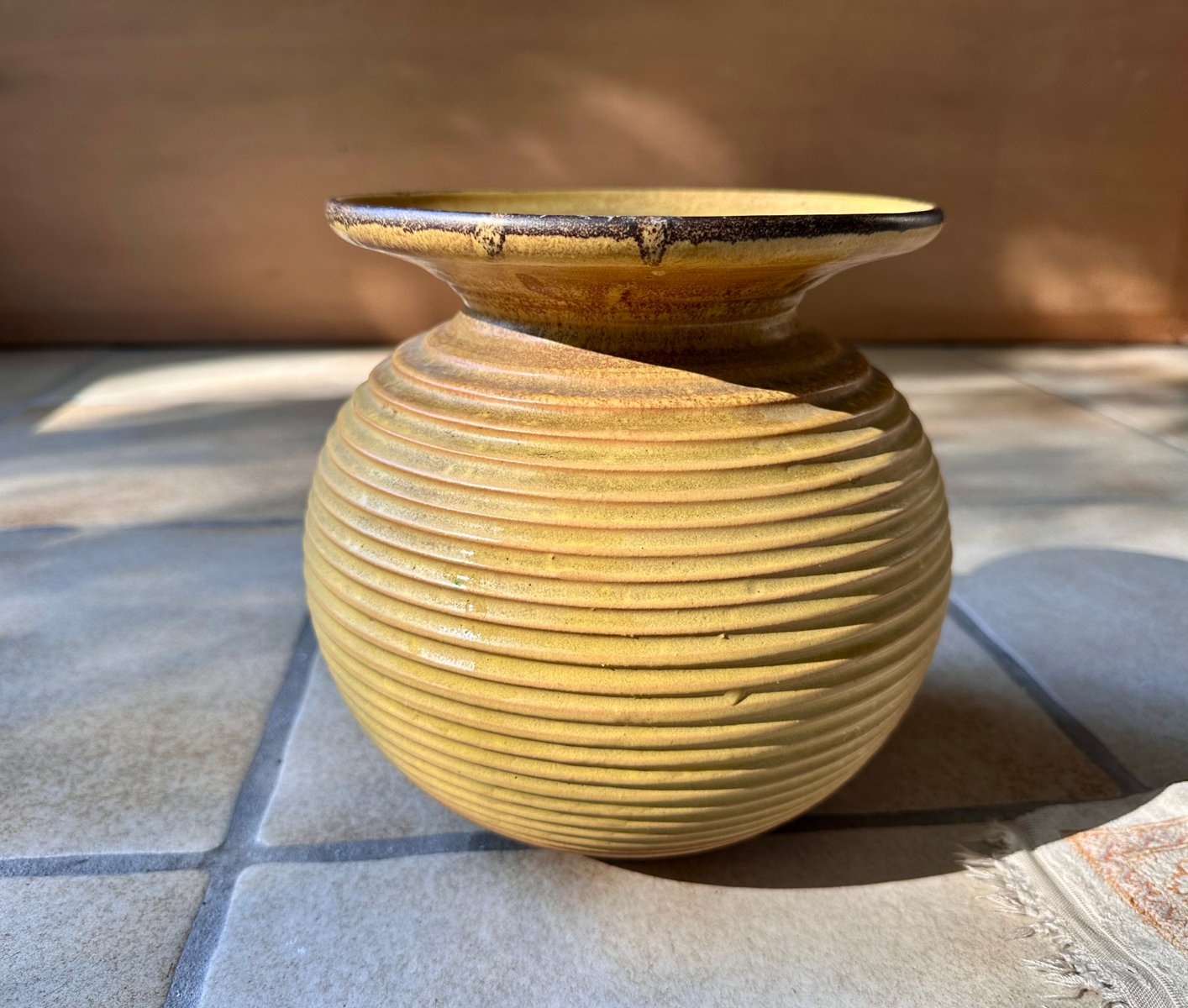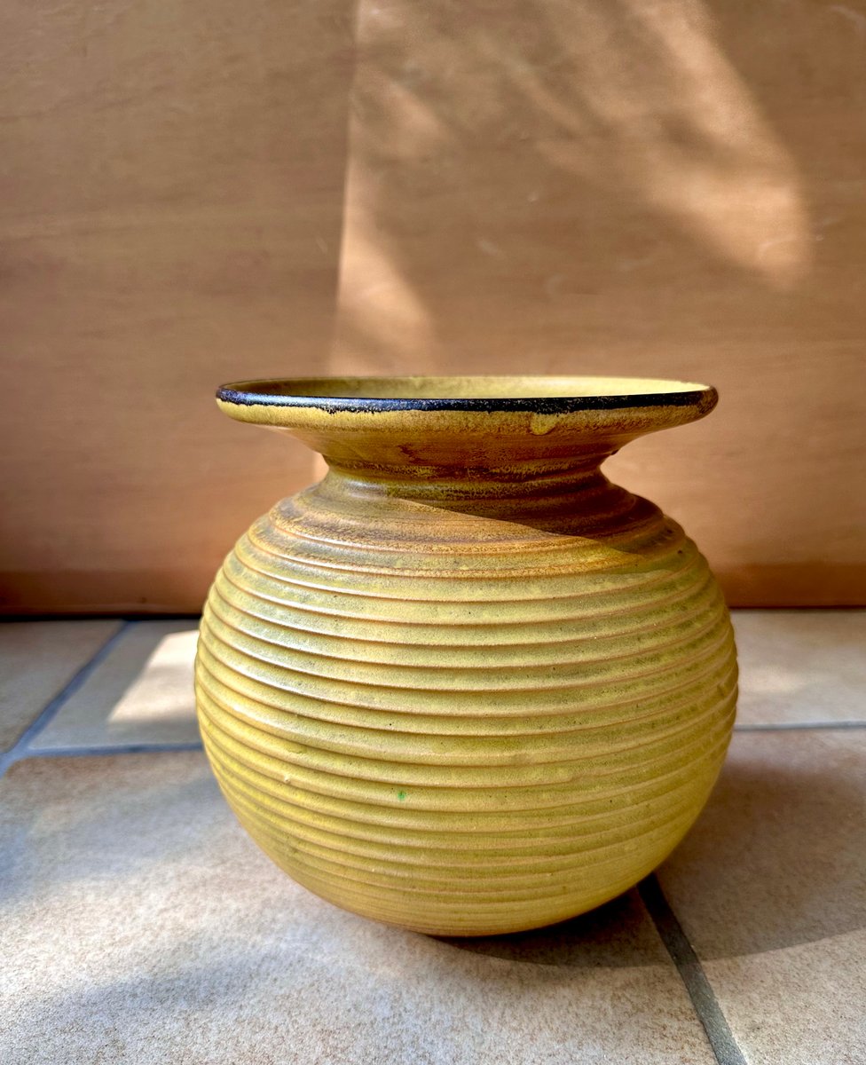 Art Deco Ceramic Vase attributed to Carstens Uffrecht with Ribbed Decor in Ochre Yellow, Germany 1930s