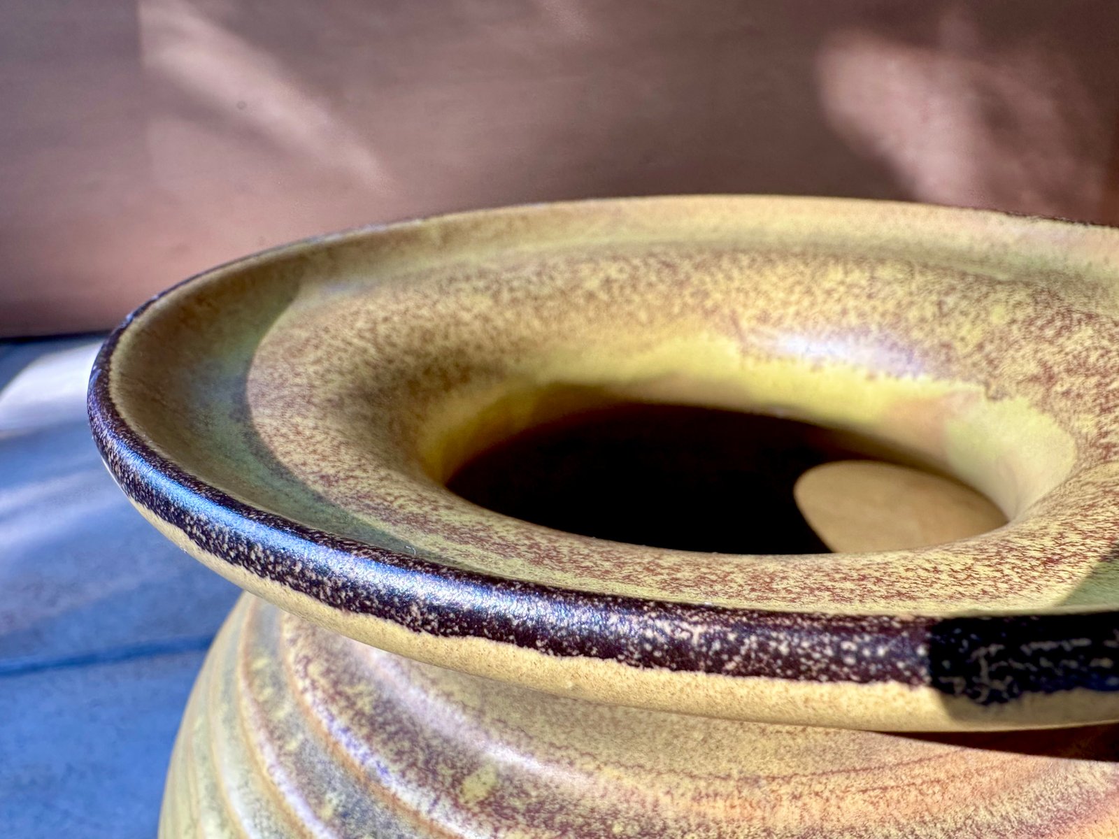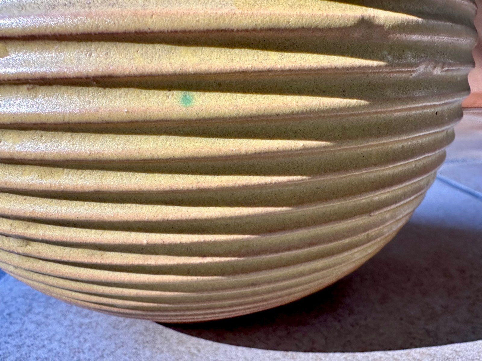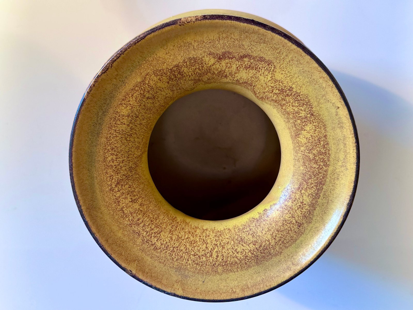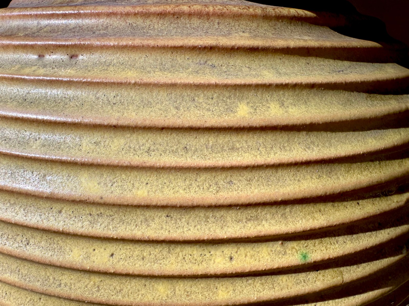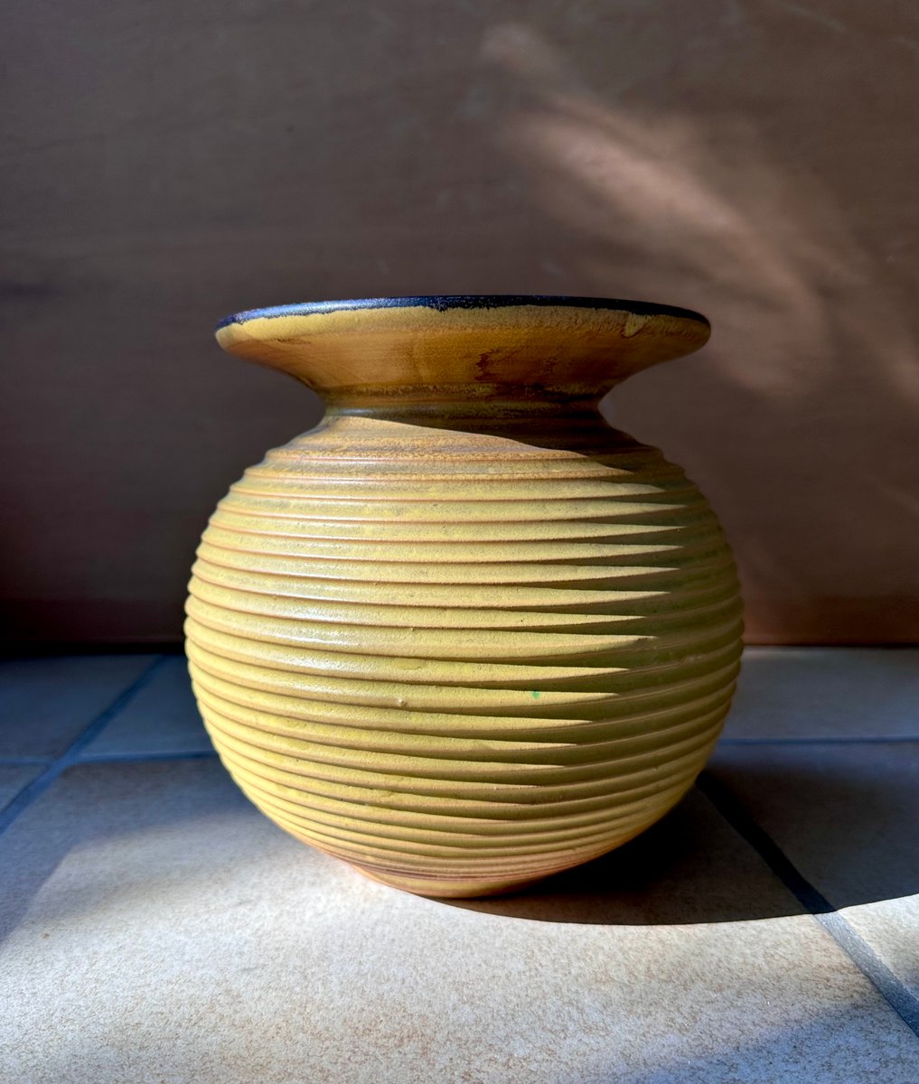 Art Deco Ceramic Vase attributed to Carstens Uffrecht with Ribbed Decor in Ochre Yellow, Germany 1930s