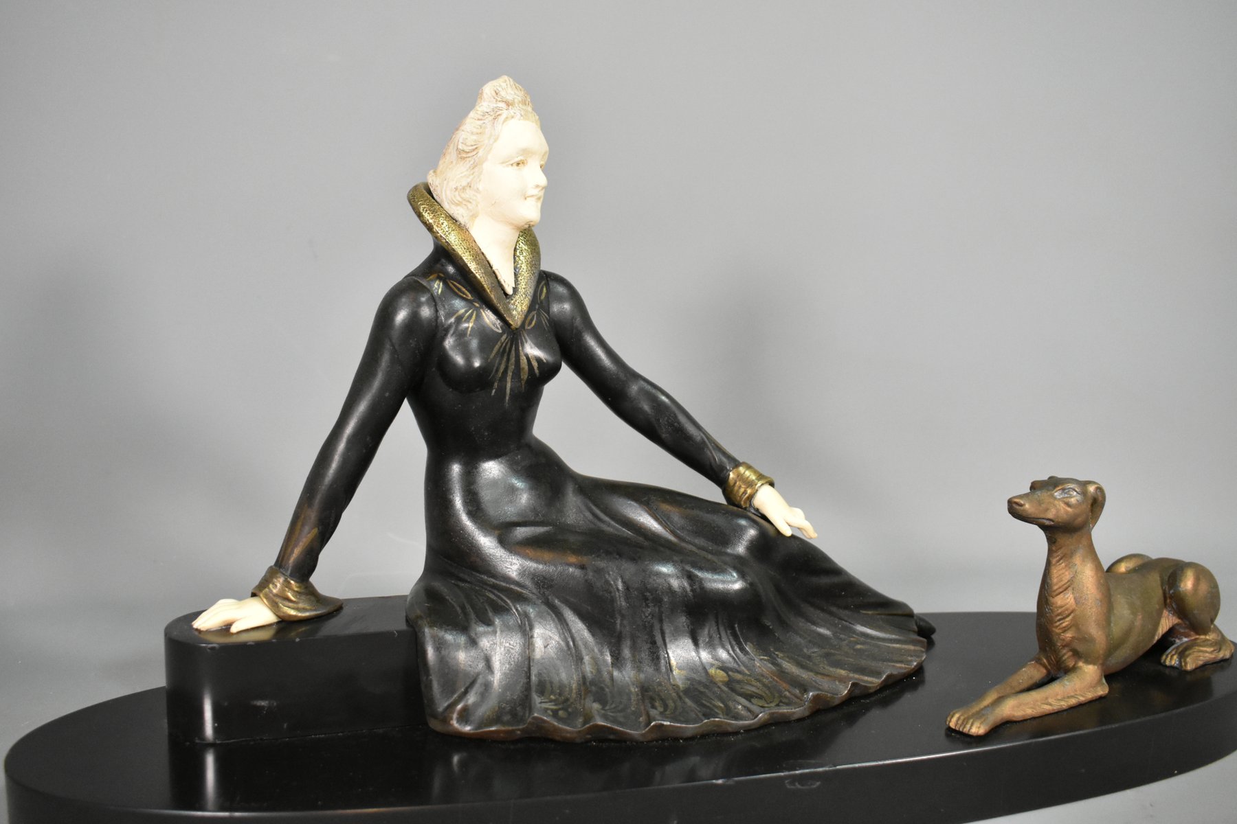 Art Deco French Metal & Marble Sculpture by Salvatore Melani, 1920s