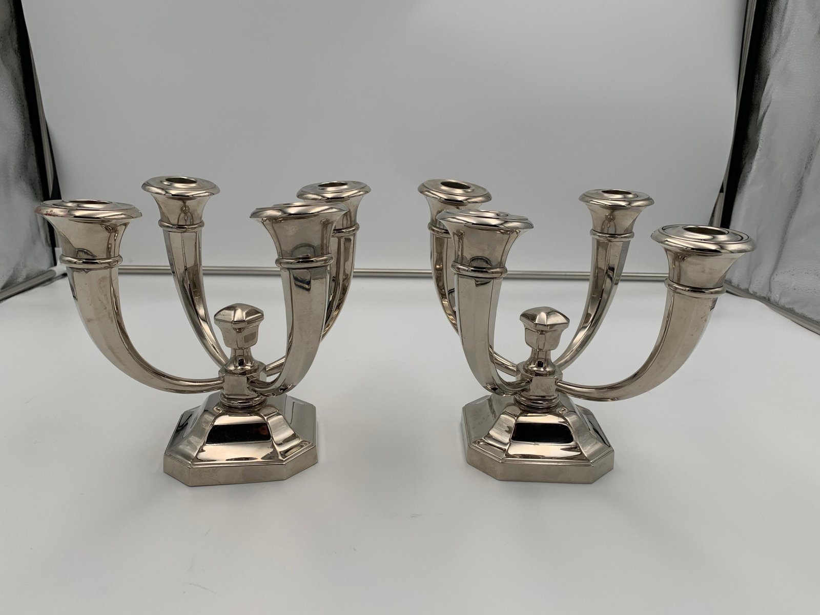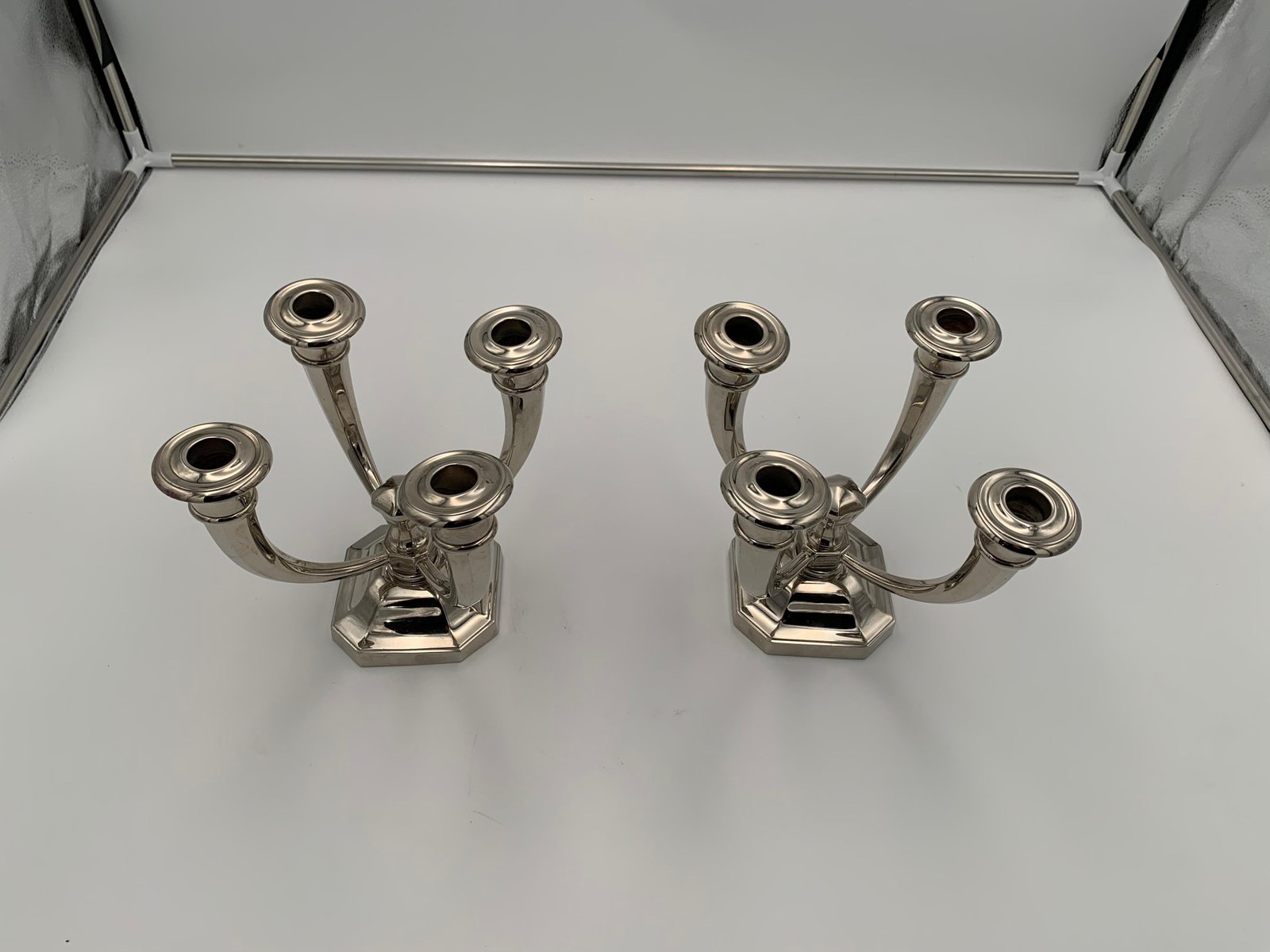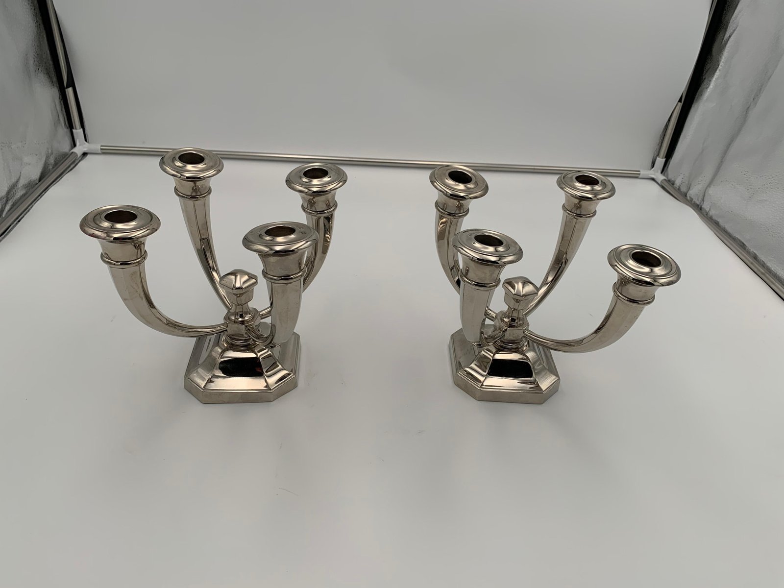 Art Deco French Nickeled Bronze Candlesticks by J. Leleu, 1930, Set of 2