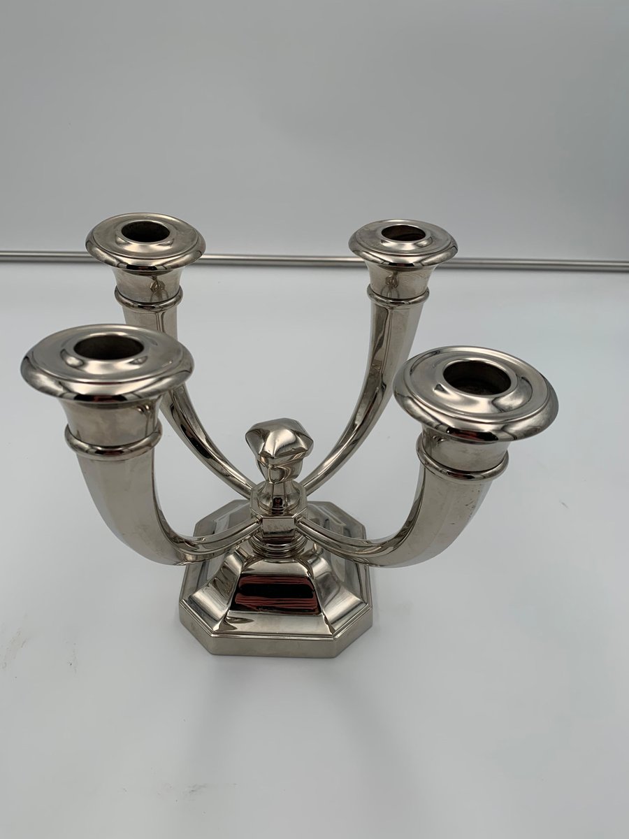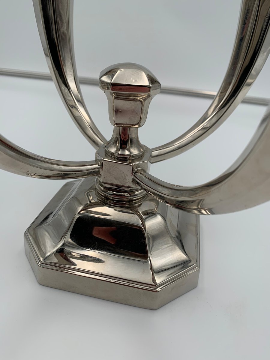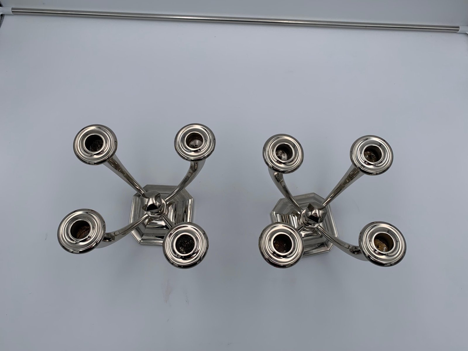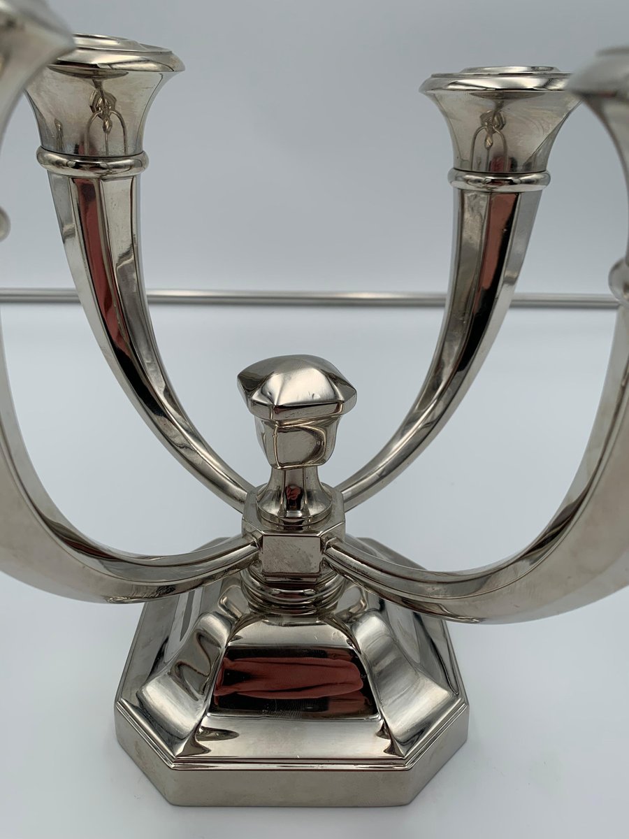 Art Deco French Nickeled Bronze Candlesticks by J. Leleu, 1930, Set of 2