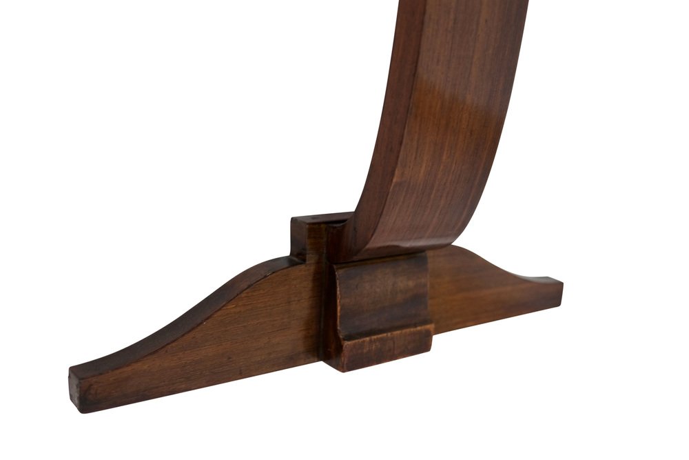 Art Deco French Wood and with Marble Top Demi Lune Console Table, 1930s