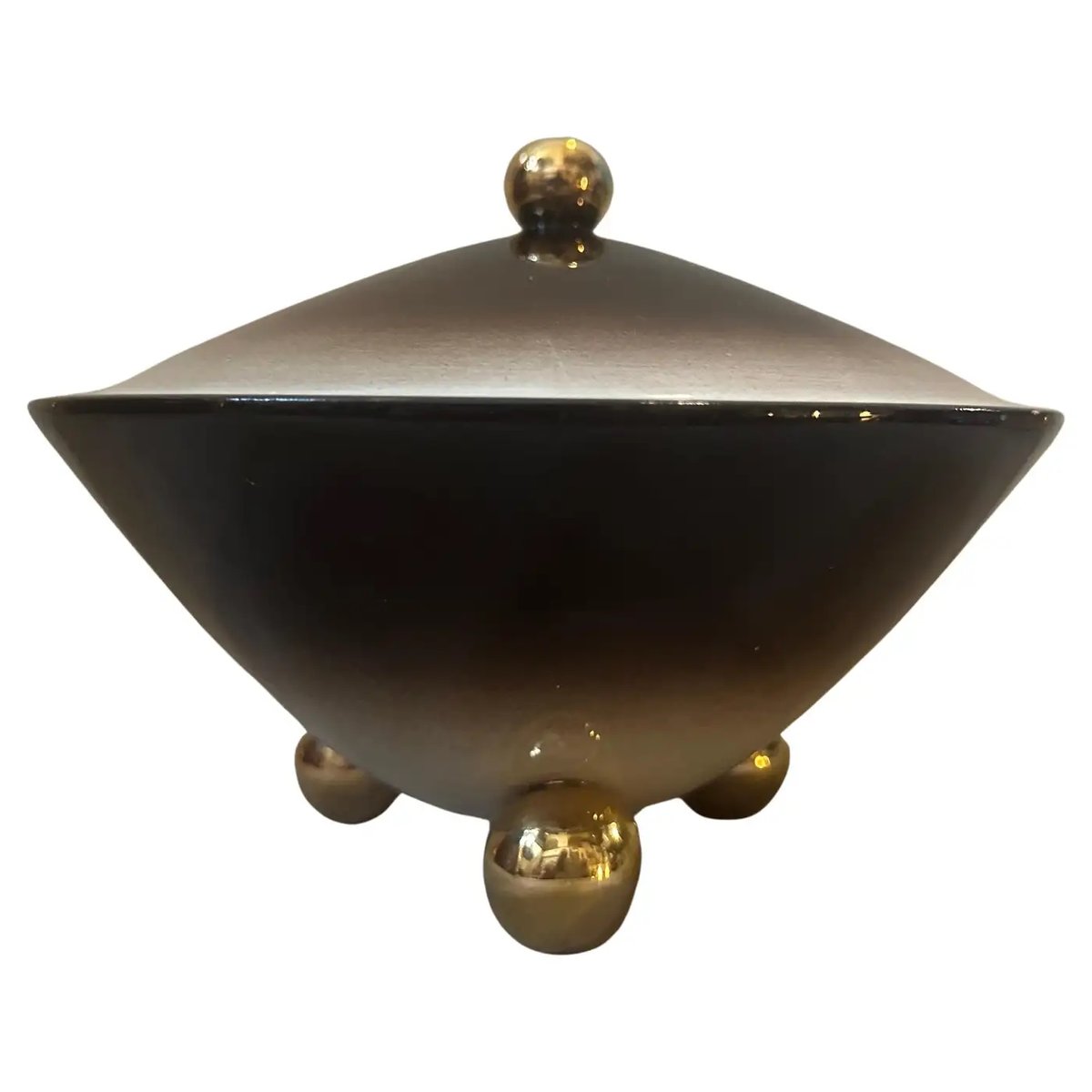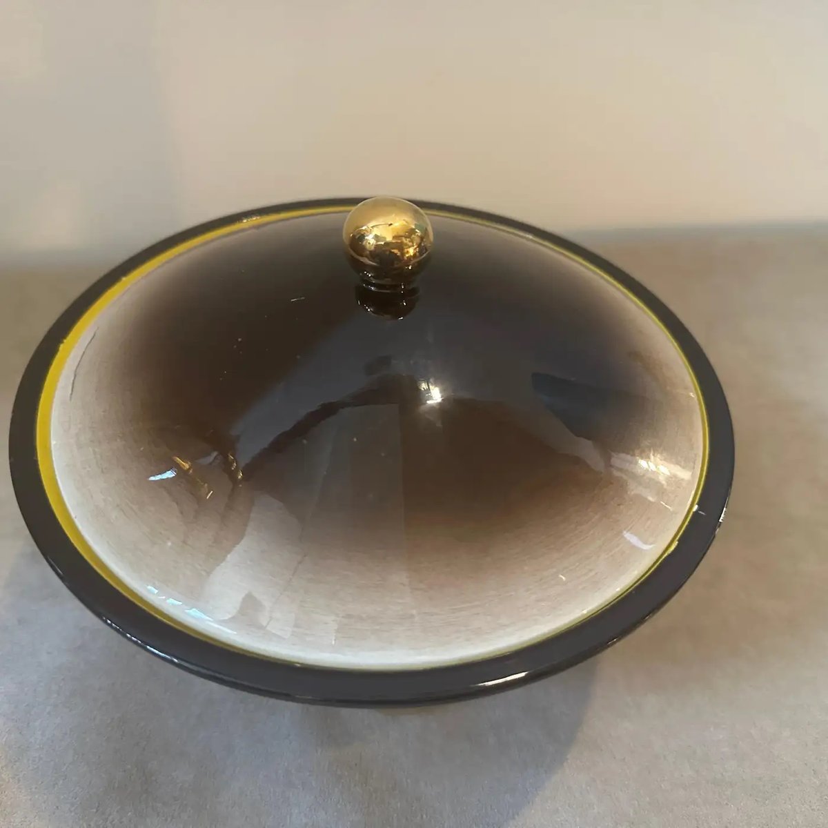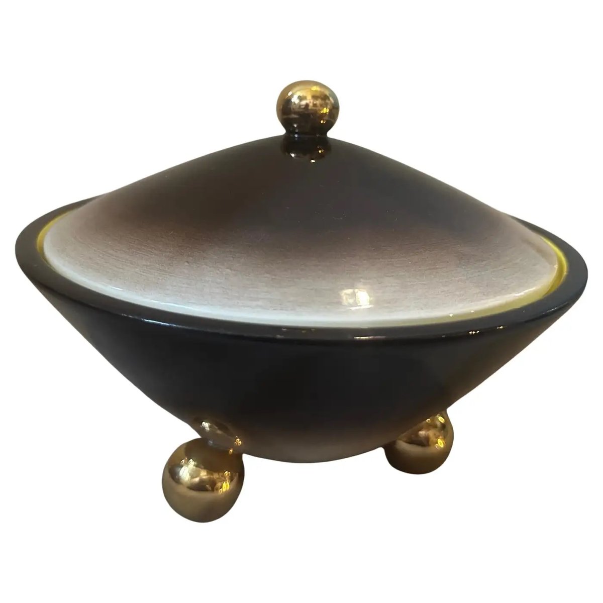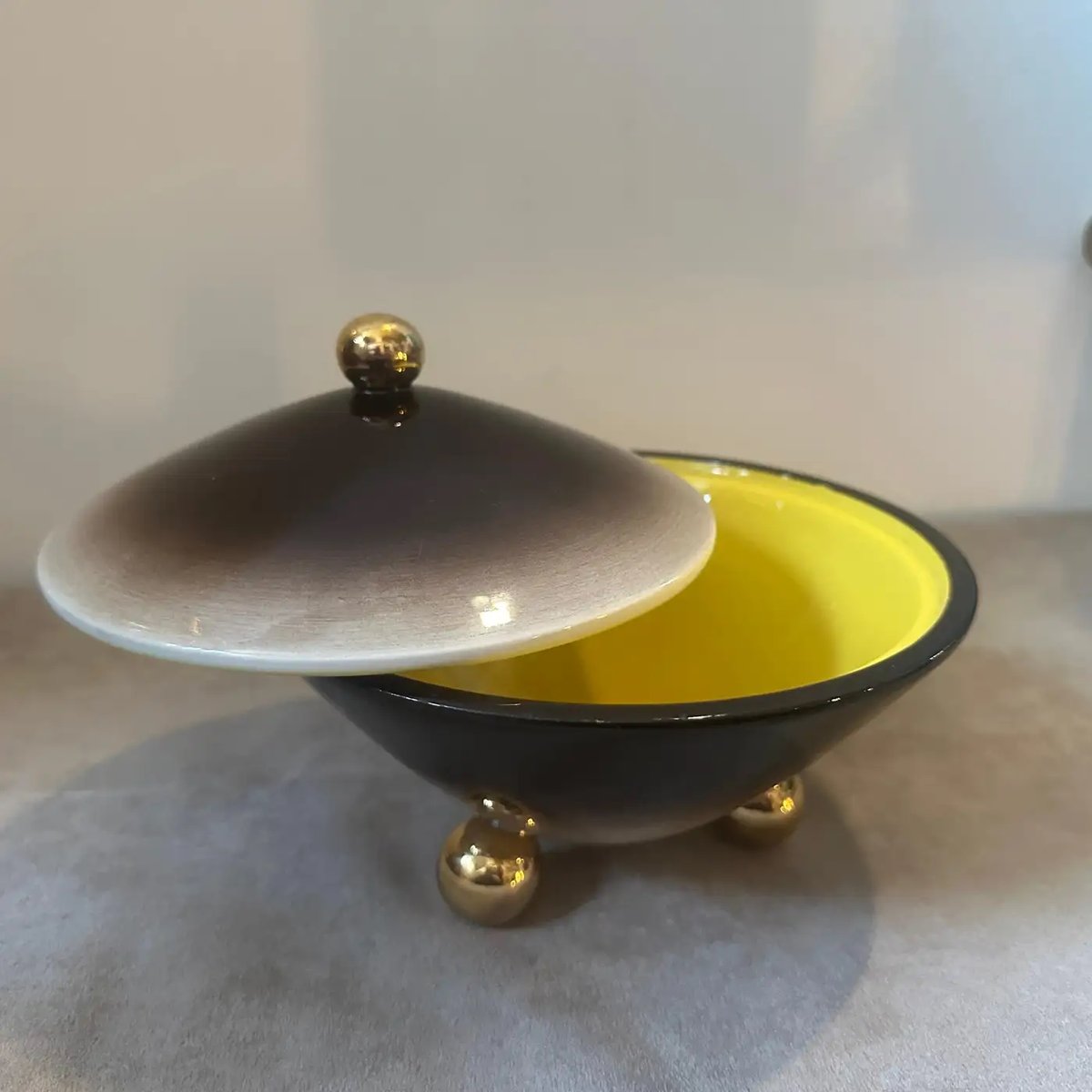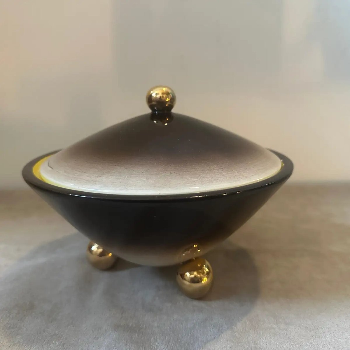 Art Deco Gold, Brown and Yellow Ceramic Box by Galvani, 1930s