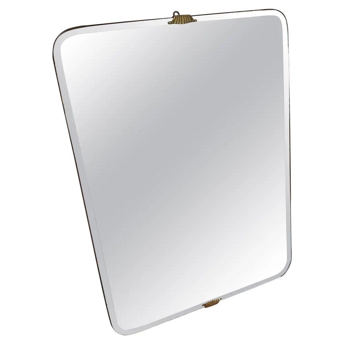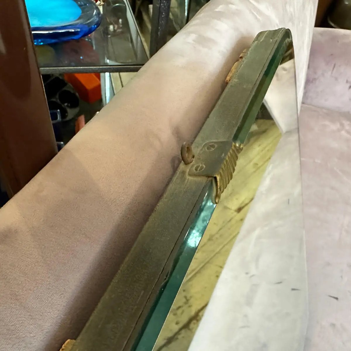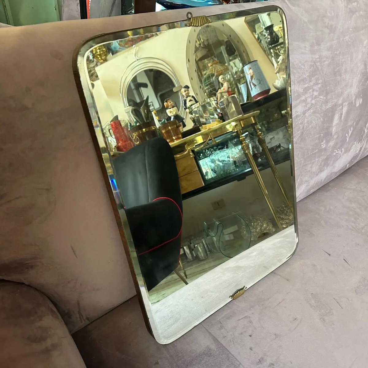 Art Deco Italian Brass and Glass Wall Mirror in the style of Gio Ponti, 1940s