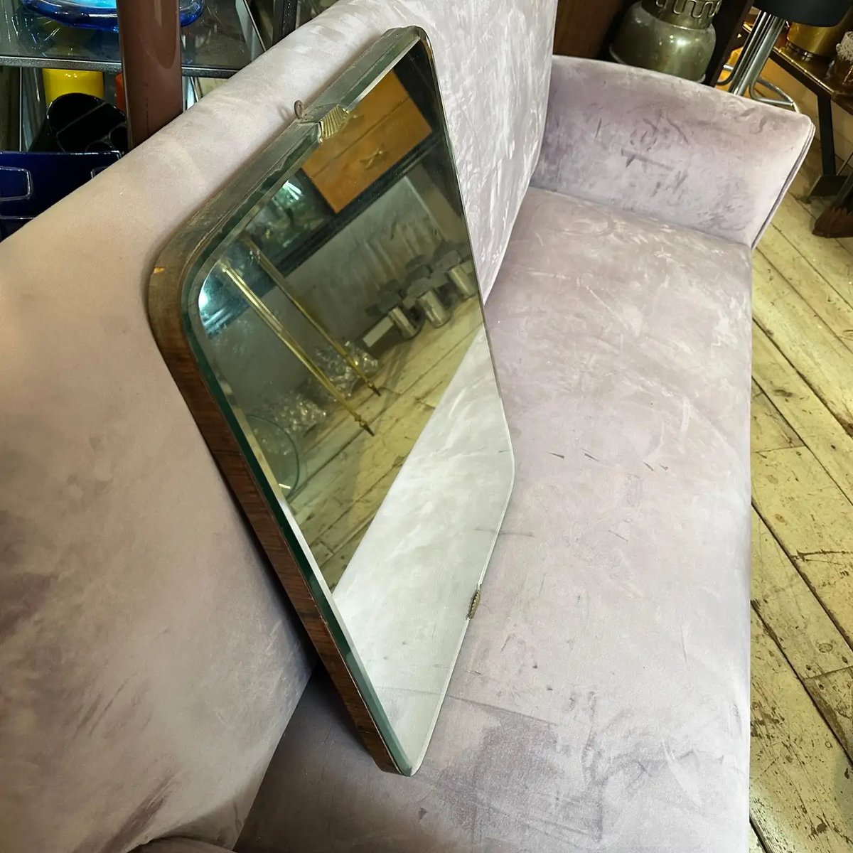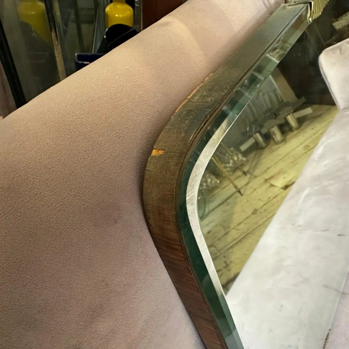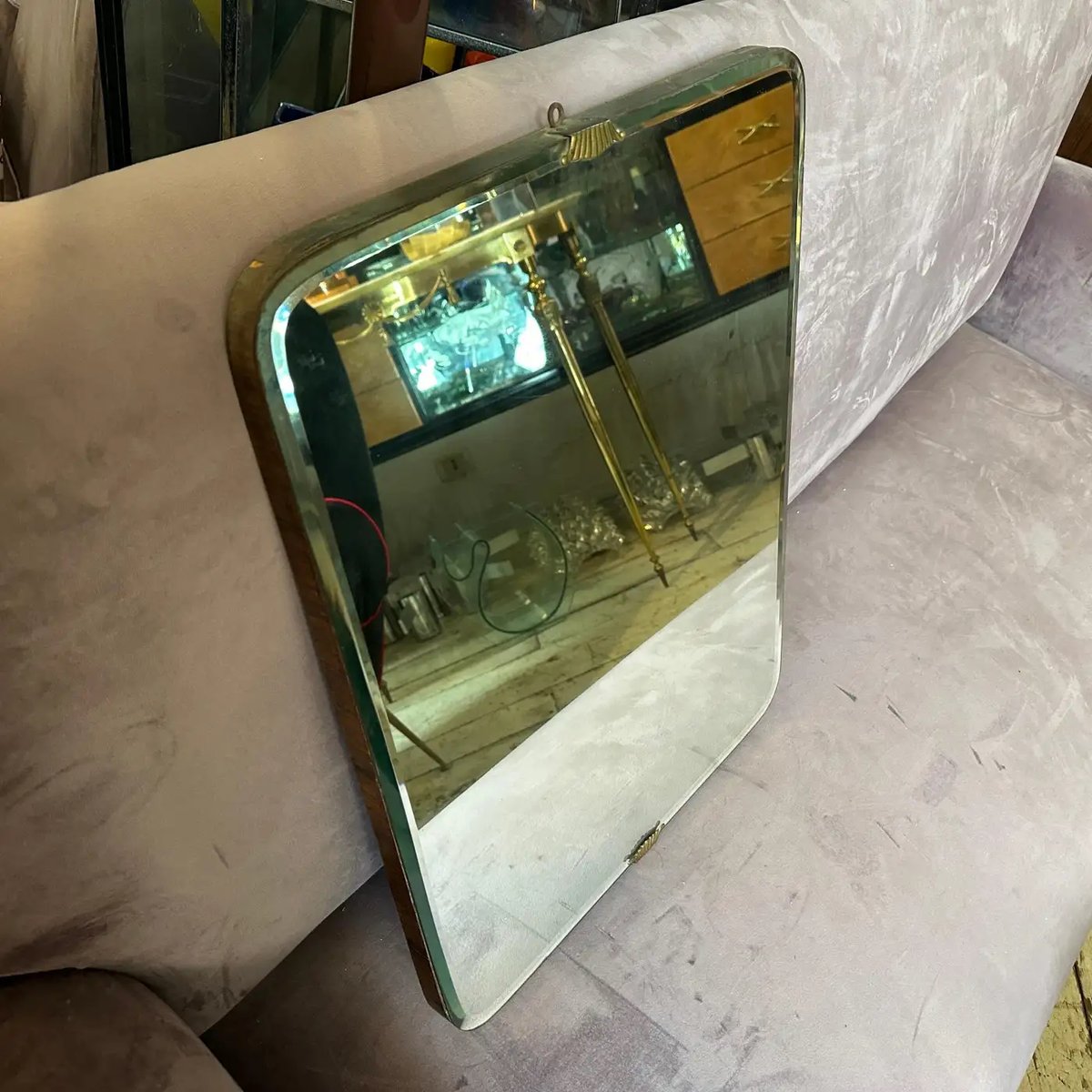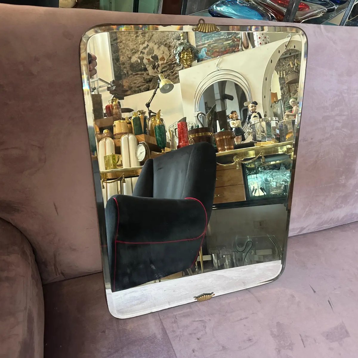 Art Deco Italian Brass and Glass Wall Mirror in the style of Gio Ponti, 1940s