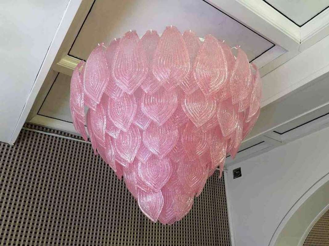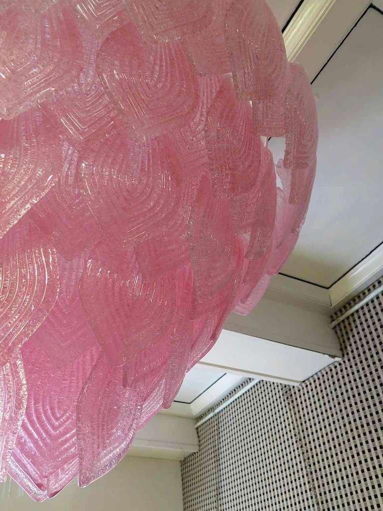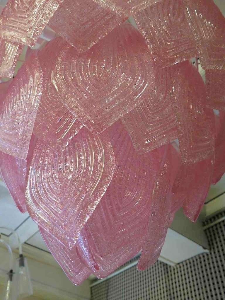 Art Deco Italian Round Pink Murano Glass Chandeliers, 1960
