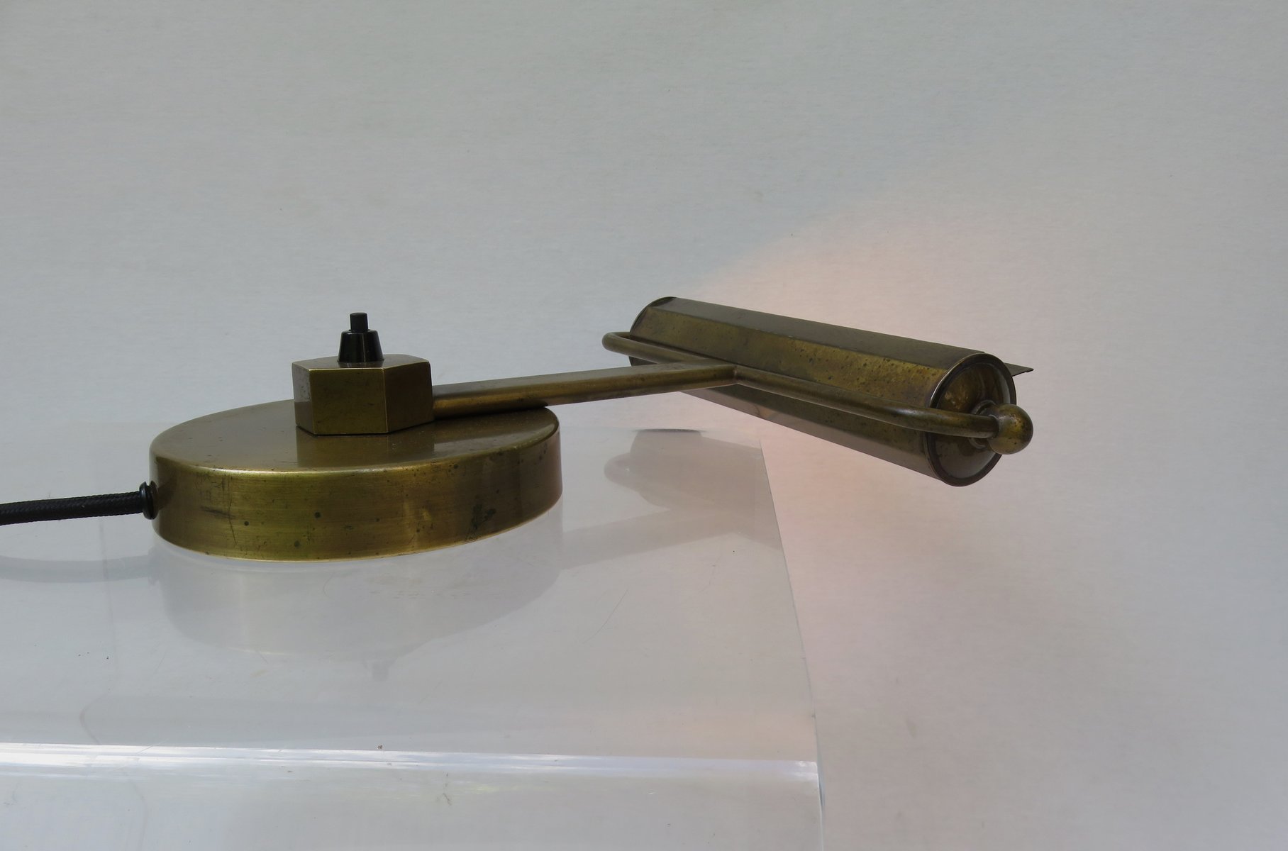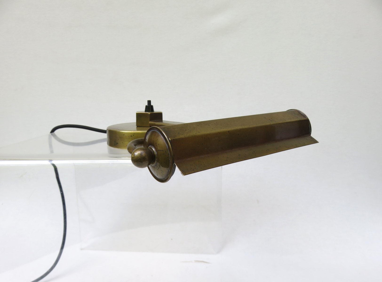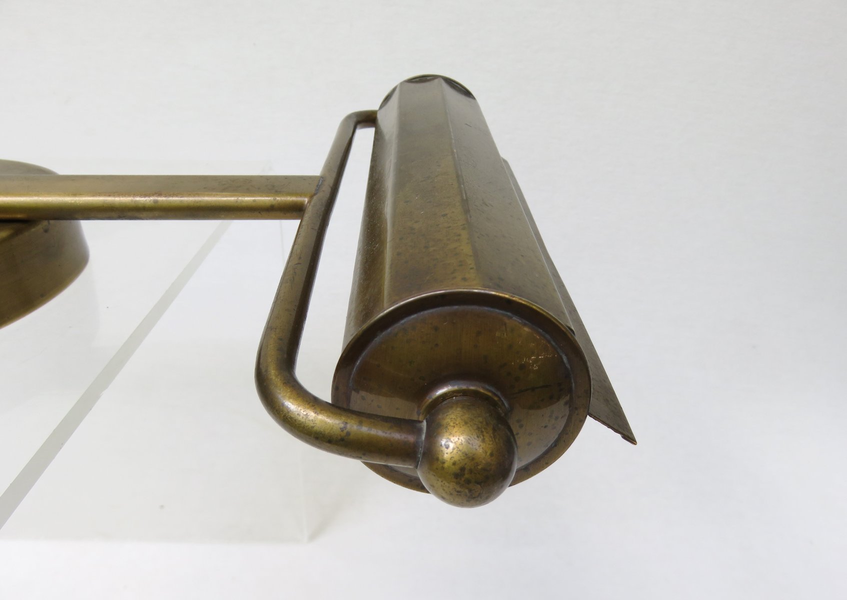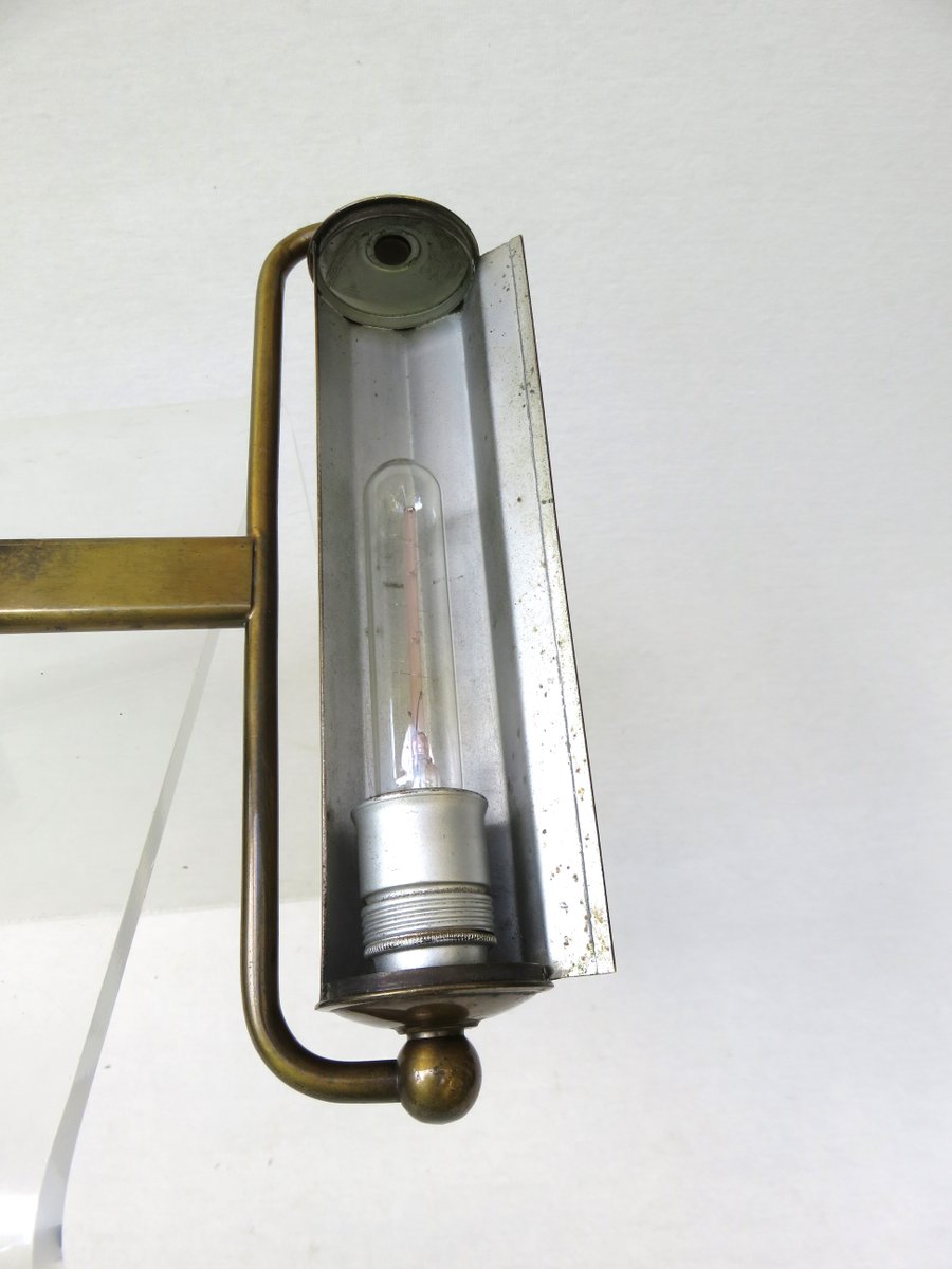 Art Deco Minimalist Piano Lamp in Patinated Brass, 1920s
