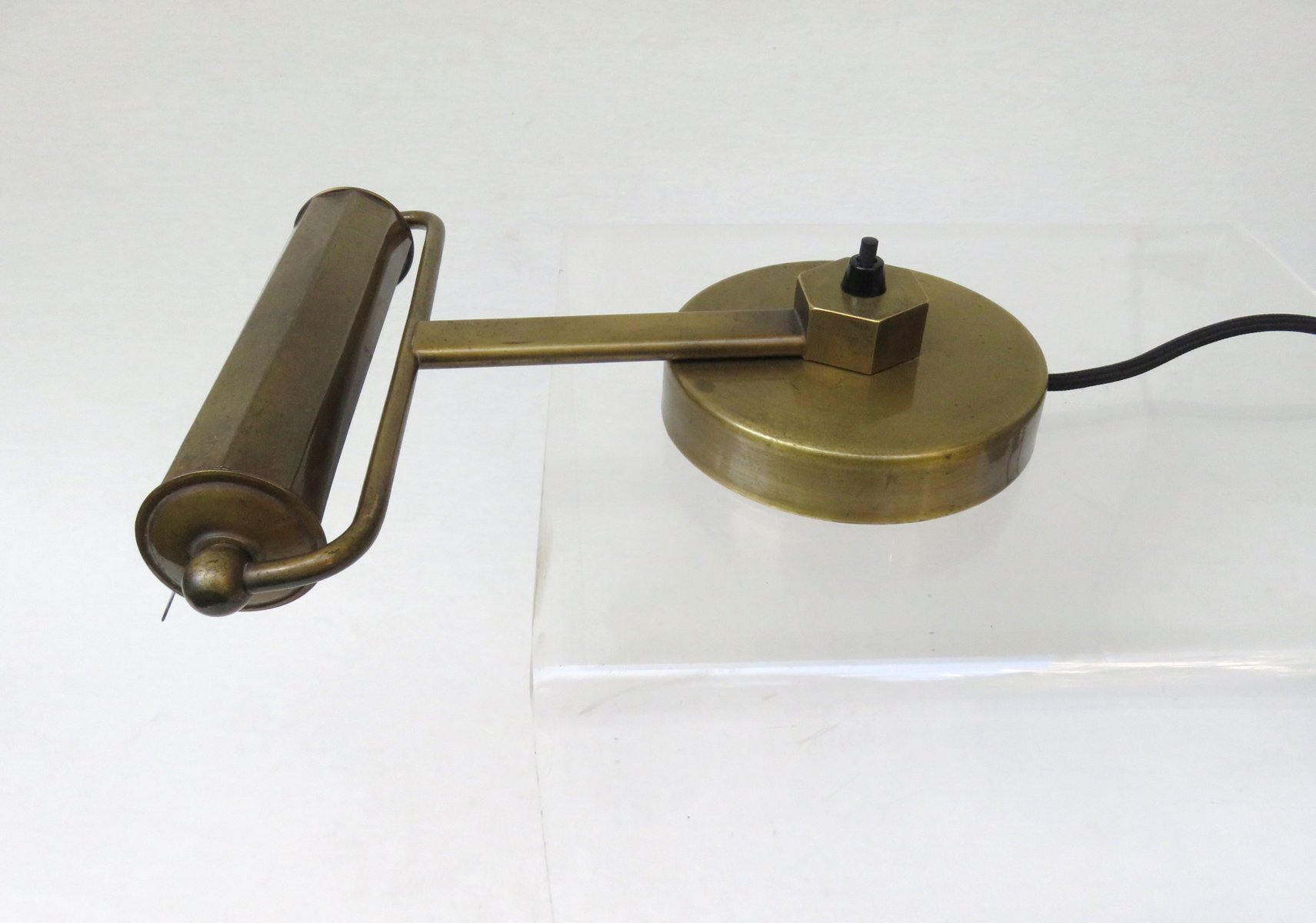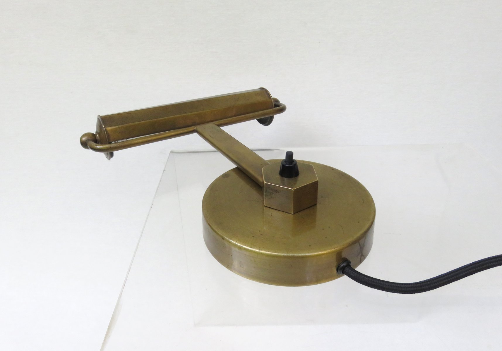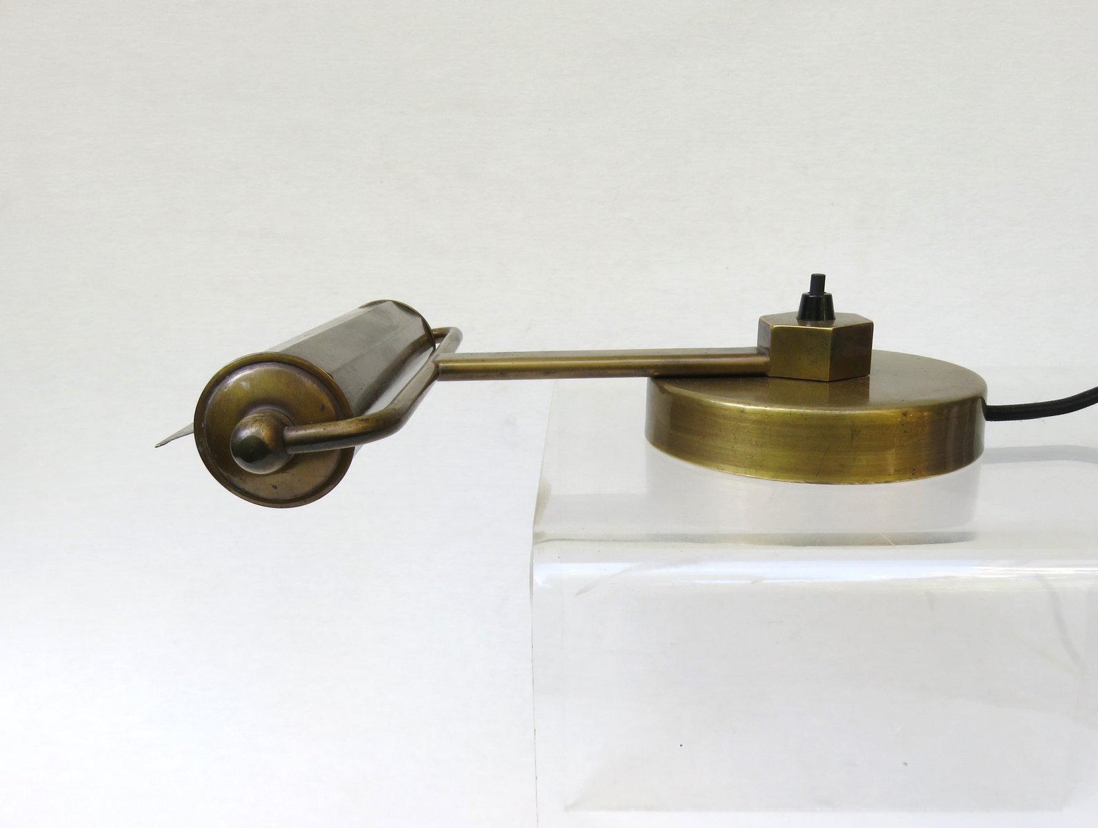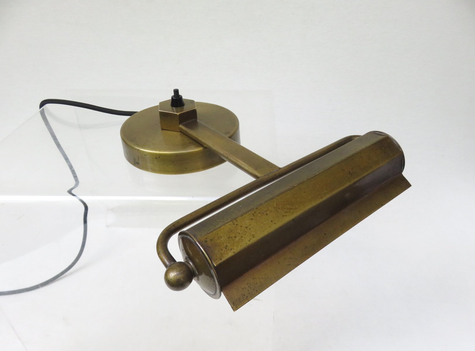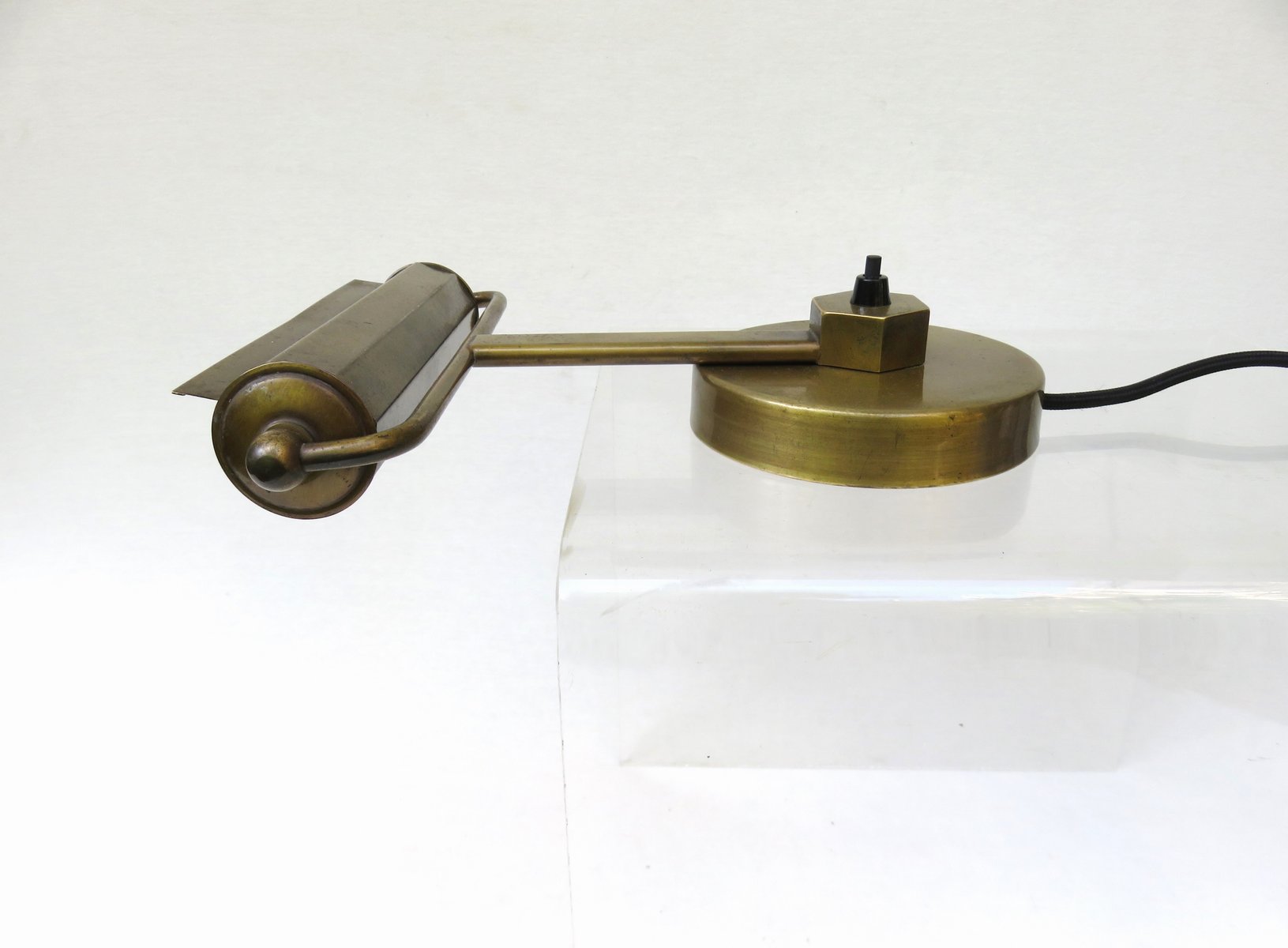 Art Deco Minimalist Piano Lamp in Patinated Brass, 1920s