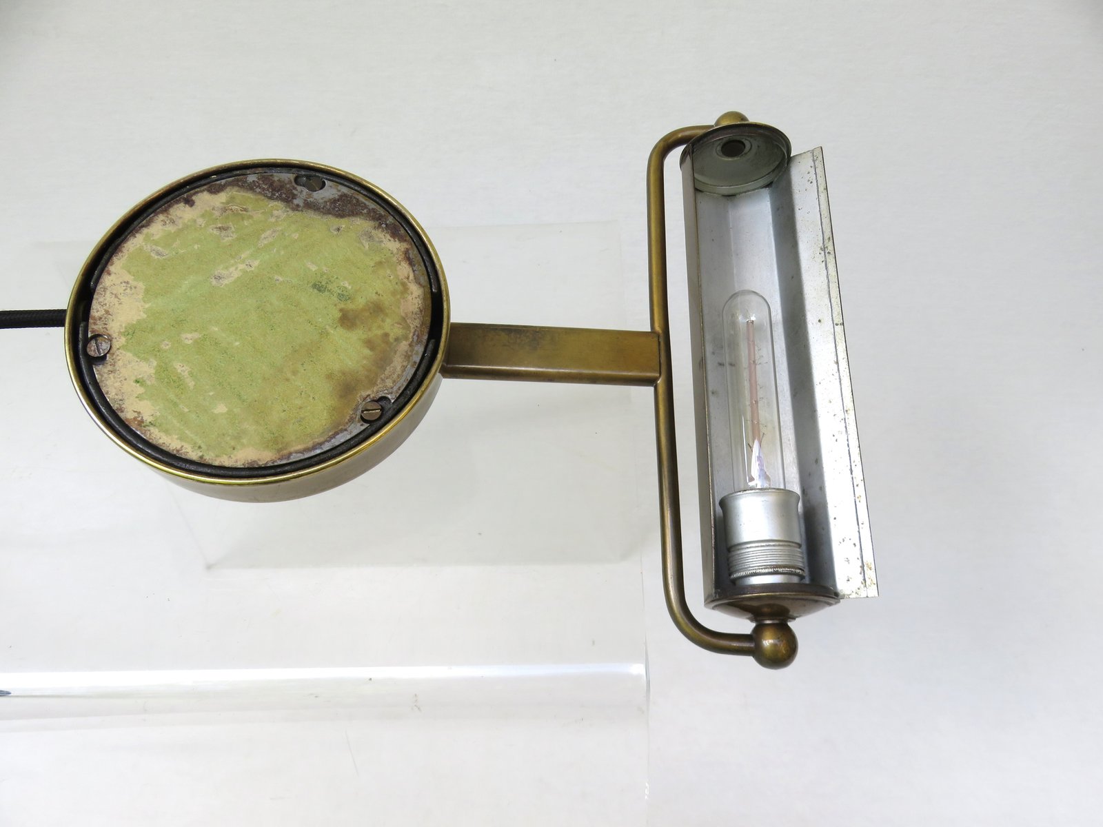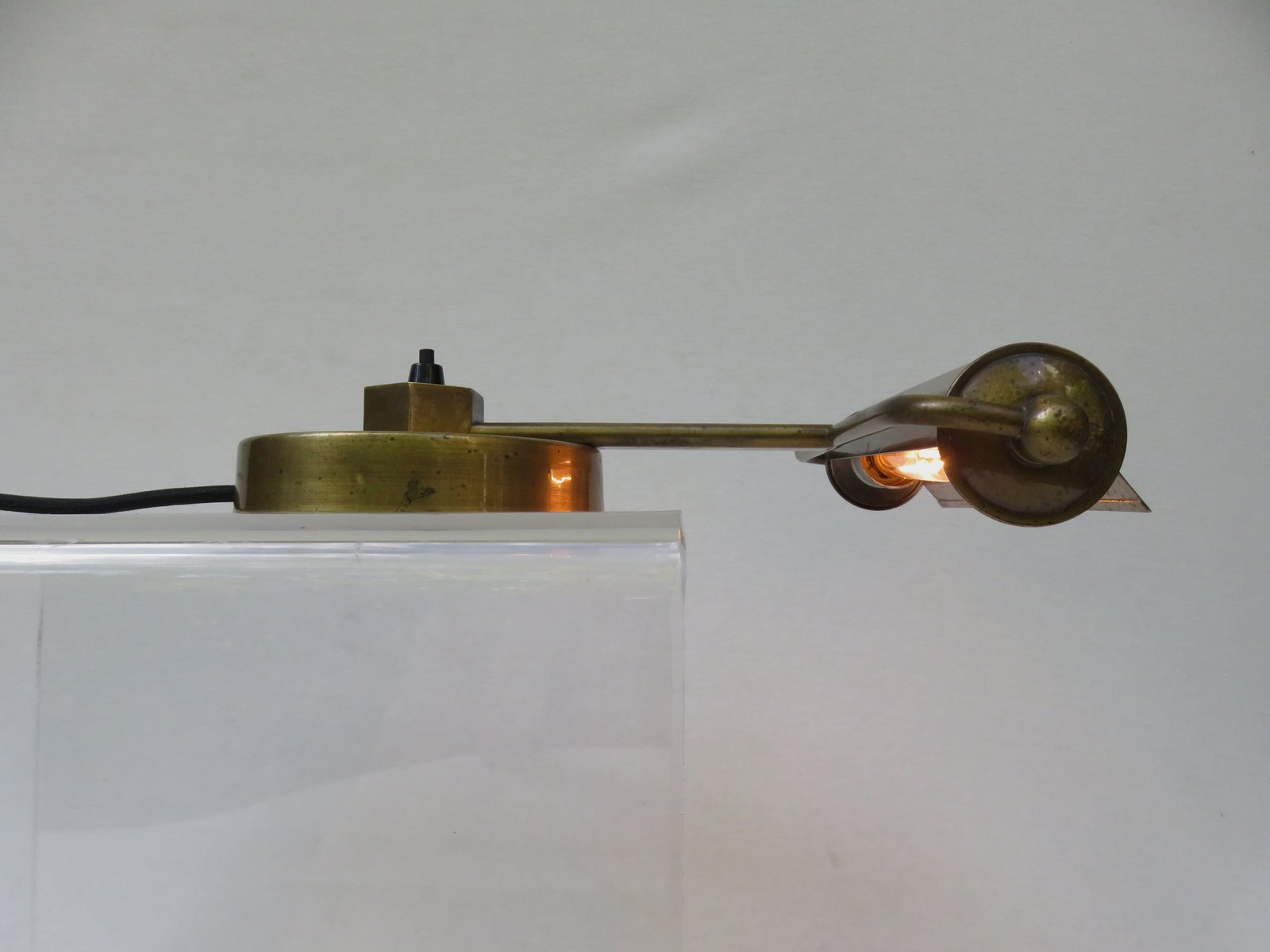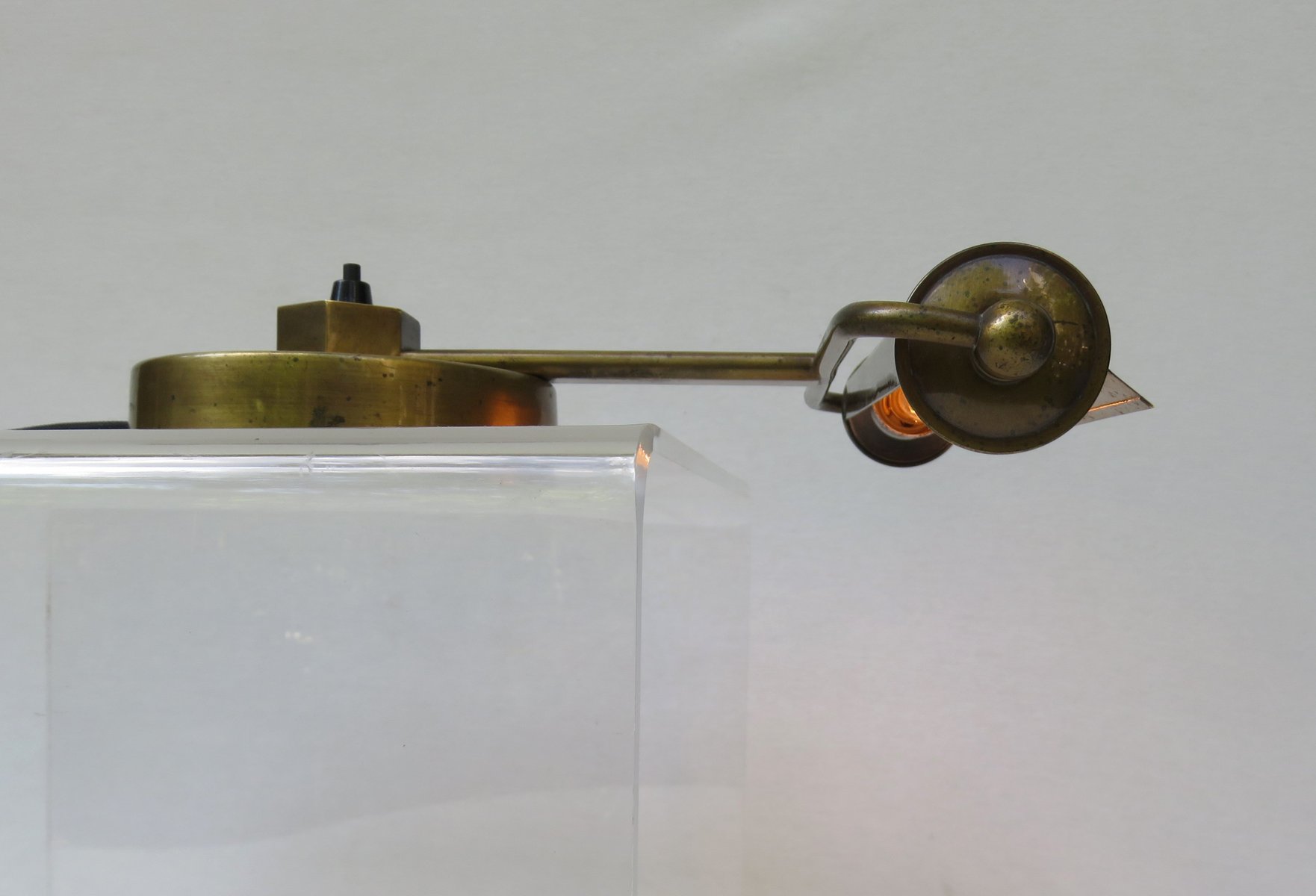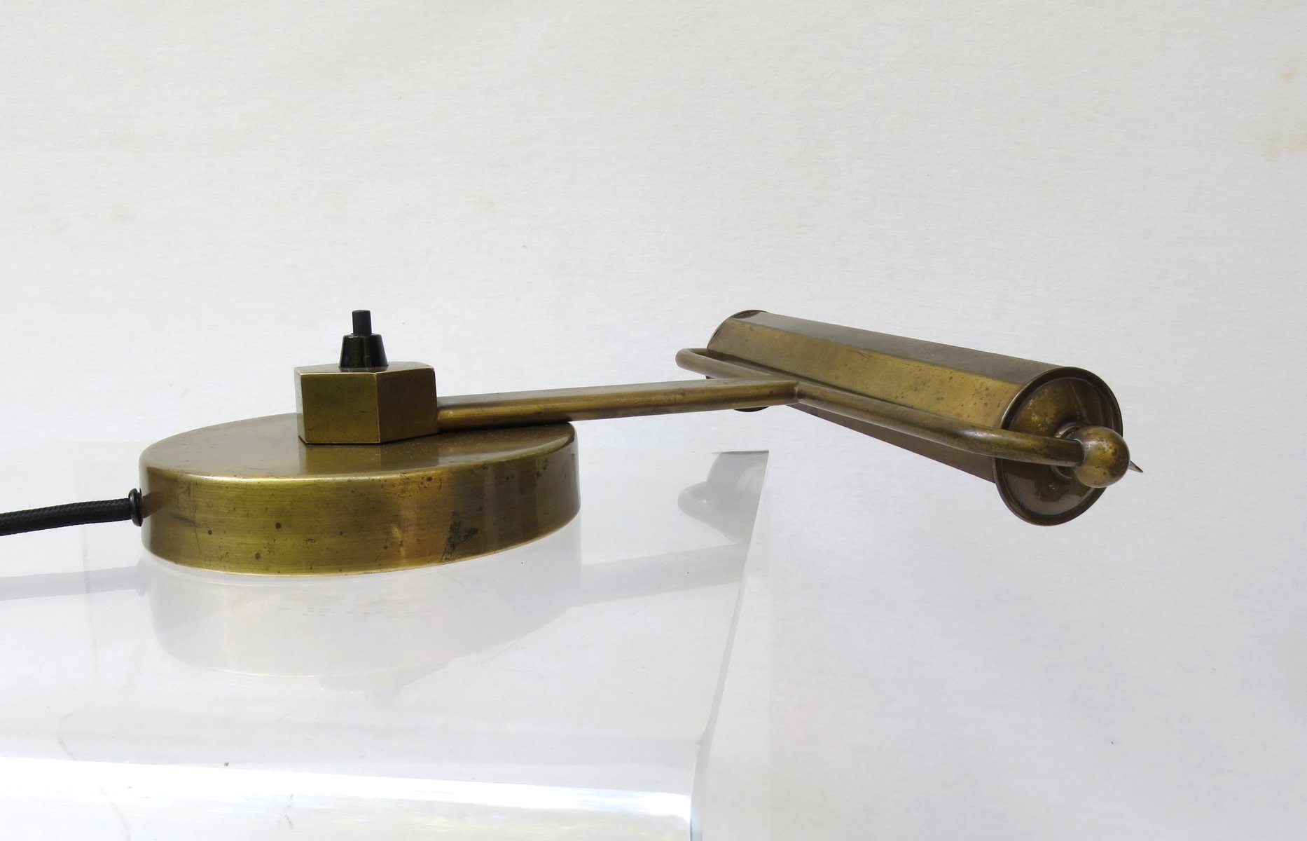 Art Deco Minimalist Piano Lamp in Patinated Brass, 1920s