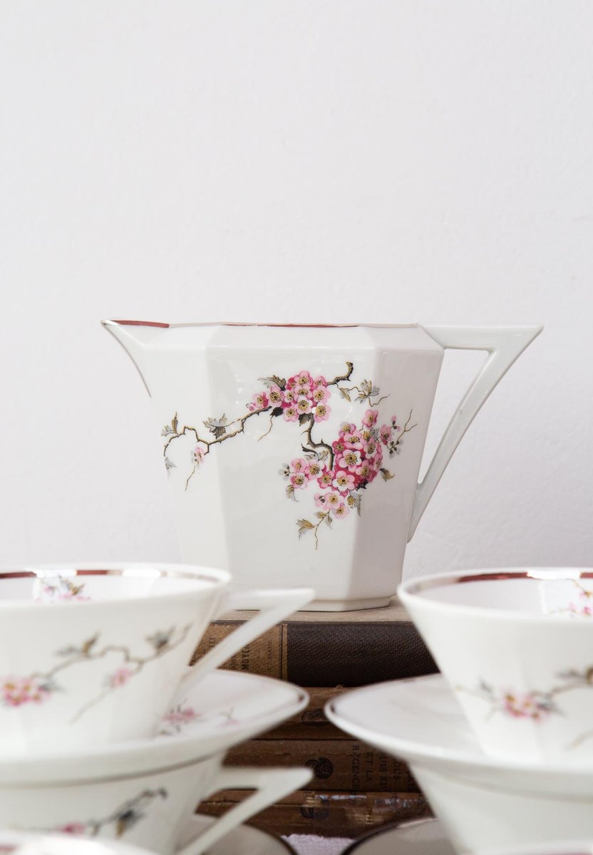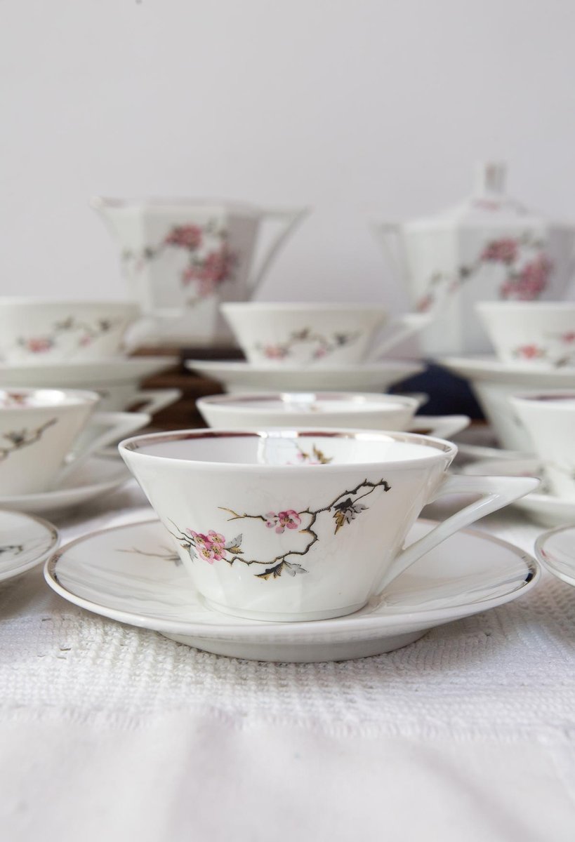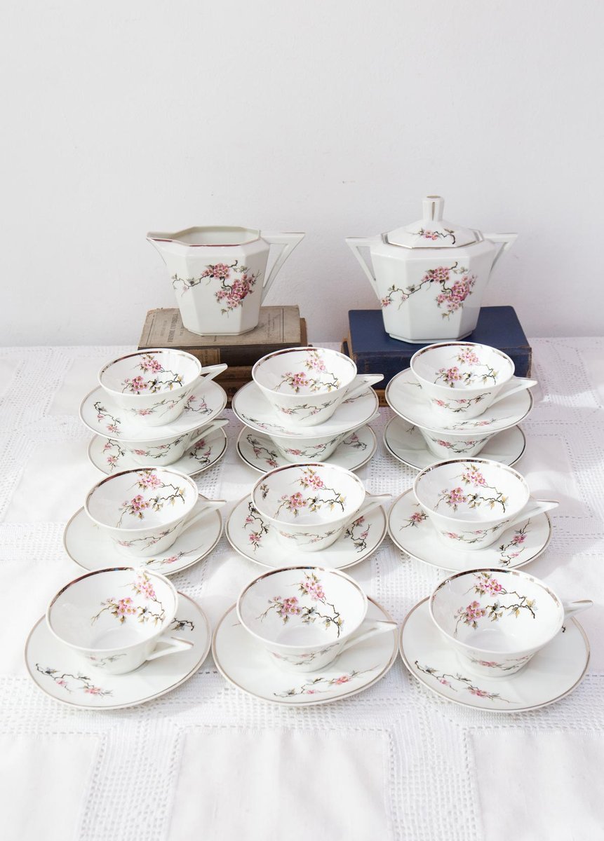 Art Deco Tea Service for 12 from Limoges Porcelain, 1920s-1930s, Set of 26