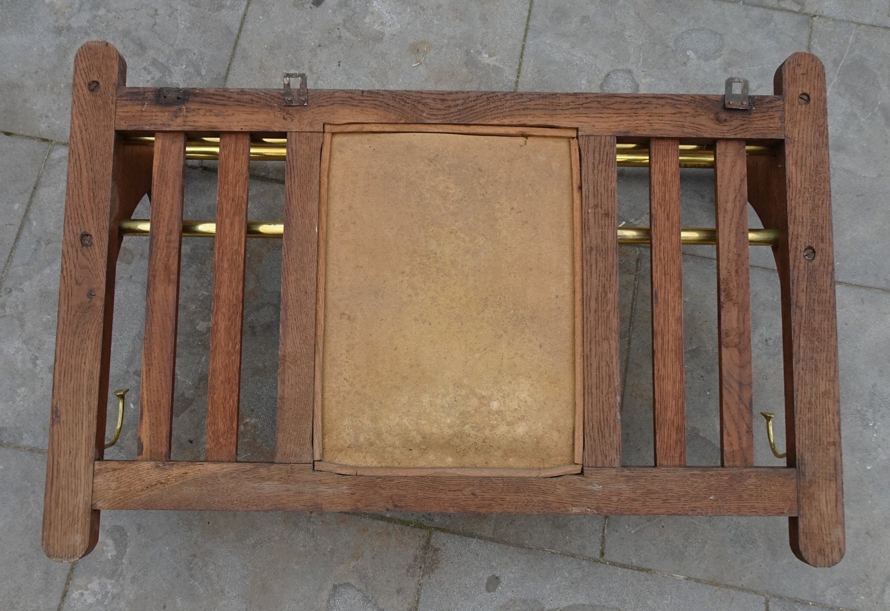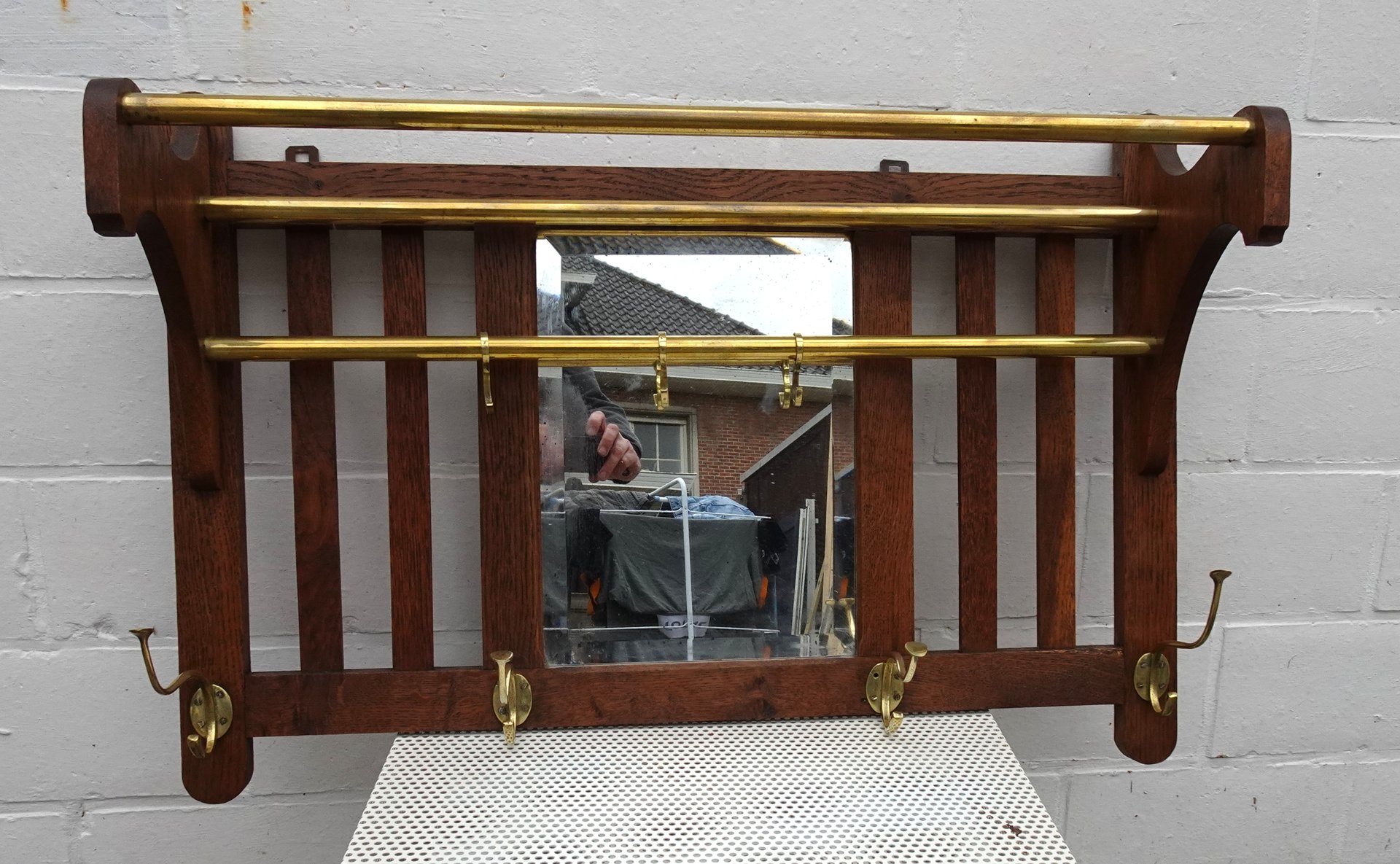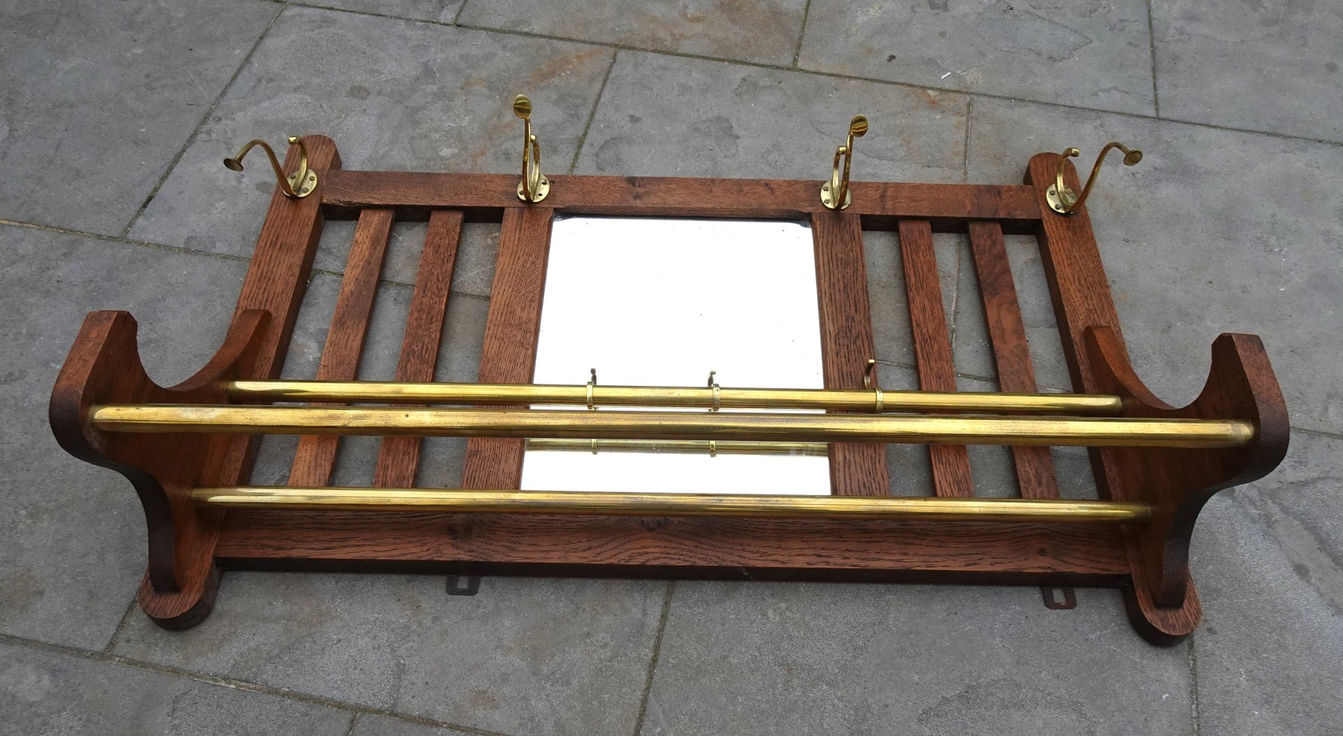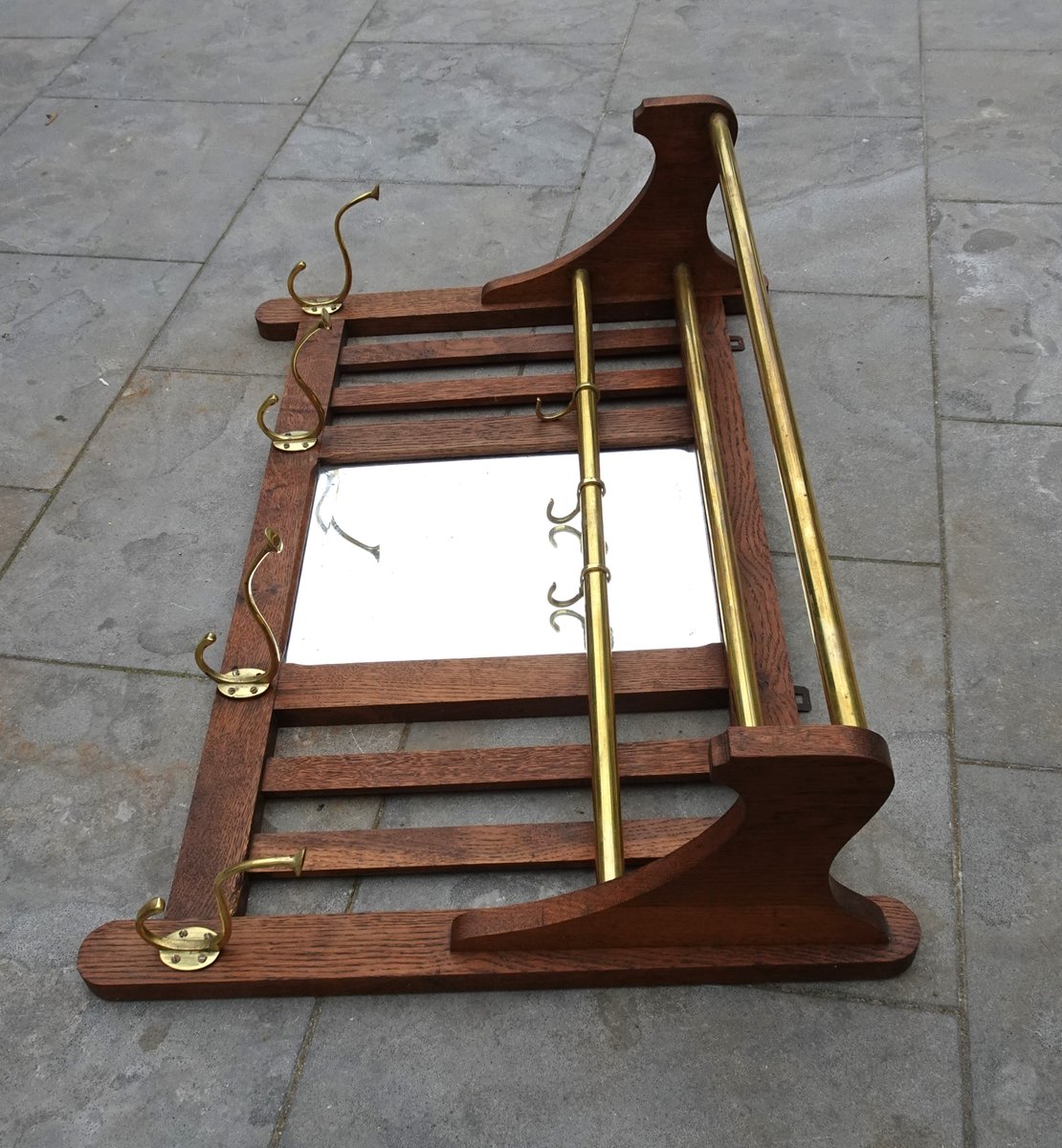 Art Deco Wall Coat Rack in Belgian Oak and Brass, 1920s