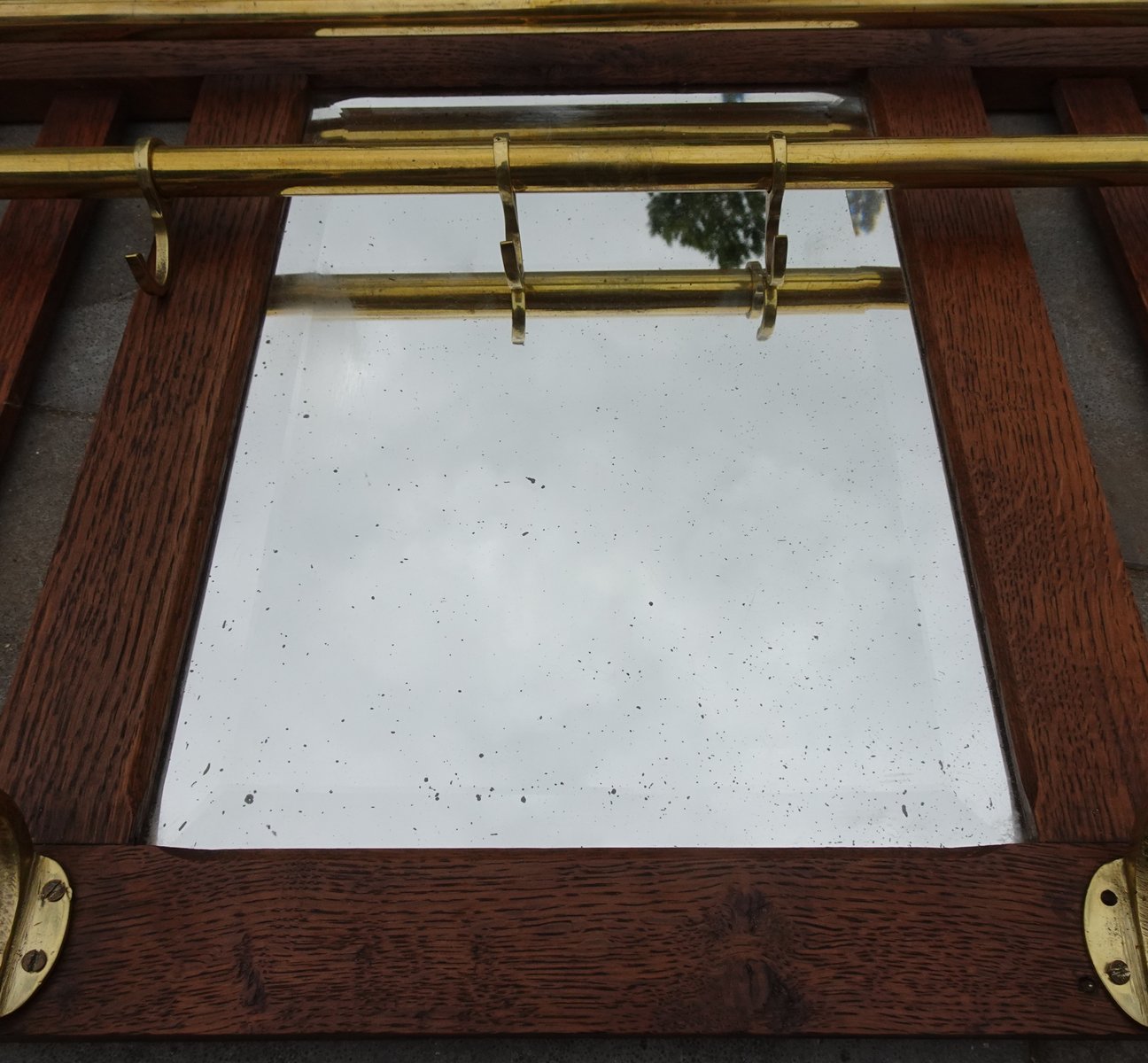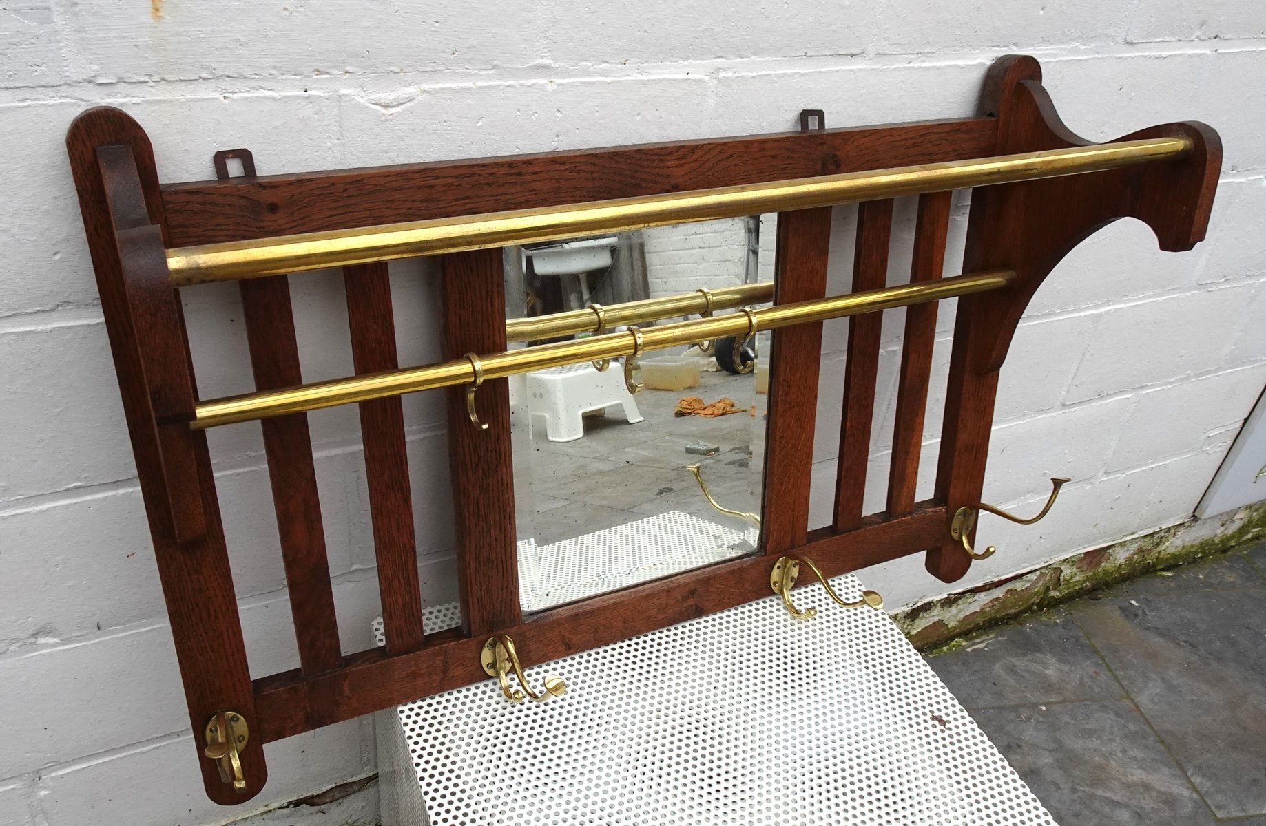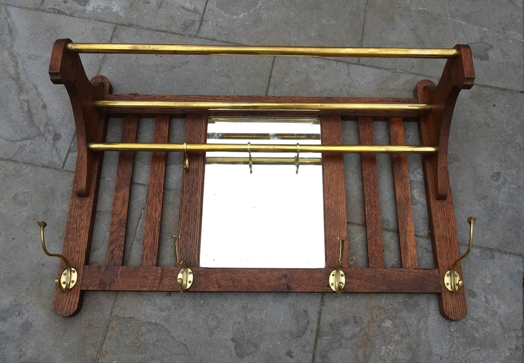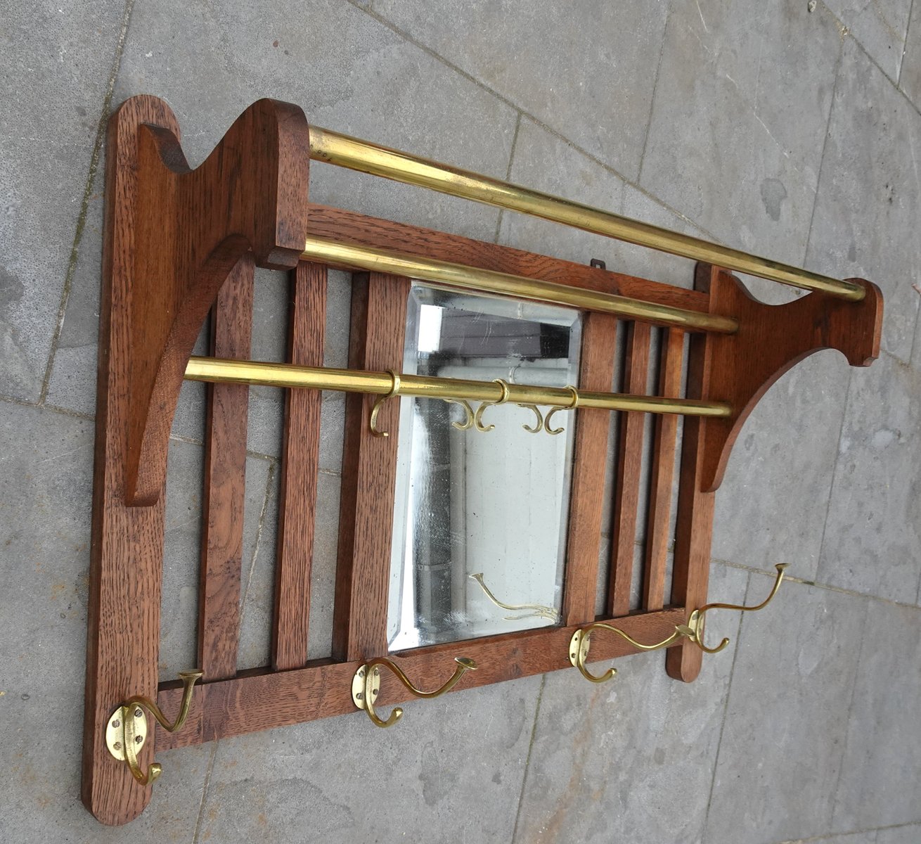 Art Deco Wall Coat Rack in Belgian Oak and Brass, 1920s