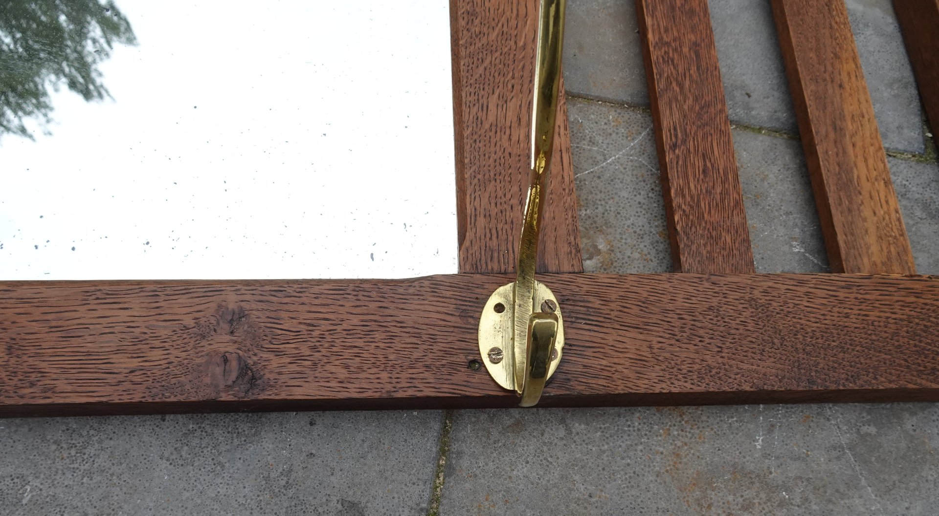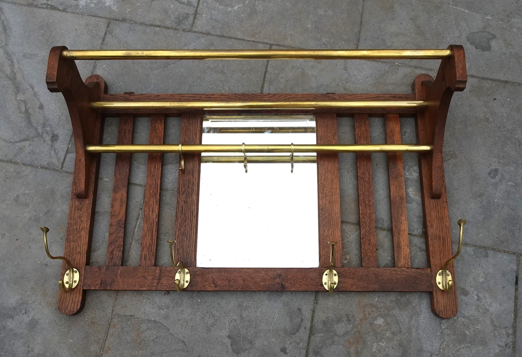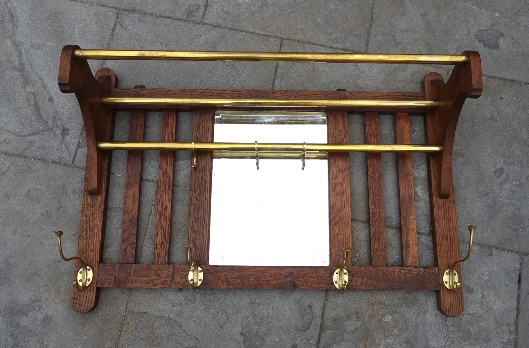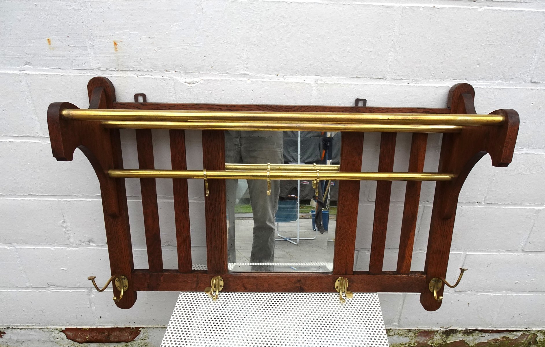 Art Deco Wall Coat Rack in Belgian Oak and Brass, 1920s