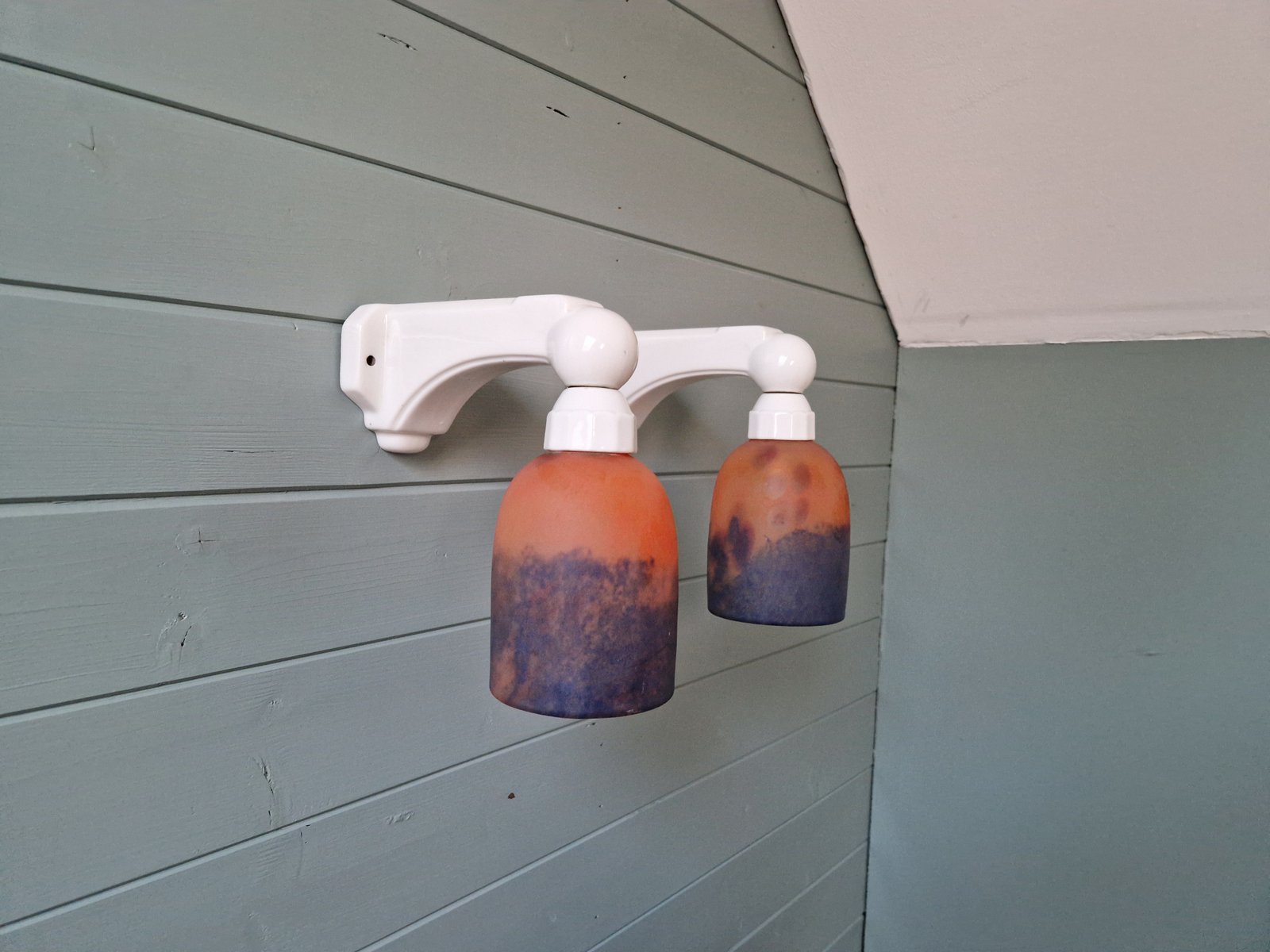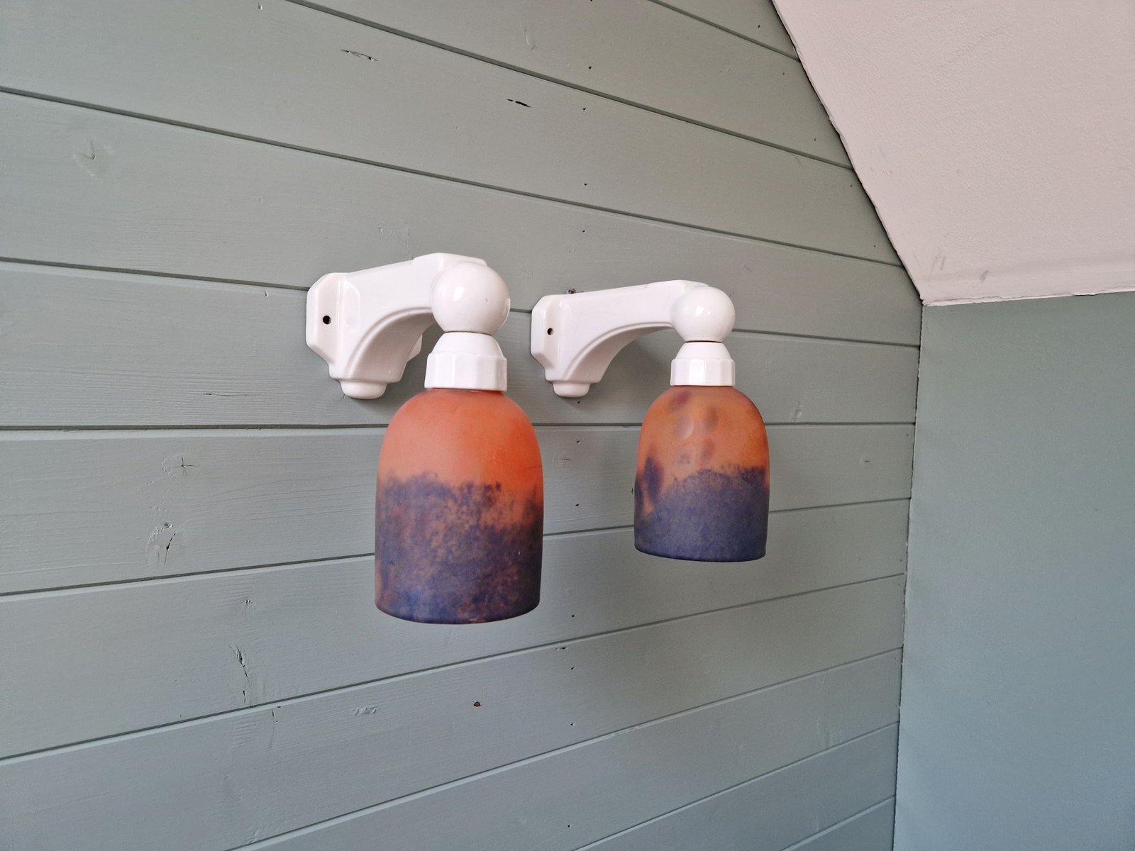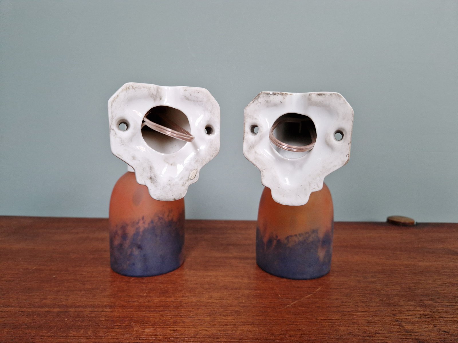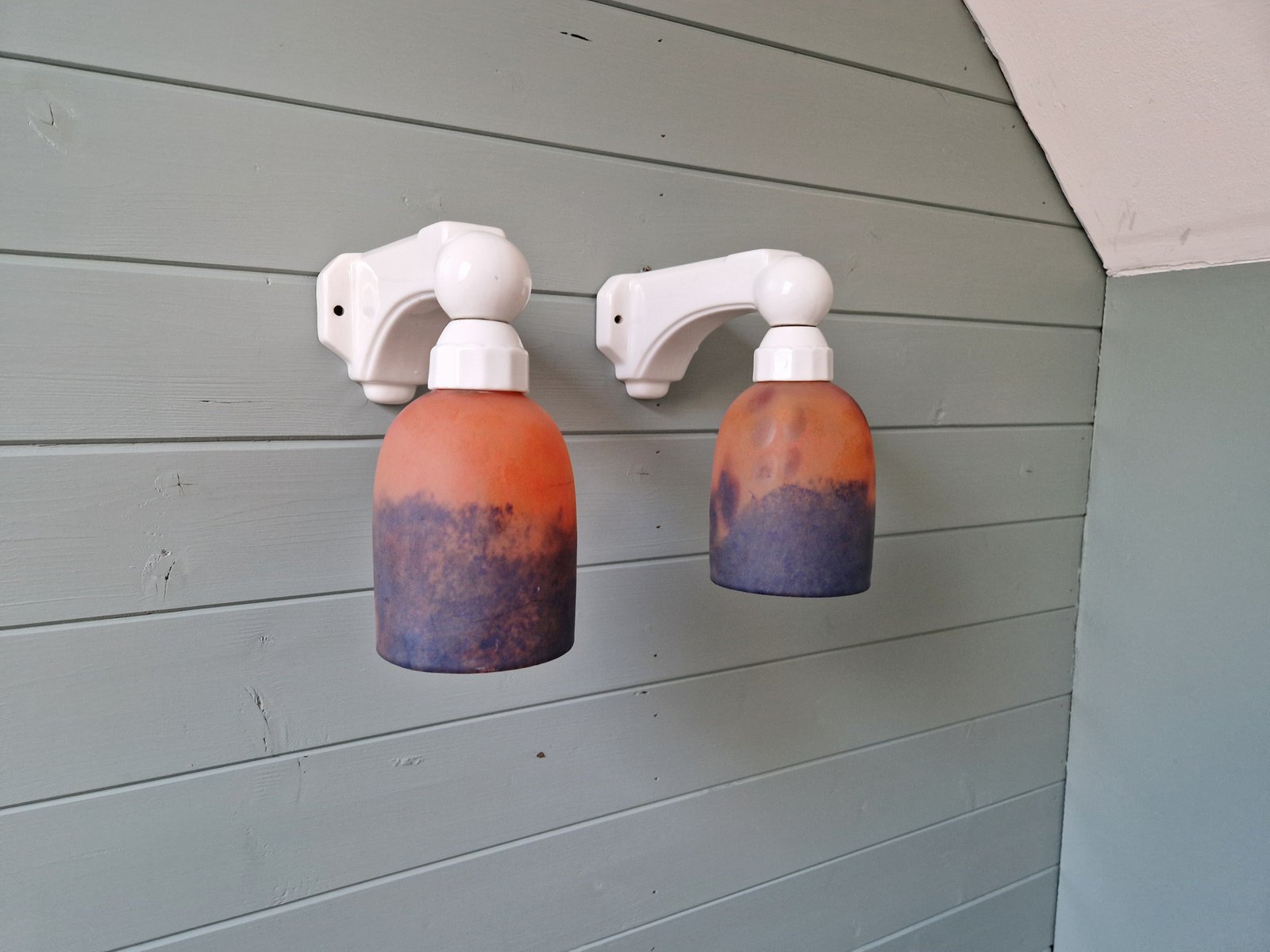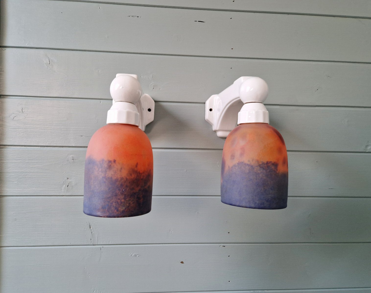 Art Deco Wall Sconces in Porcelain and Multicoloured Satin Glass, 1930s, Set of 2