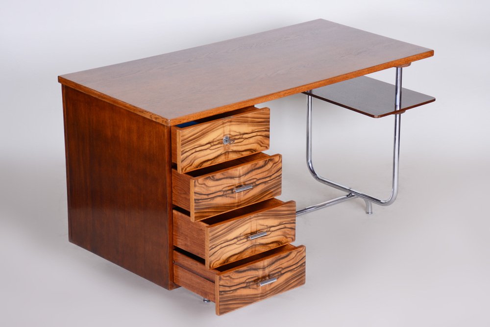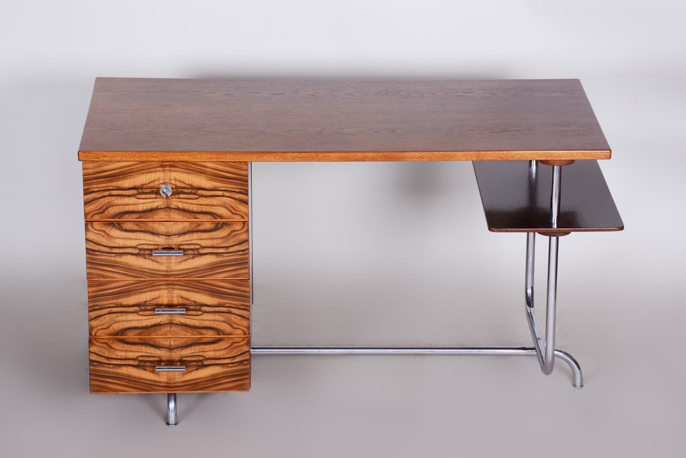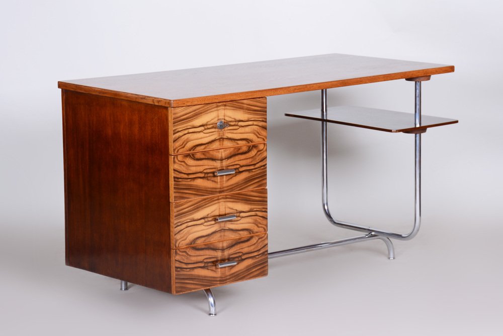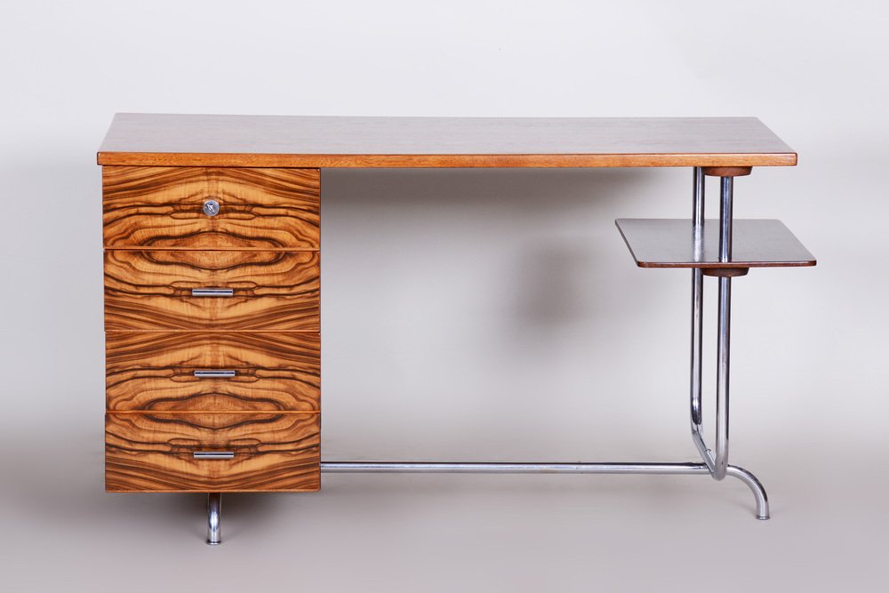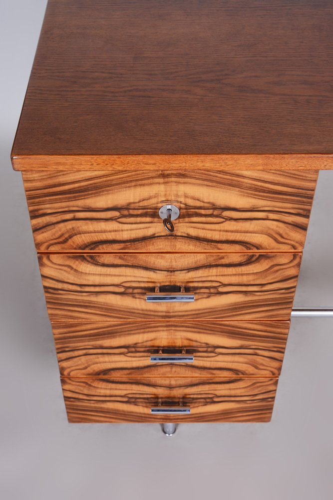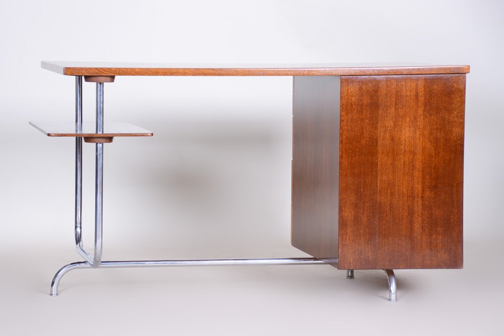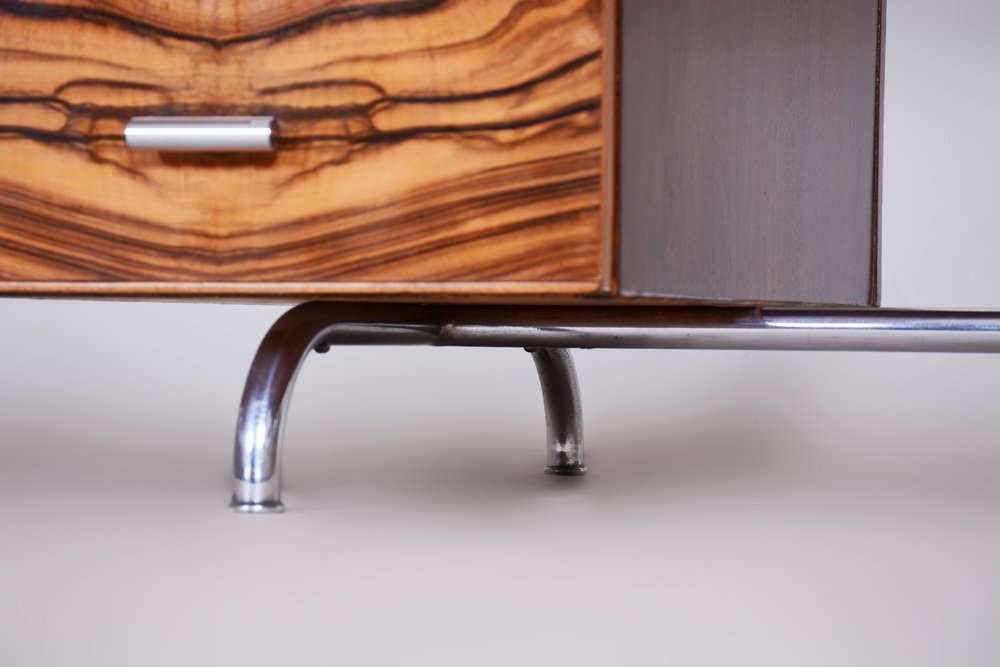 Bauhaus Czechia Sideboard in Walnut and Chrome-Plated Steel by Robert Slezak, 1930s