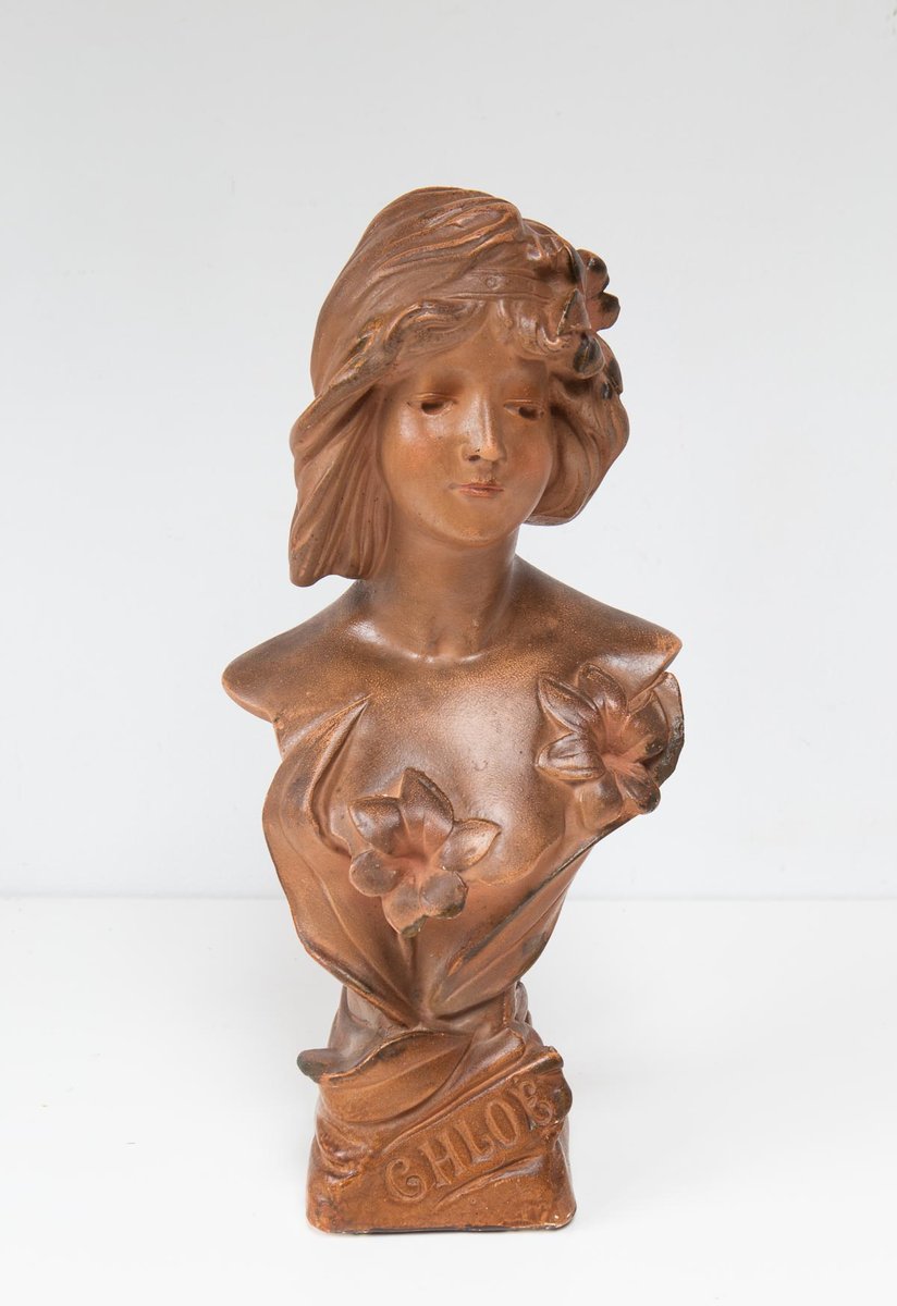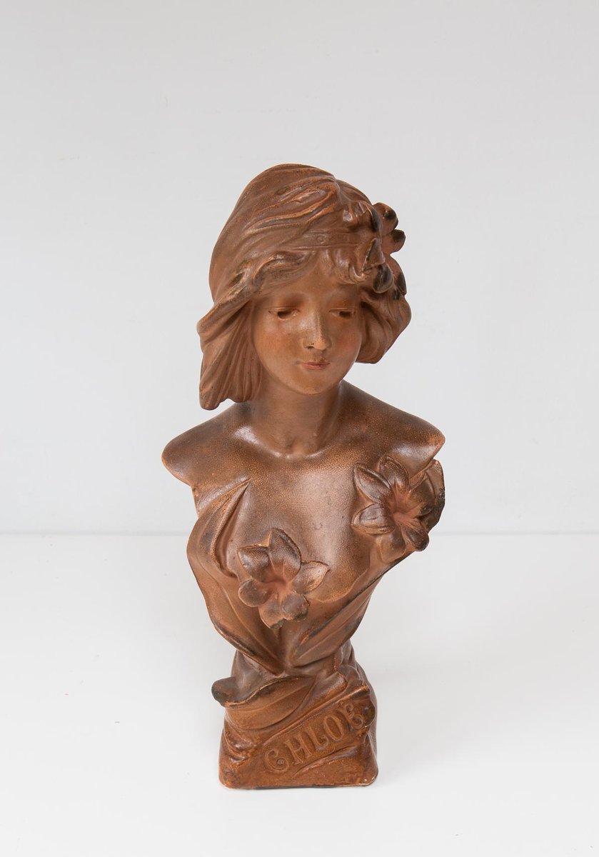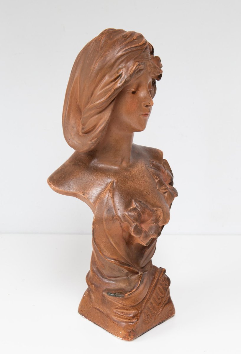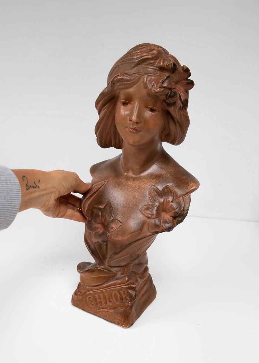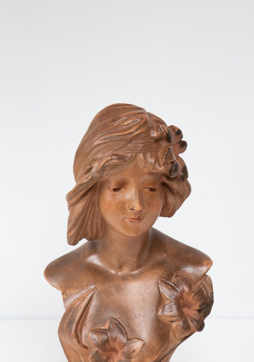 Art Nouveau French Plaster Bust of a Young Woman, 1890s-1910s