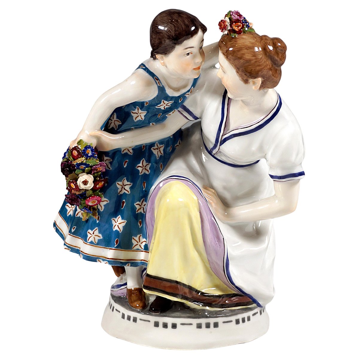 Art Nouveau Girl with Child Figurine by T. Eichler for Meissen, 1905