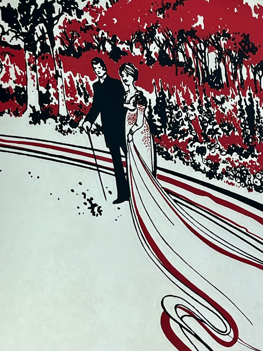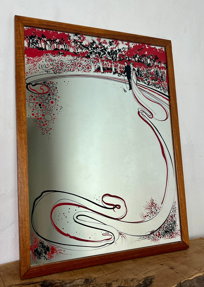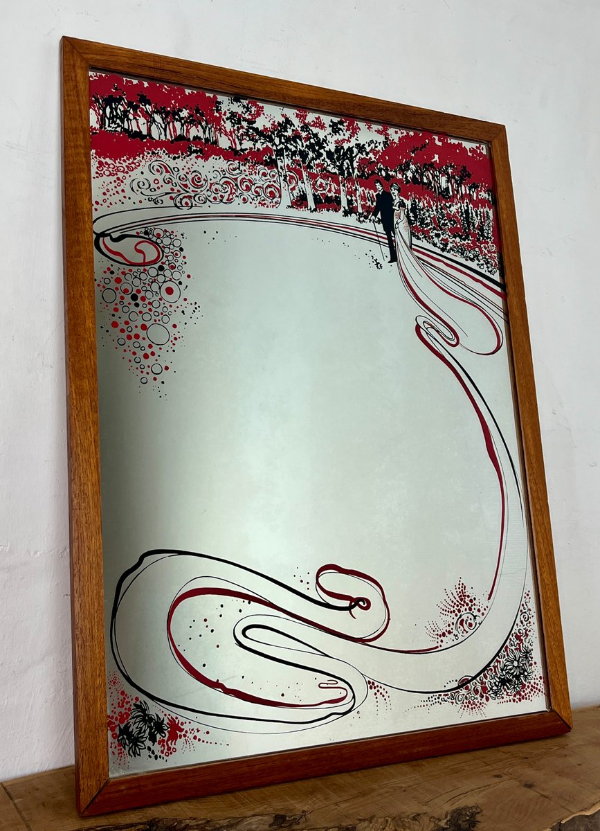 Art Nouveau Mirror with Married Couple Under Tree Motif in the style of Aubrey Beardsley, 1960s