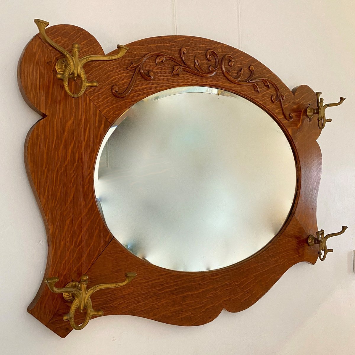 Art Nouveau Oak Hall Gold Bistrot Mirror, 1890s
