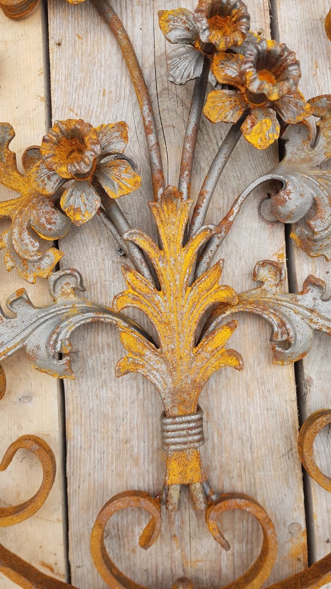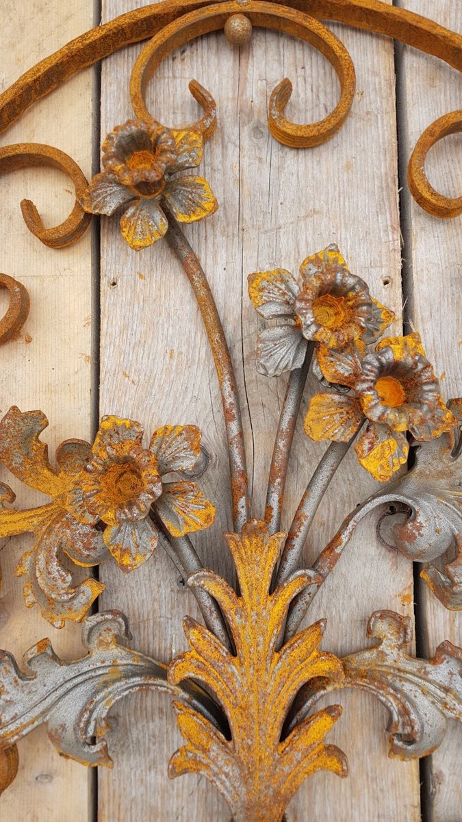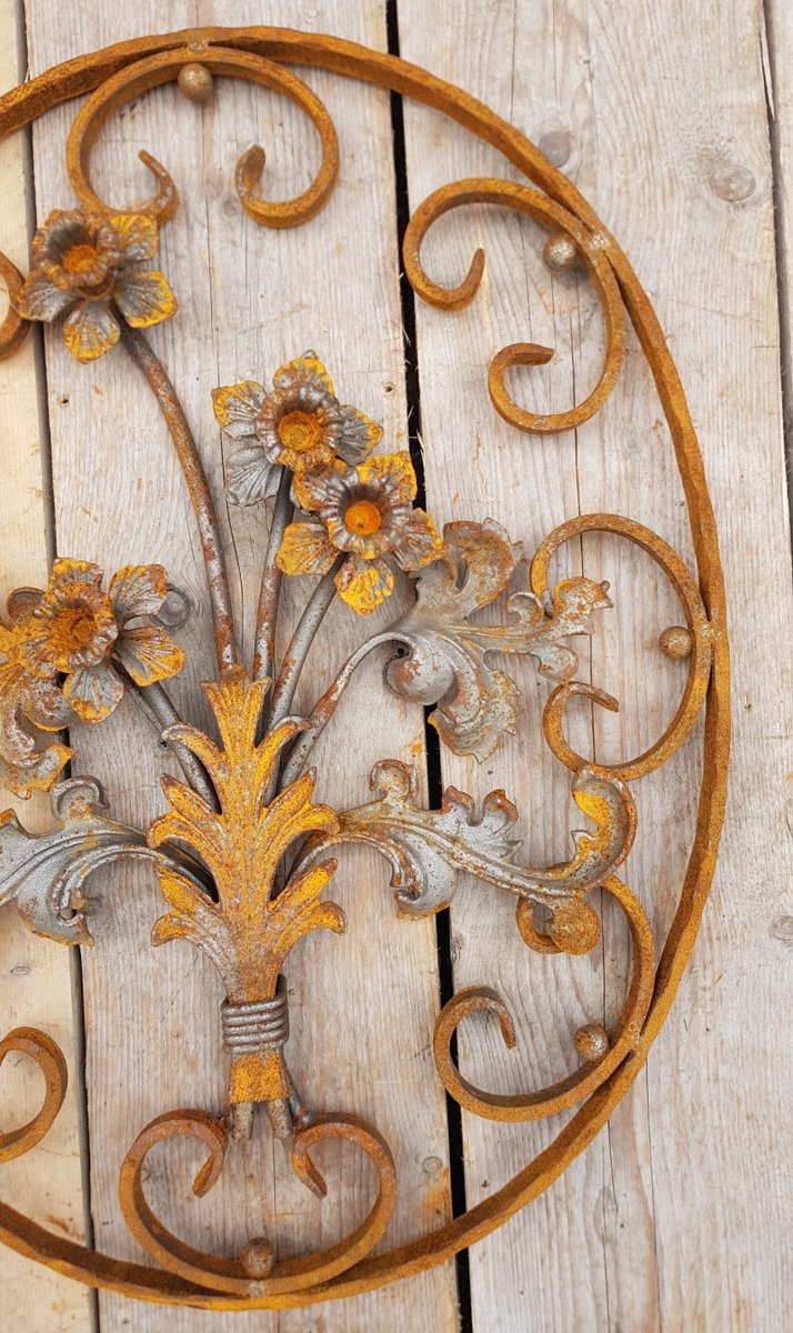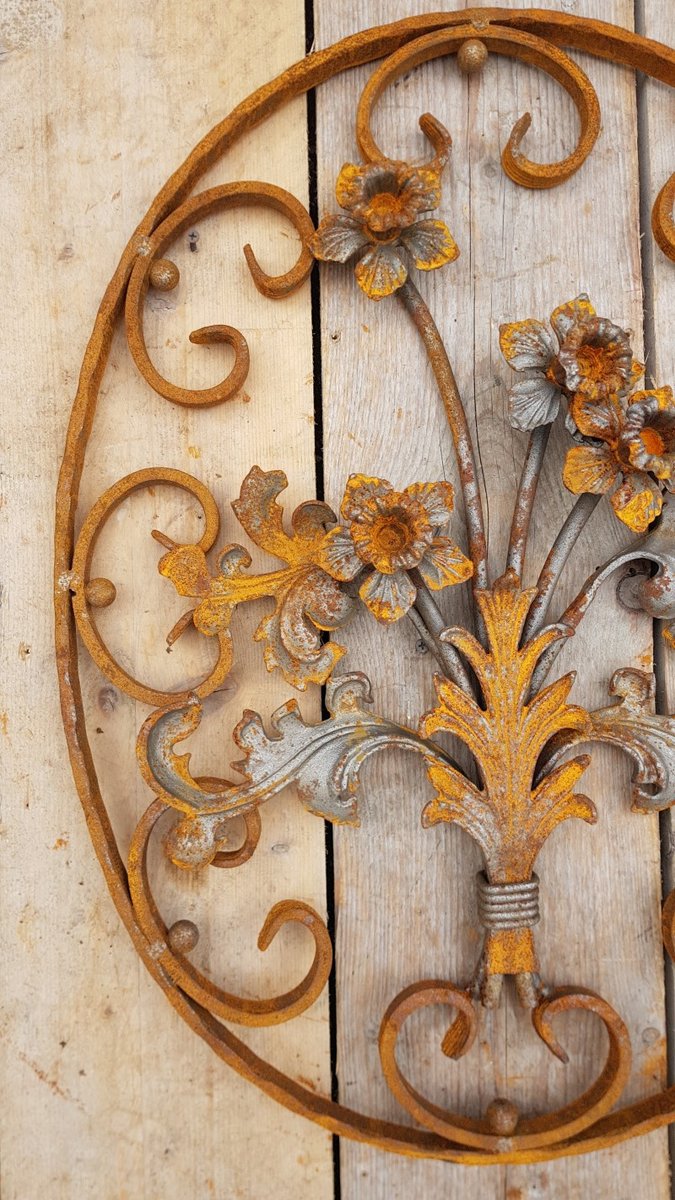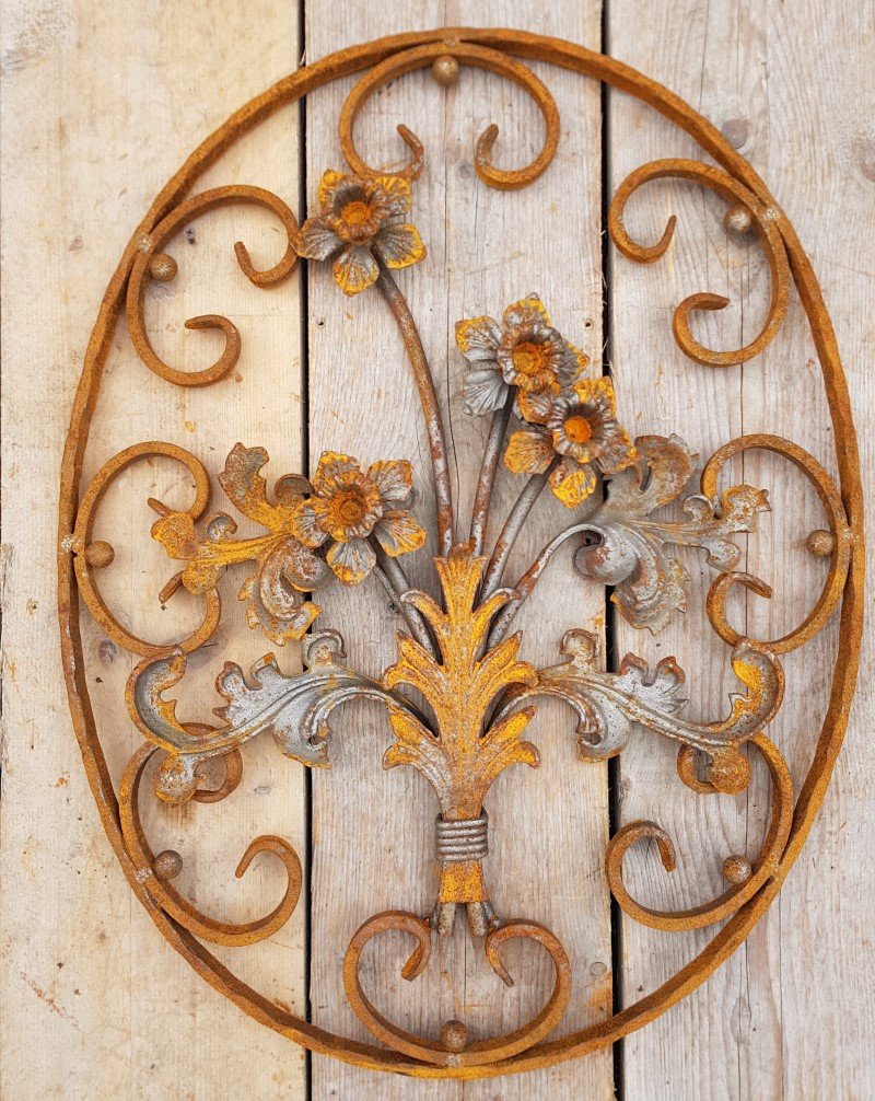 Art Nouveau Oval Wrought Iron Decoration Ornament Element with Flowers