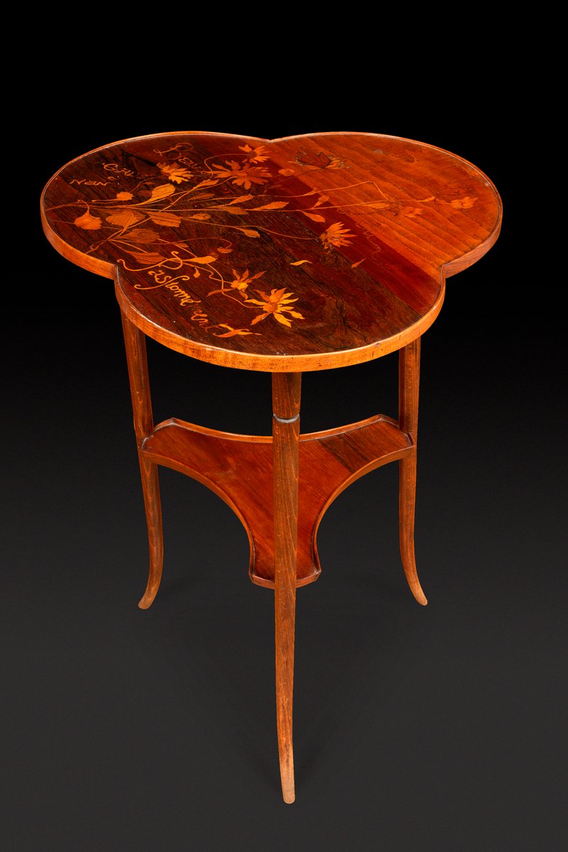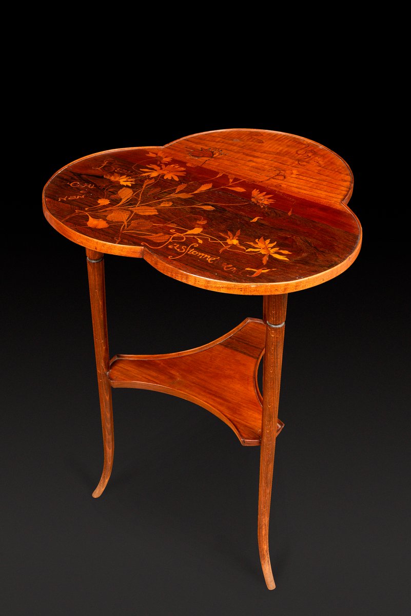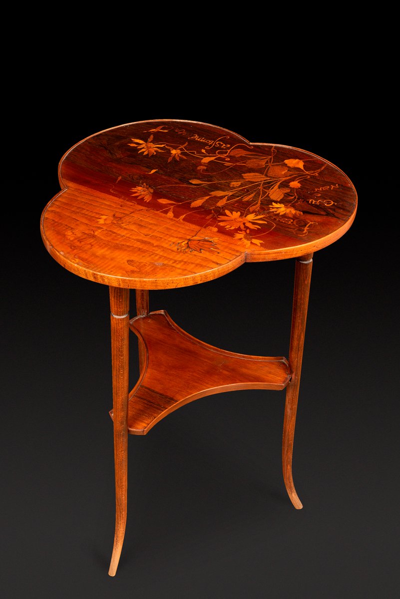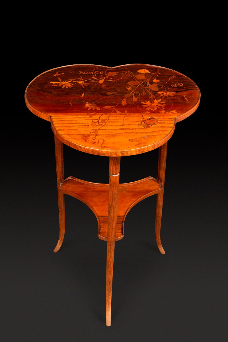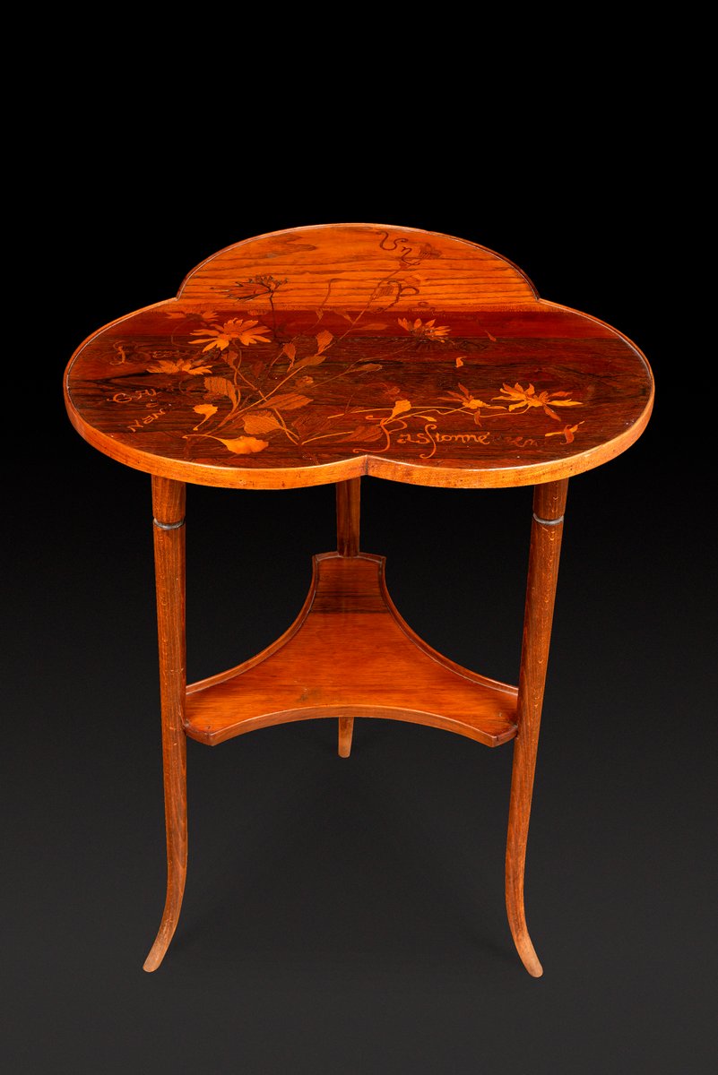 Art Nouveau Pedestal Table with Trefoiled Marquetry Top Decorated with Flowers by Émile Gallé, 1890s