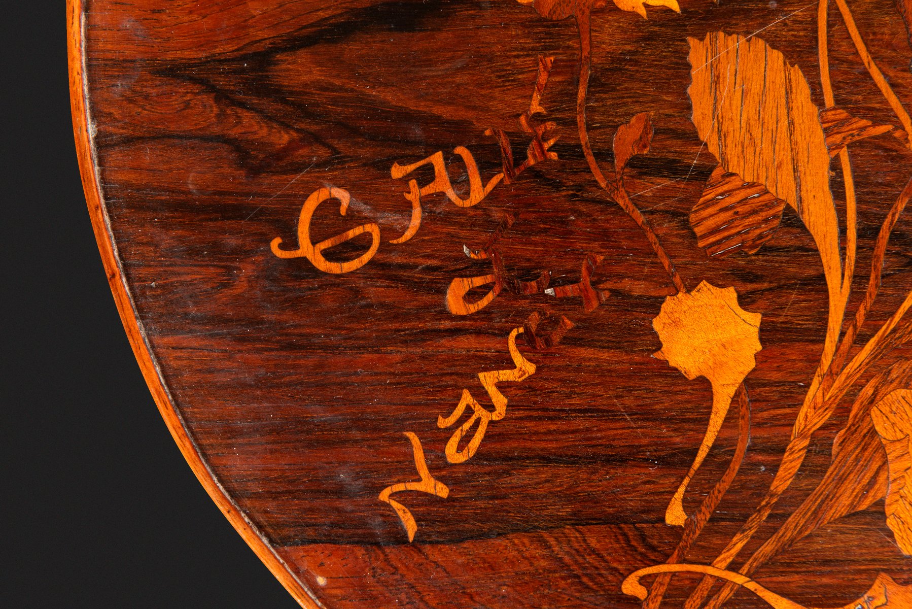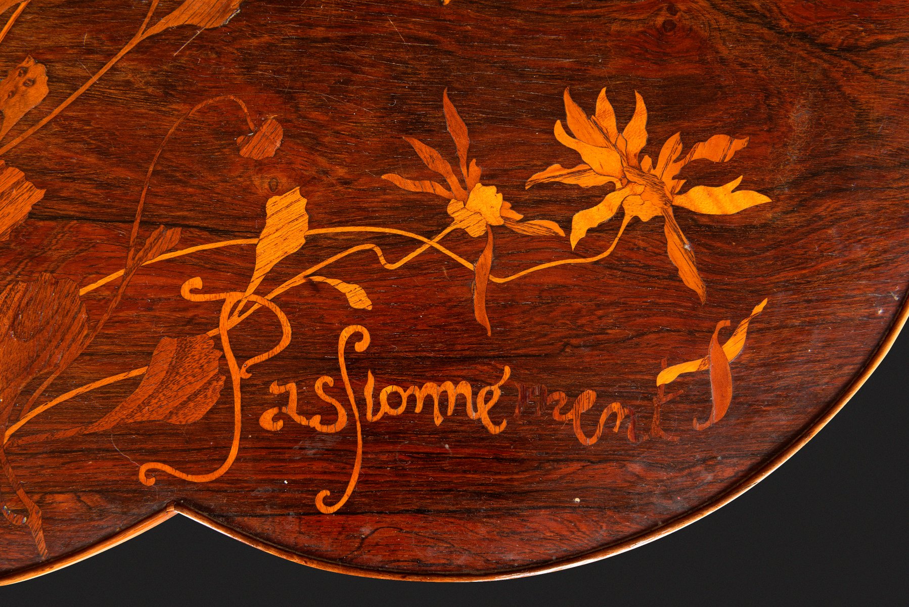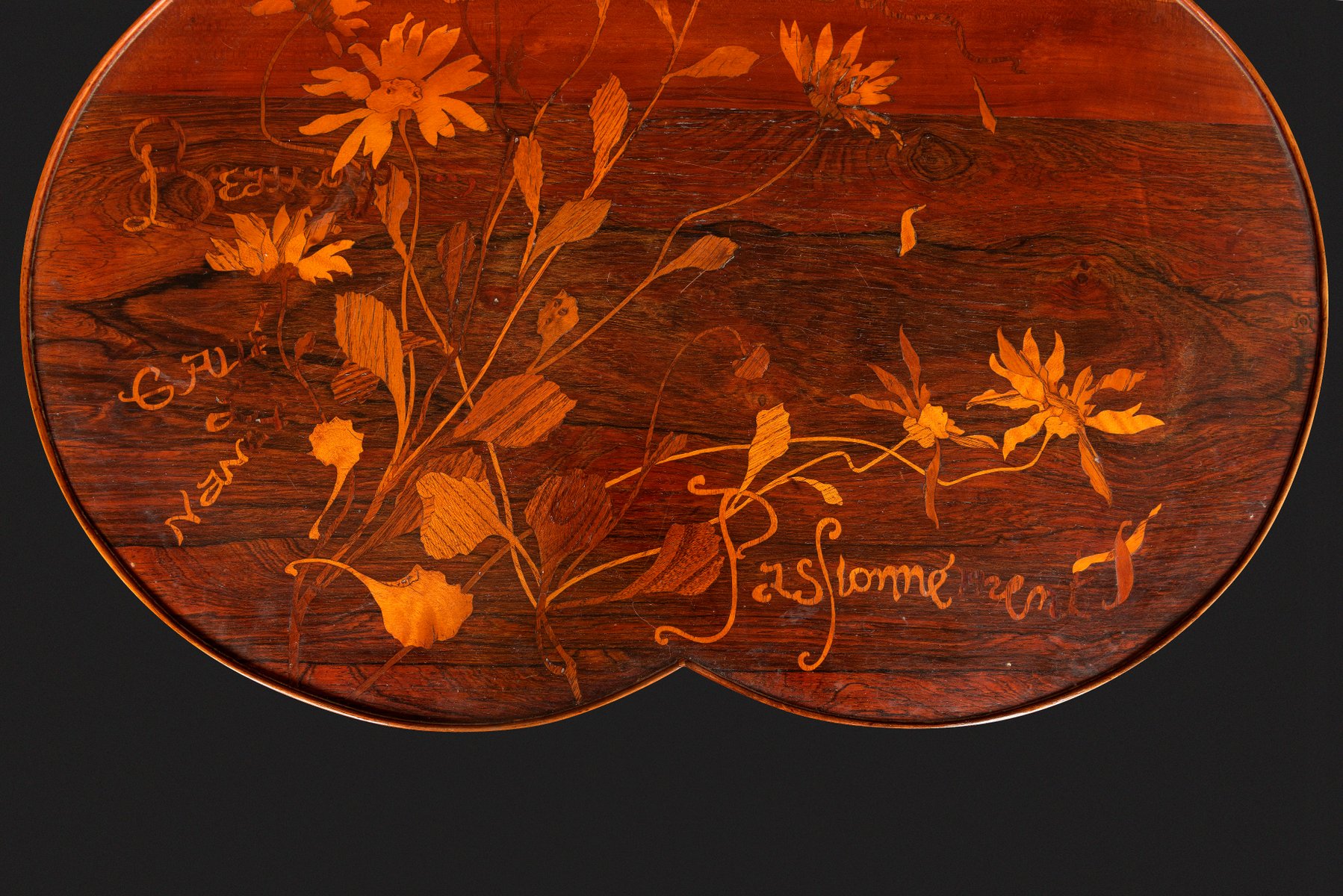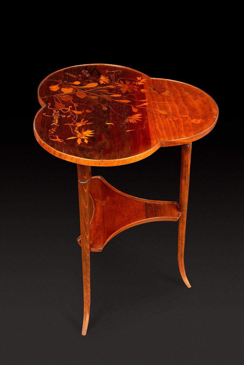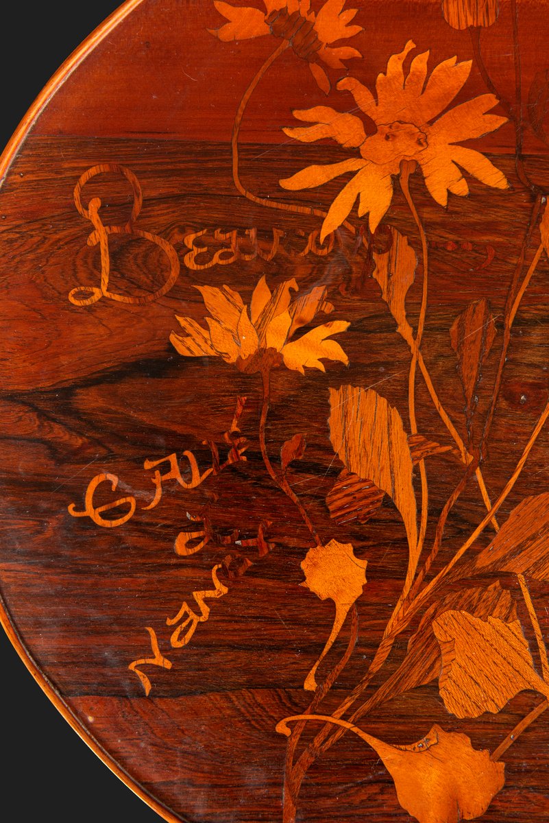 Art Nouveau Pedestal Table with Trefoiled Marquetry Top Decorated with Flowers by Émile Gallé, 1890s