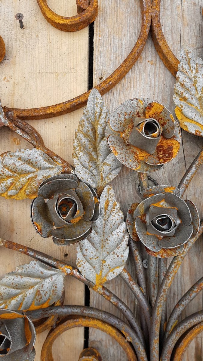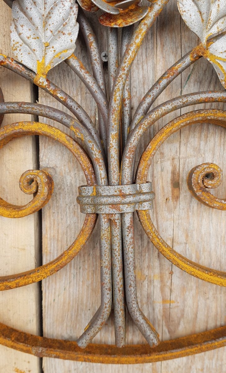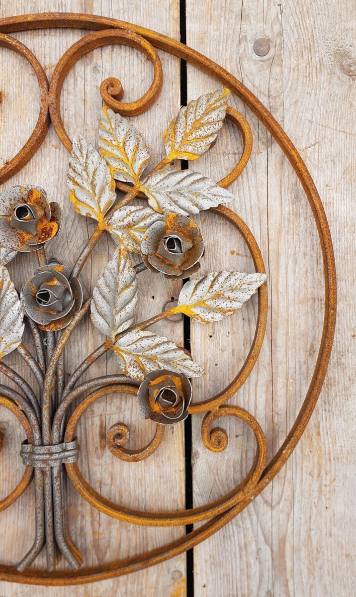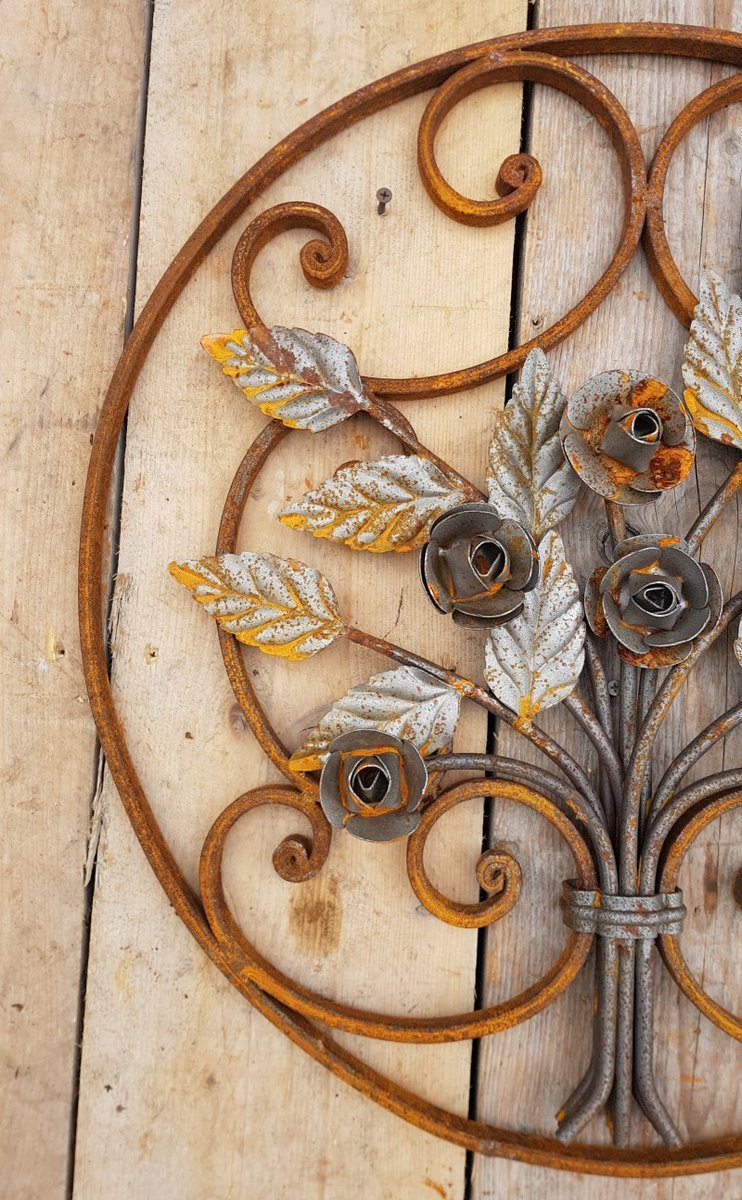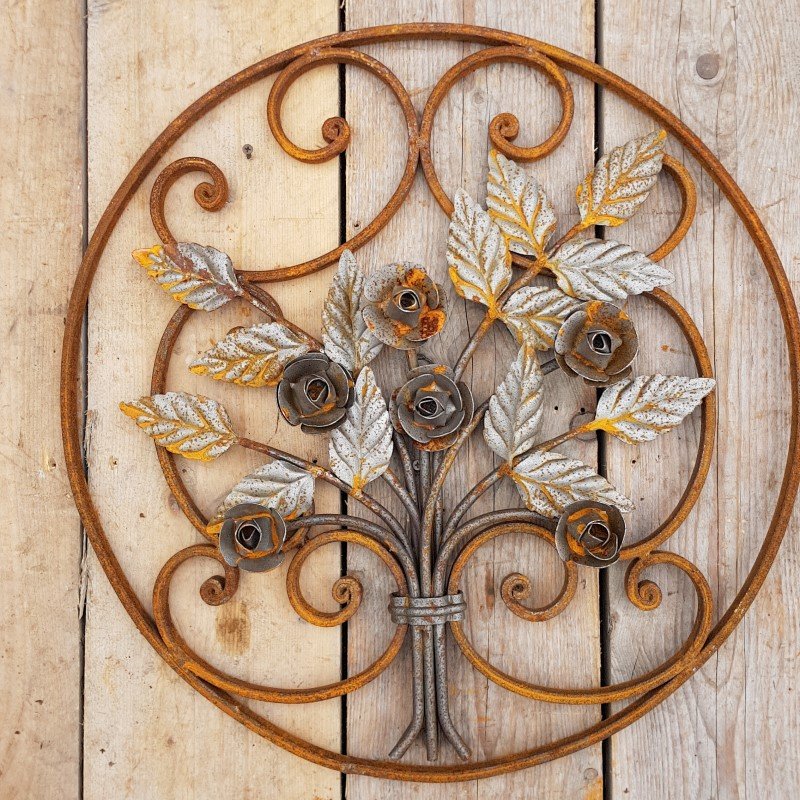 Art Nouveau Round Wrought Iron Decoration Ornament Element with Flowers Roses