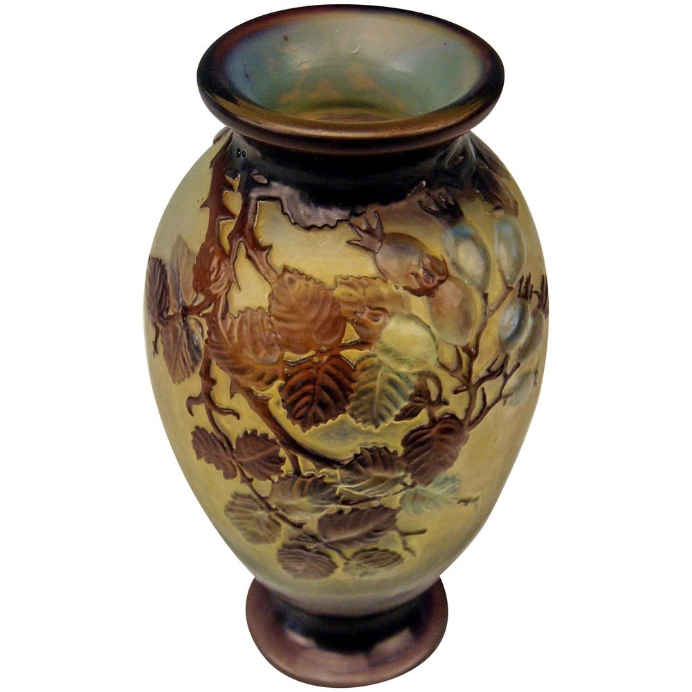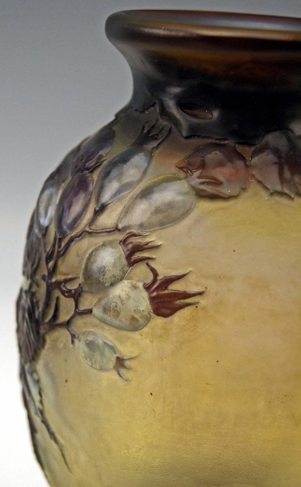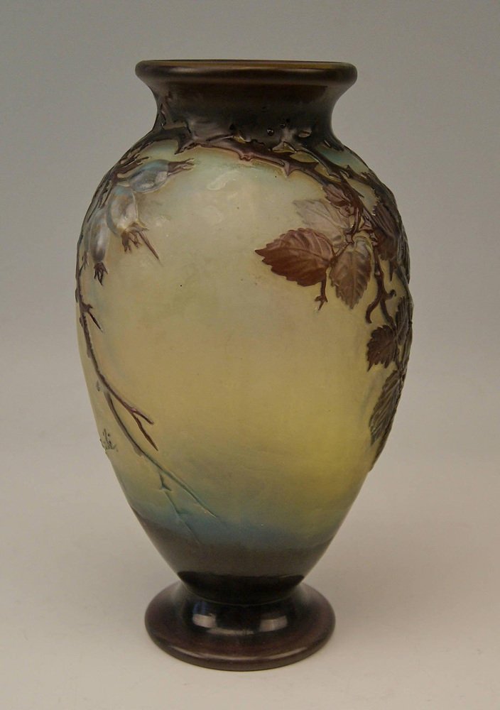 Art Nouveau Wild Rose Soufflé Vase by Emile Gallé, Nancy, France, 1925
