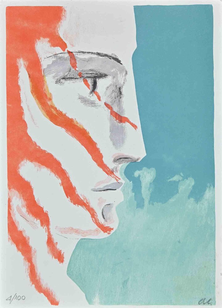Arturo Carmassi, Red Hair Profile, Lithograph, 1973