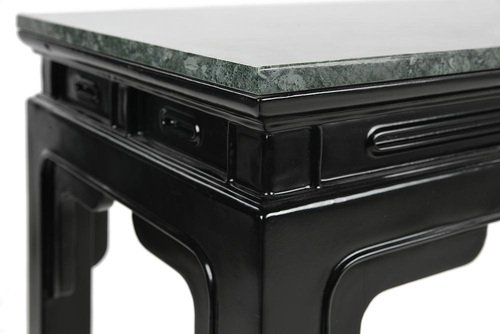 Asian Console in Lacquered Wood with Jade Green Marble Top