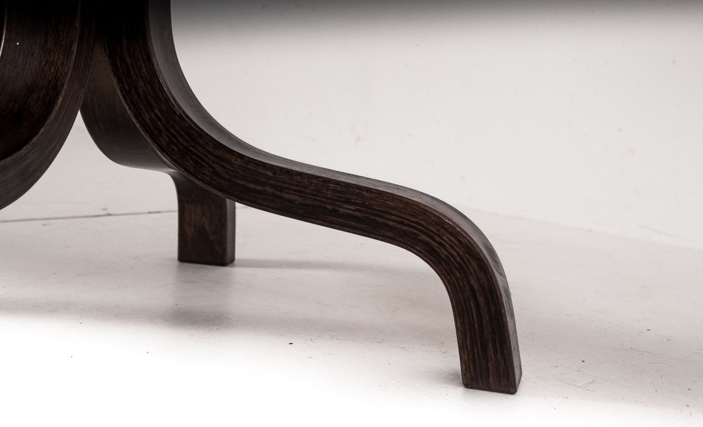 In the 1930s, Asko expanded their sales offices outside of Finland and gained popularity with international interior designers for minimalist, upholstered furniture. After World War II, however, Asko entered the canon of design history by bringing Olli Borg on as head designer and by collaborating with other major Finnish design talents. Ilmari Tapiovaara designed Asko’s Fanett Chair (1955), Crinolette Chair (1958), and Aslak Chair (1958). Tapio Wirkkala created Asko’s beautifully laminated coffee table—with his signature leaf motif—in 1958. Ilmari Lappalainen was responsible for the Pulkka Lounge (1963), and Stefan Lindfors developed the Draco Chair (1993). These and other Asko pieces have become iconic, collectible design objects.