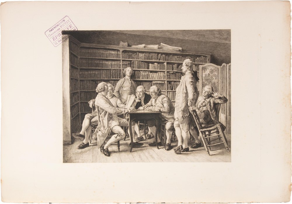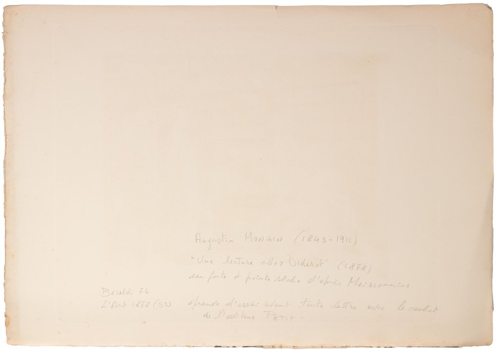 Auguste Mongin, Une Lecture chez Diderot, Etching, 1878