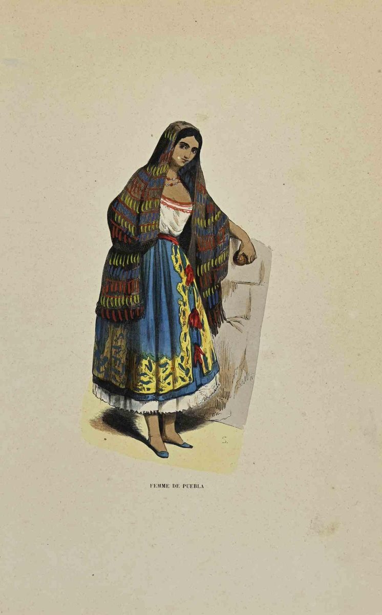 Auguste Wahlen, Femme de Puebla, Lithograph, 1844