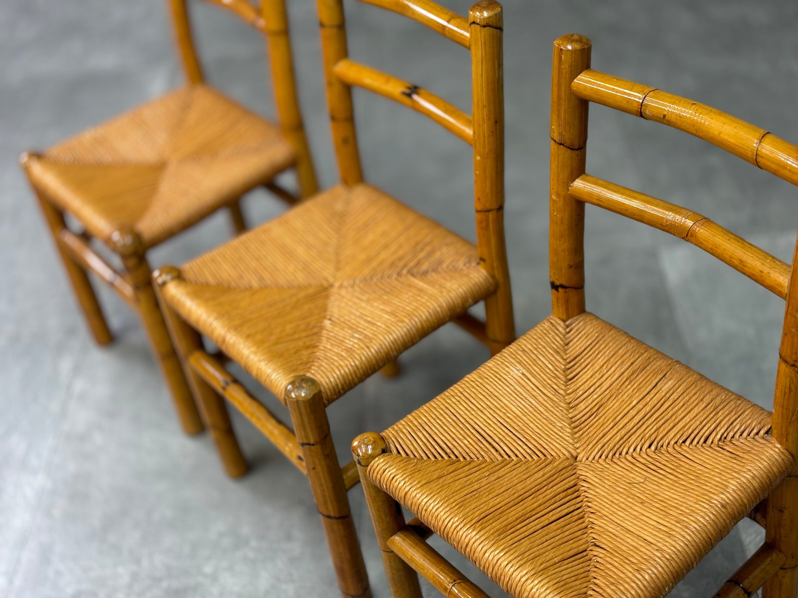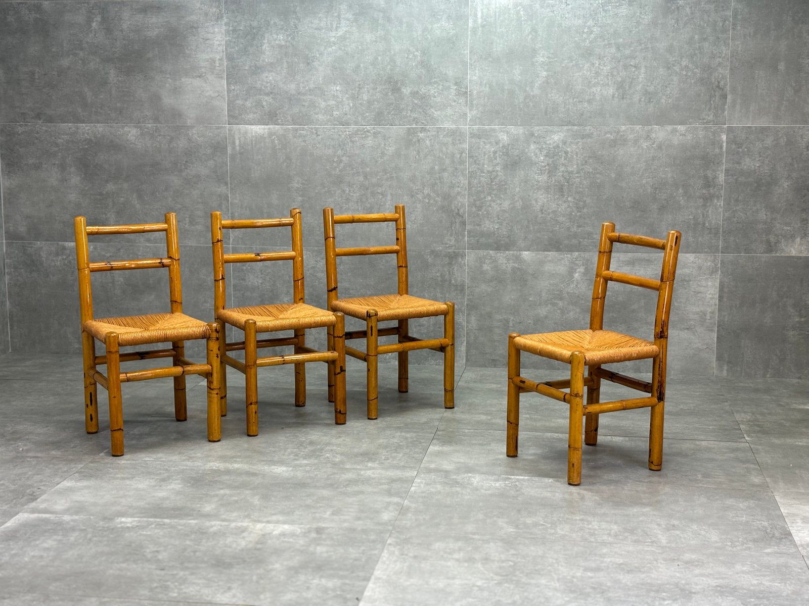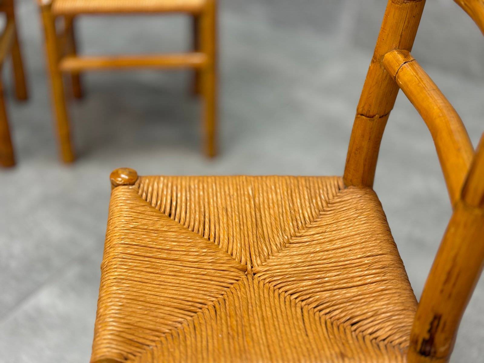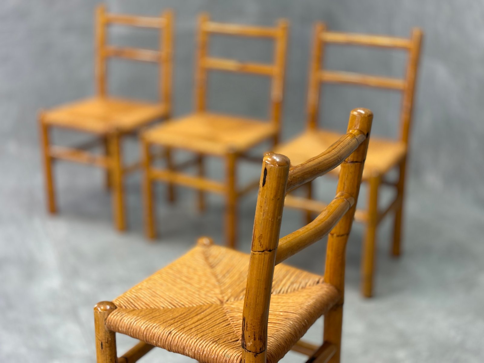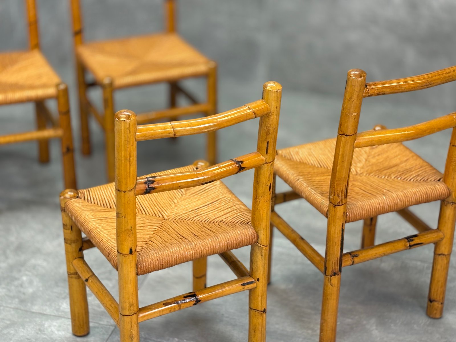 Bamboo and Straw Chairs, 1970s, Set of 4
