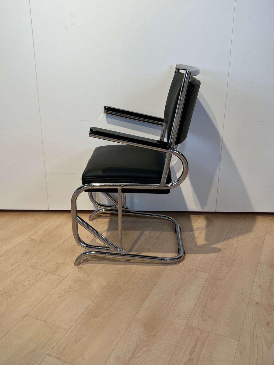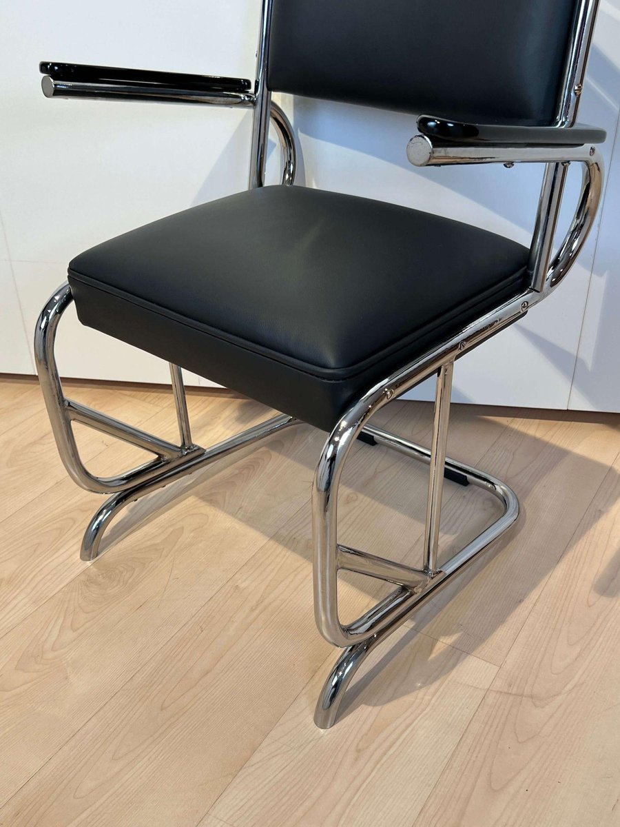 Bauhaus Chromed Tubular Steel and Leather Cantilever Armchair, Germany, 1935