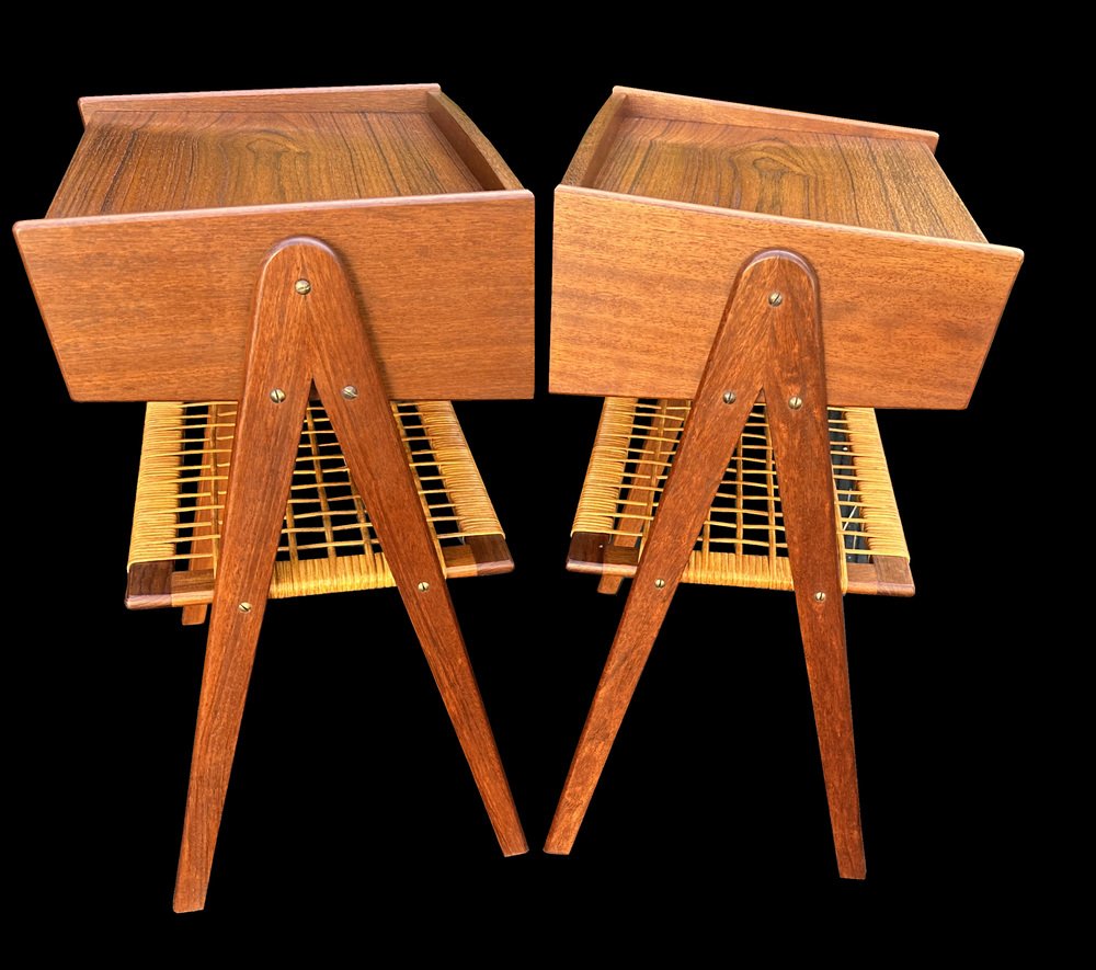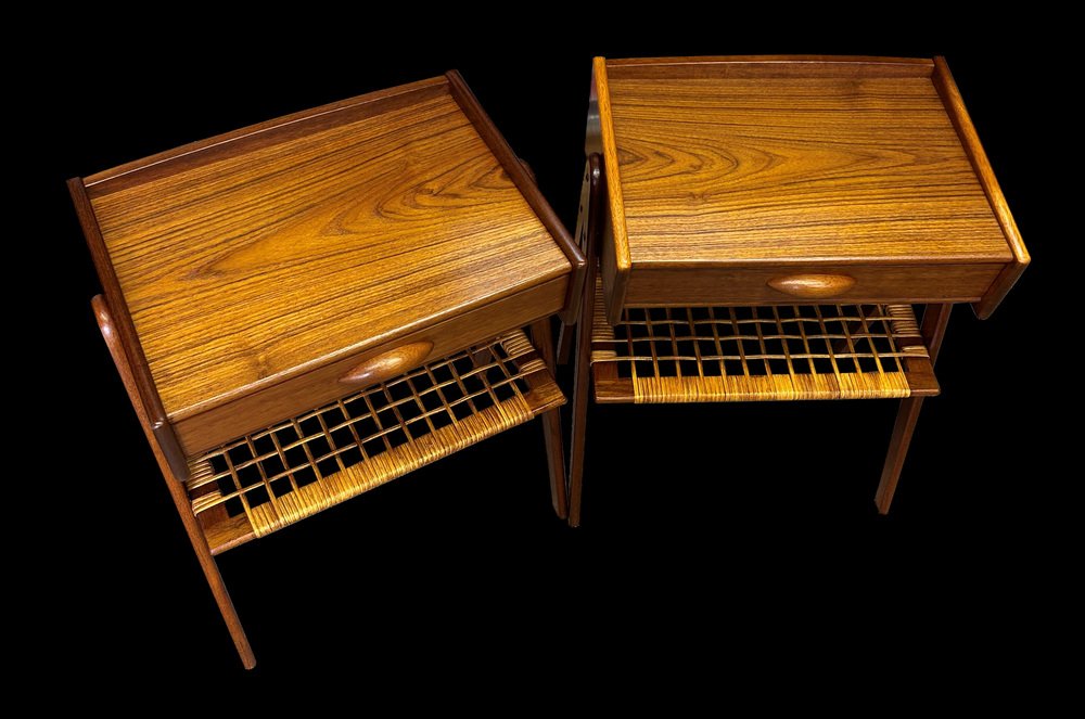 Bedside Tables in Teak and Wicker by Soren Rasmussen, 1960s, Set of 2