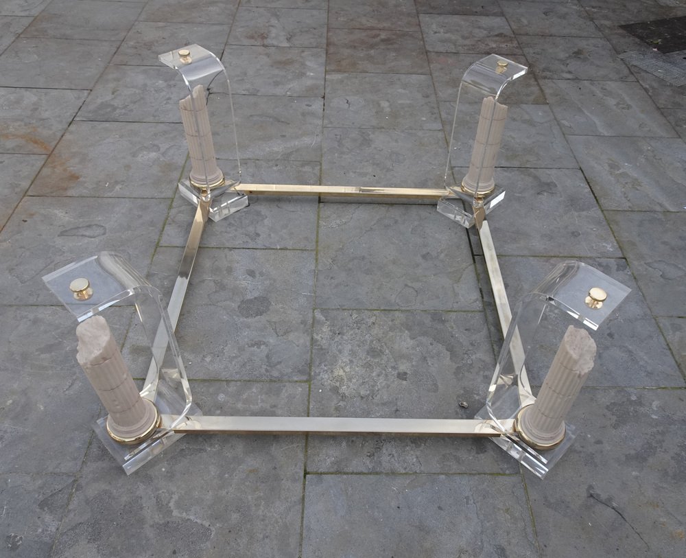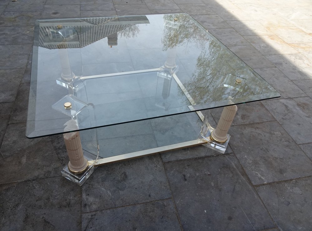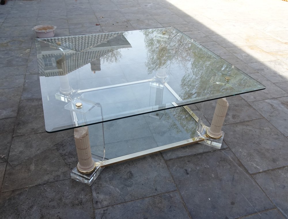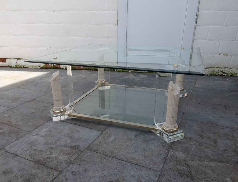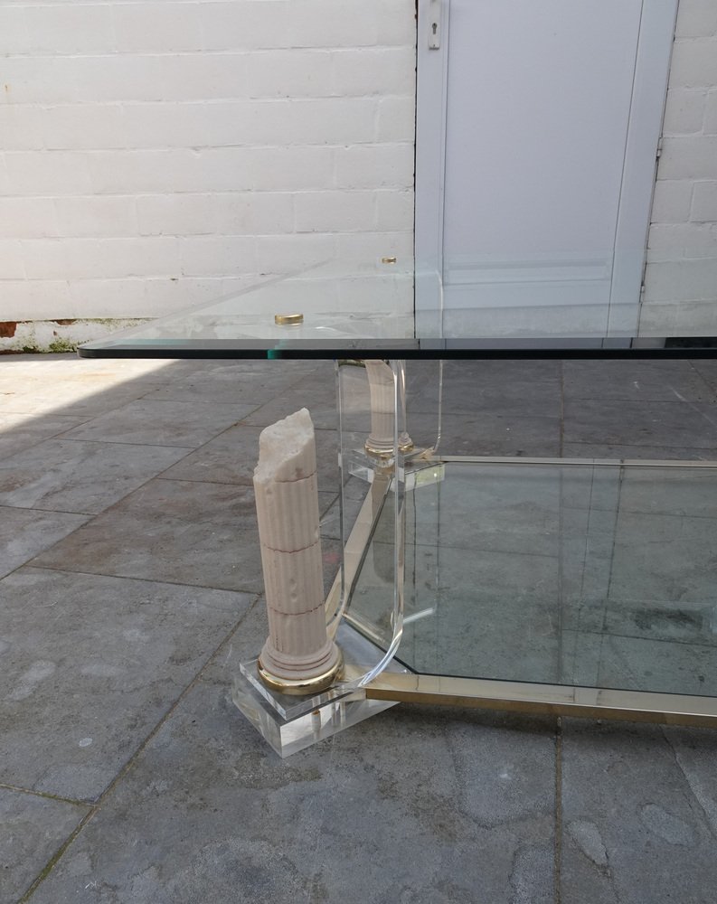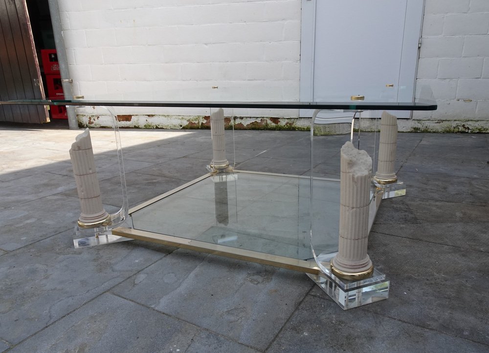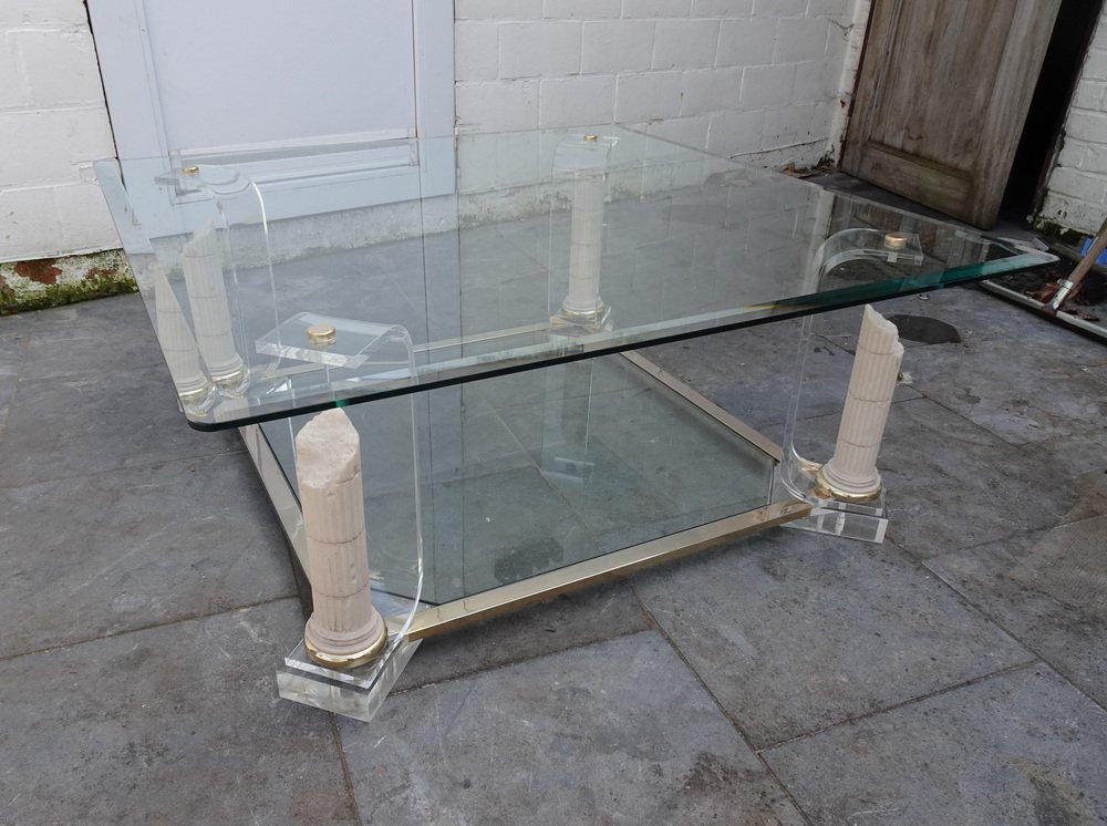 Belgian Acrylic Glass & Gilded Brass Coffee Table, 1970s