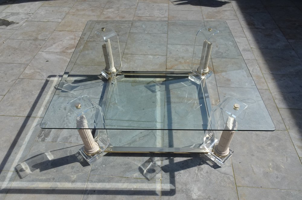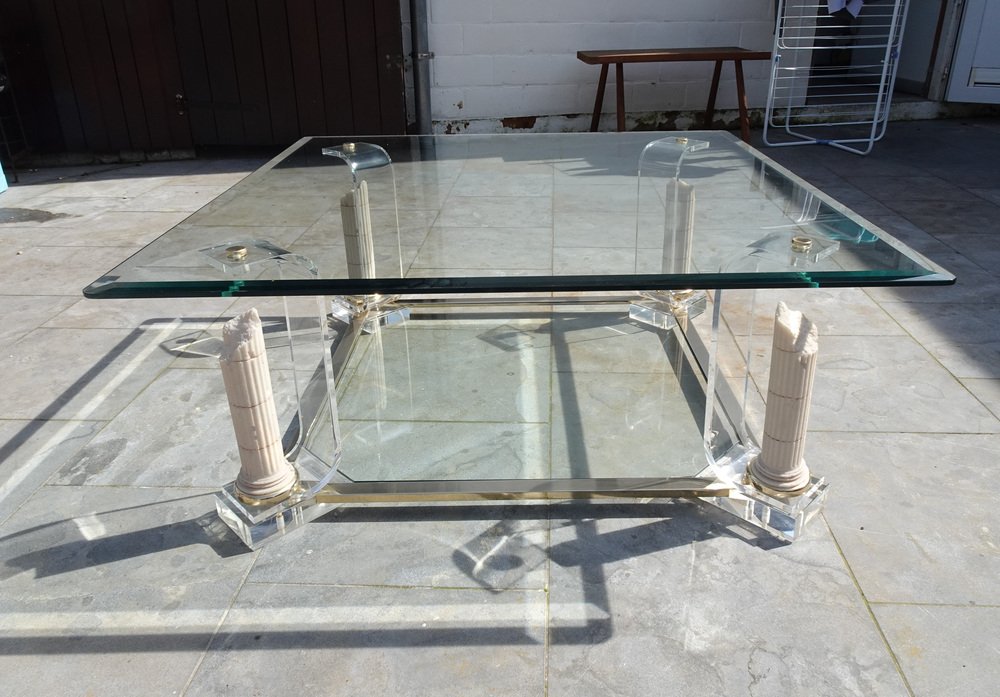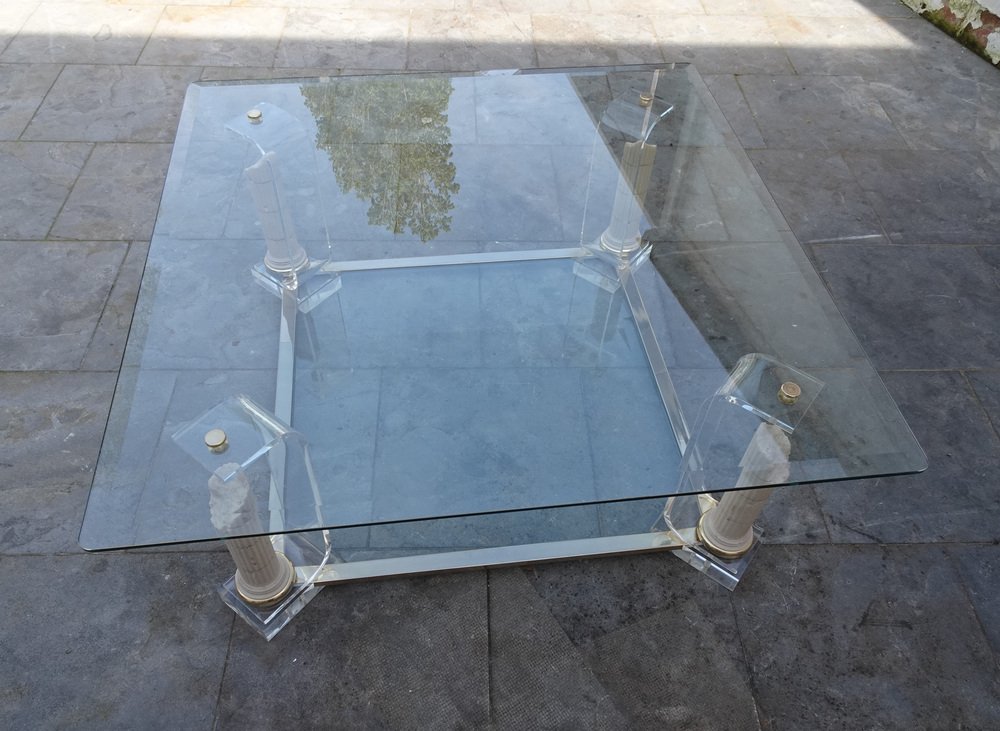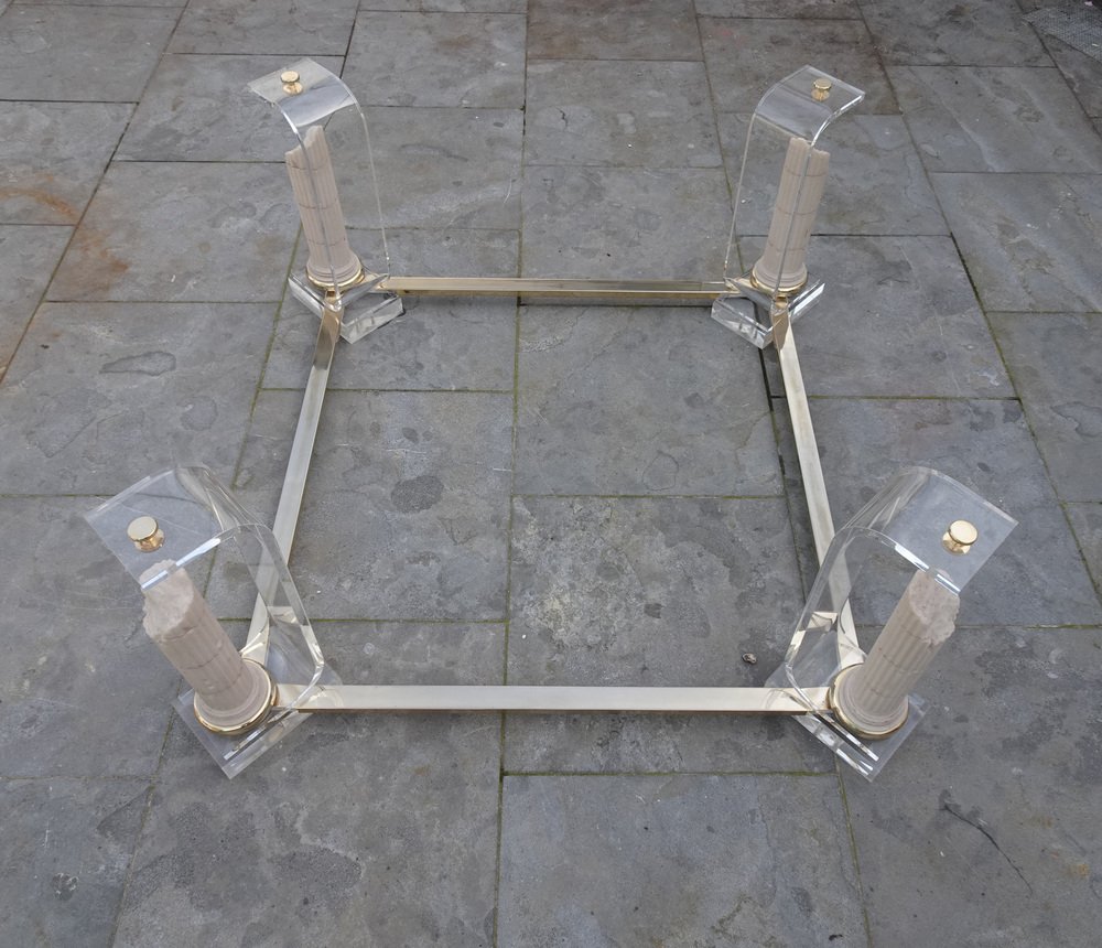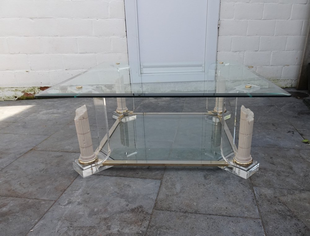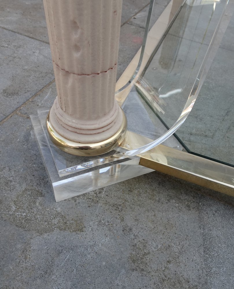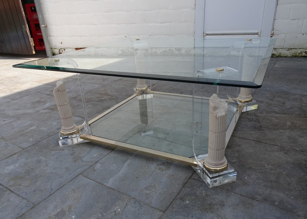 Belgian Acrylic Glass & Gilded Brass Coffee Table, 1970s
