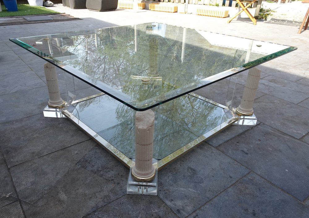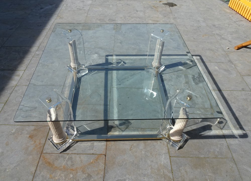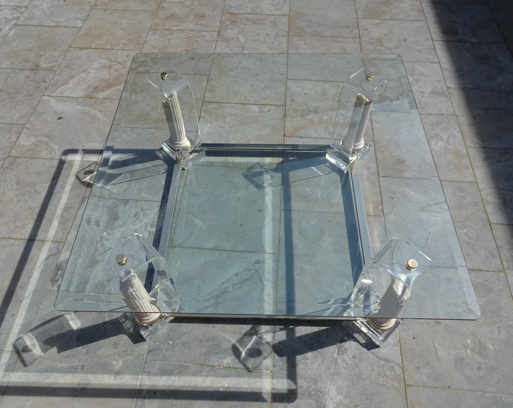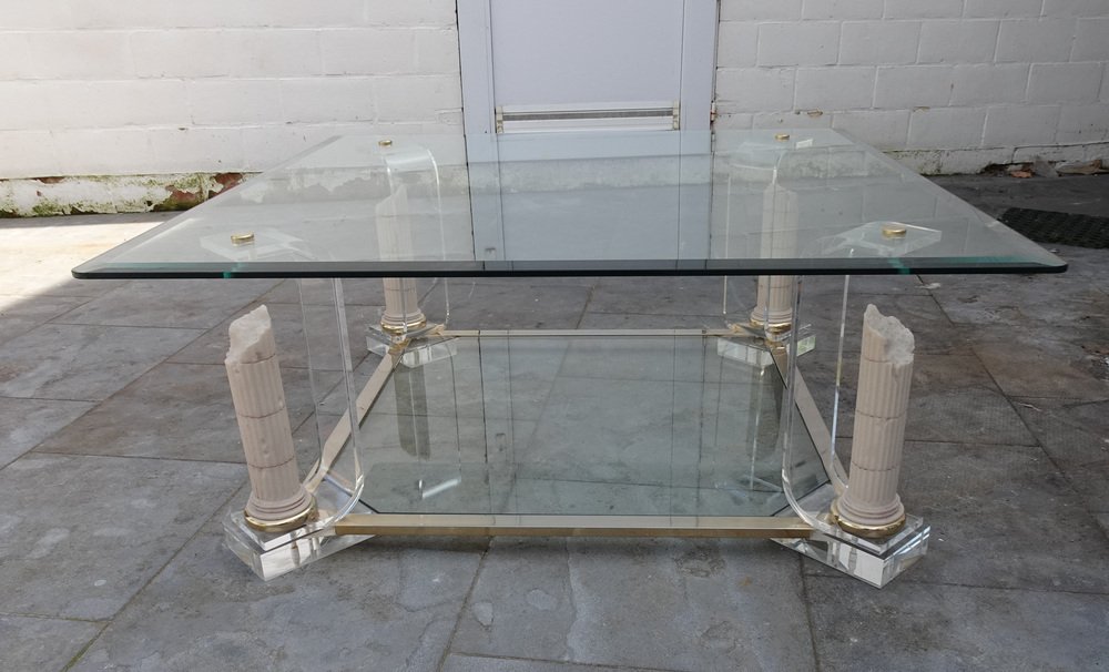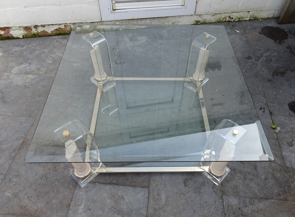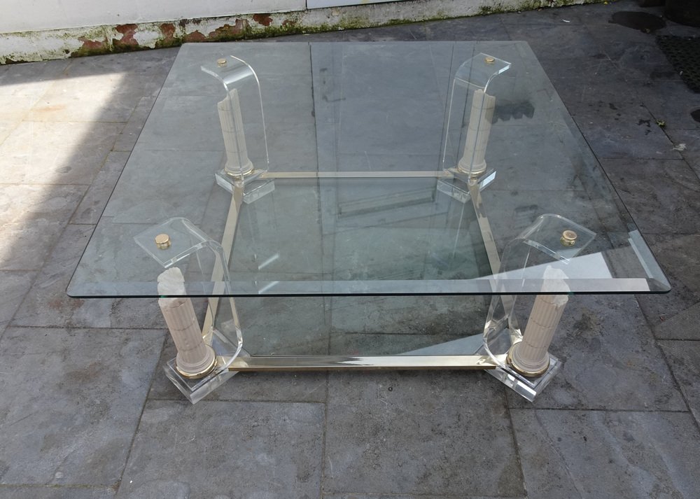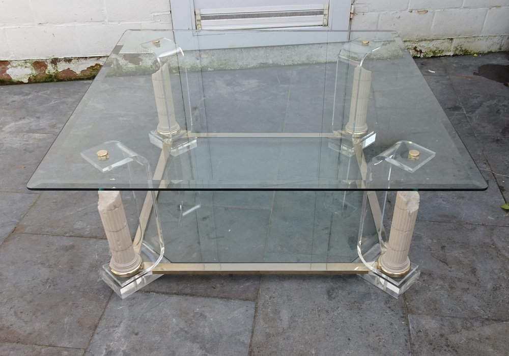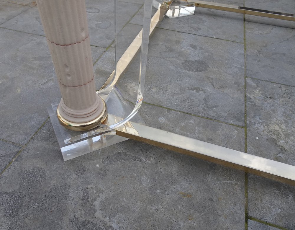 Belgian Acrylic Glass & Gilded Brass Coffee Table, 1970s