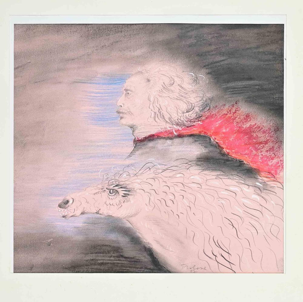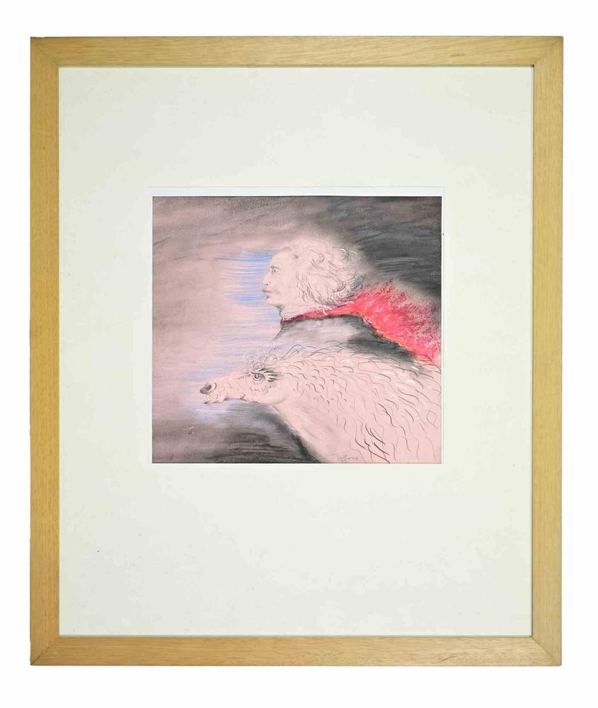 Benito Trolese, Self Portrait with Horse, 1987, Mixed Media on Paper