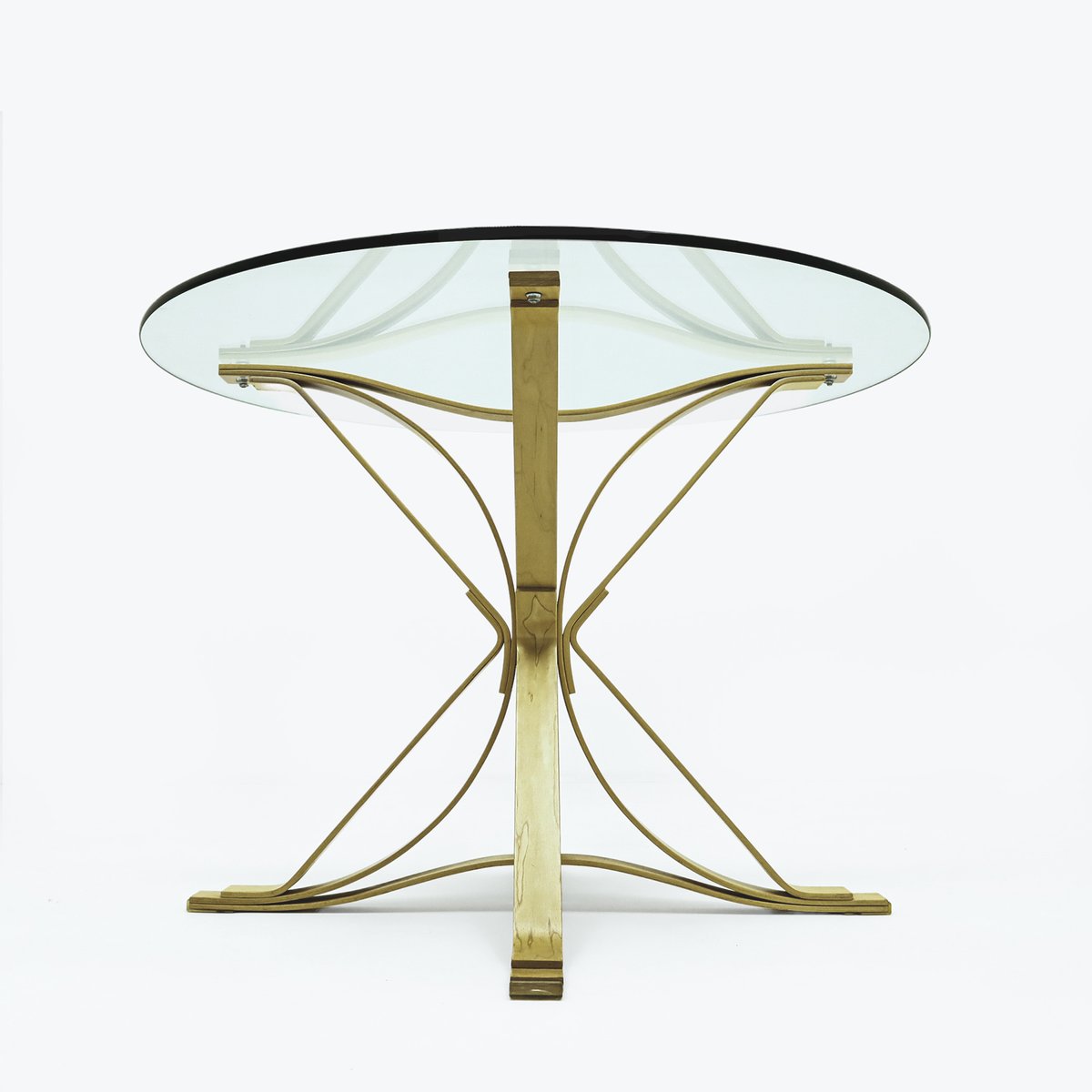 Vintage Brutalist Polished Brass Coffee Table with Glass Top by Claude Santarelli, 1970s