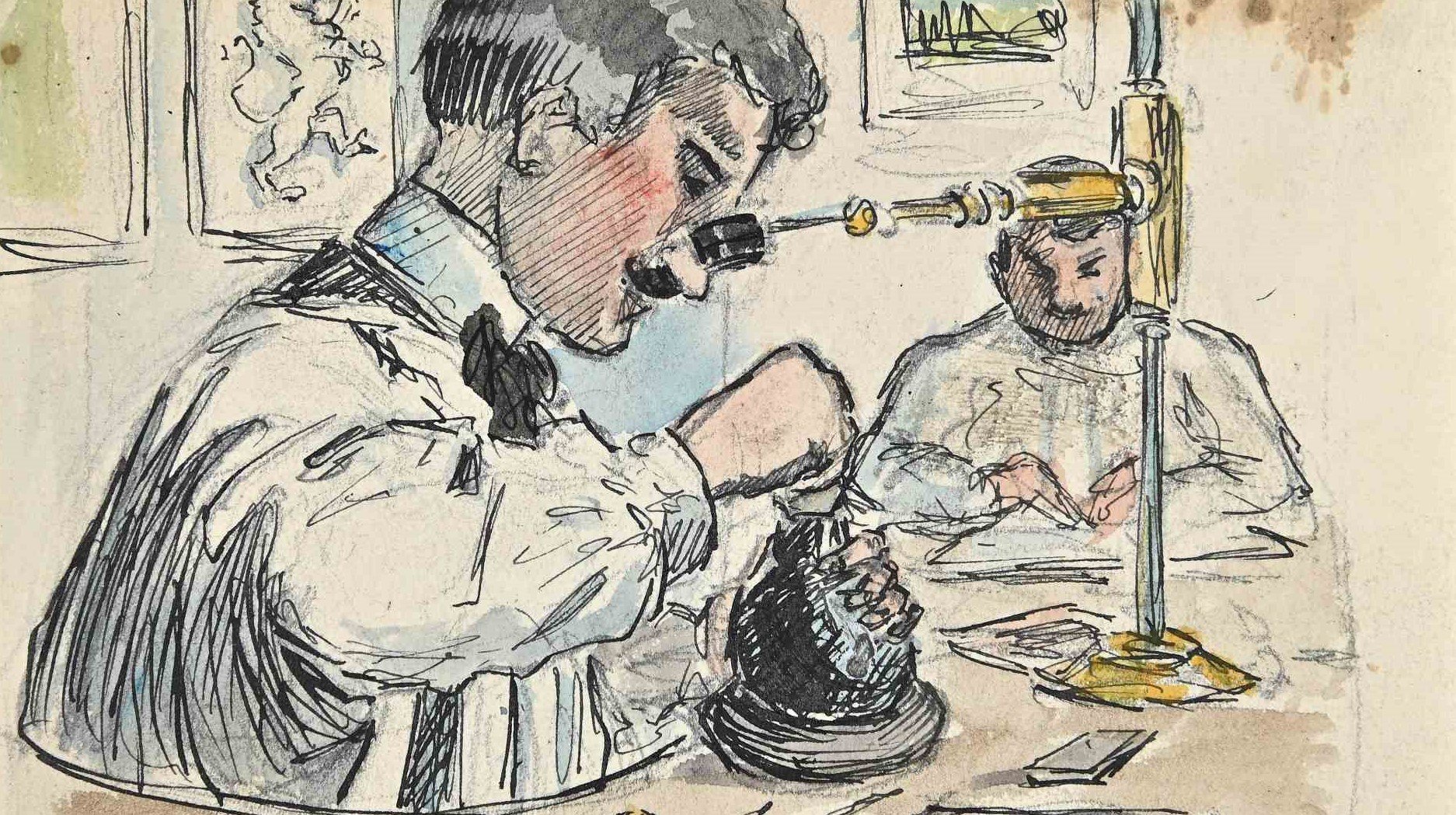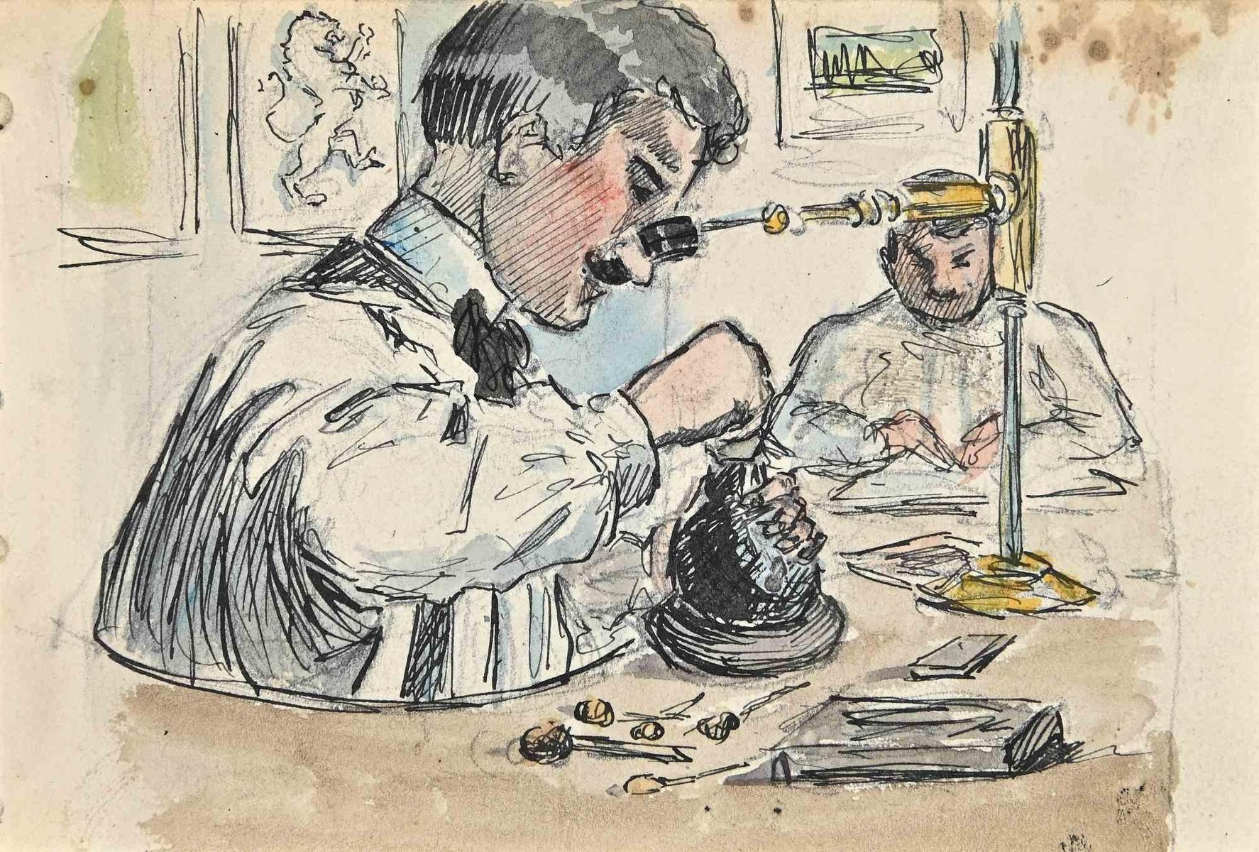 Bernard Bécan, Laboratory, Original Drawing, Mid-20th-Century