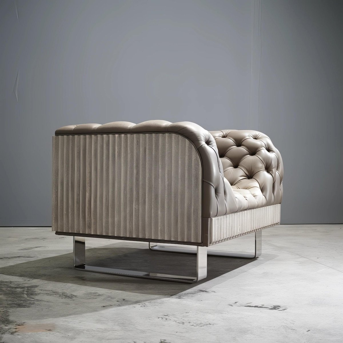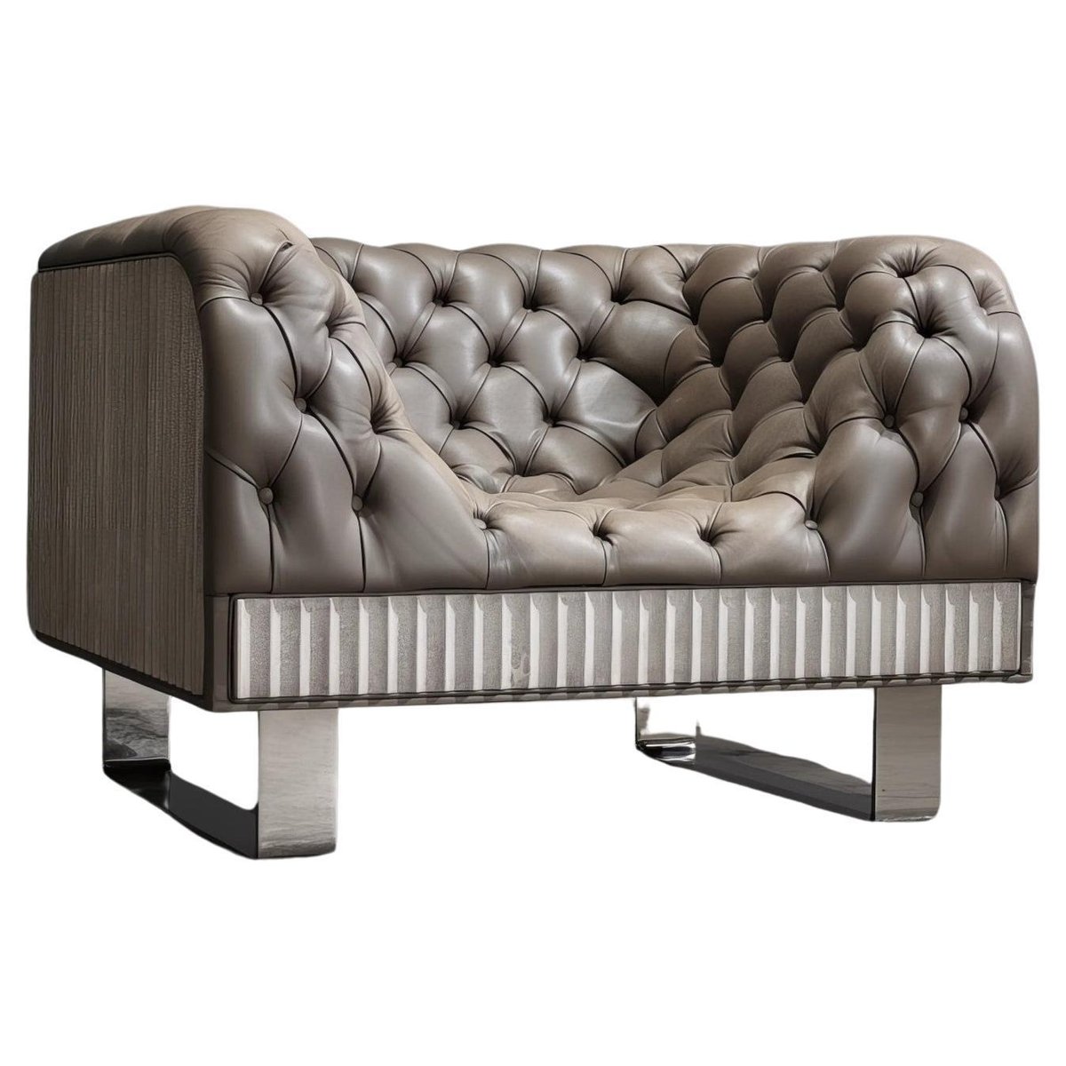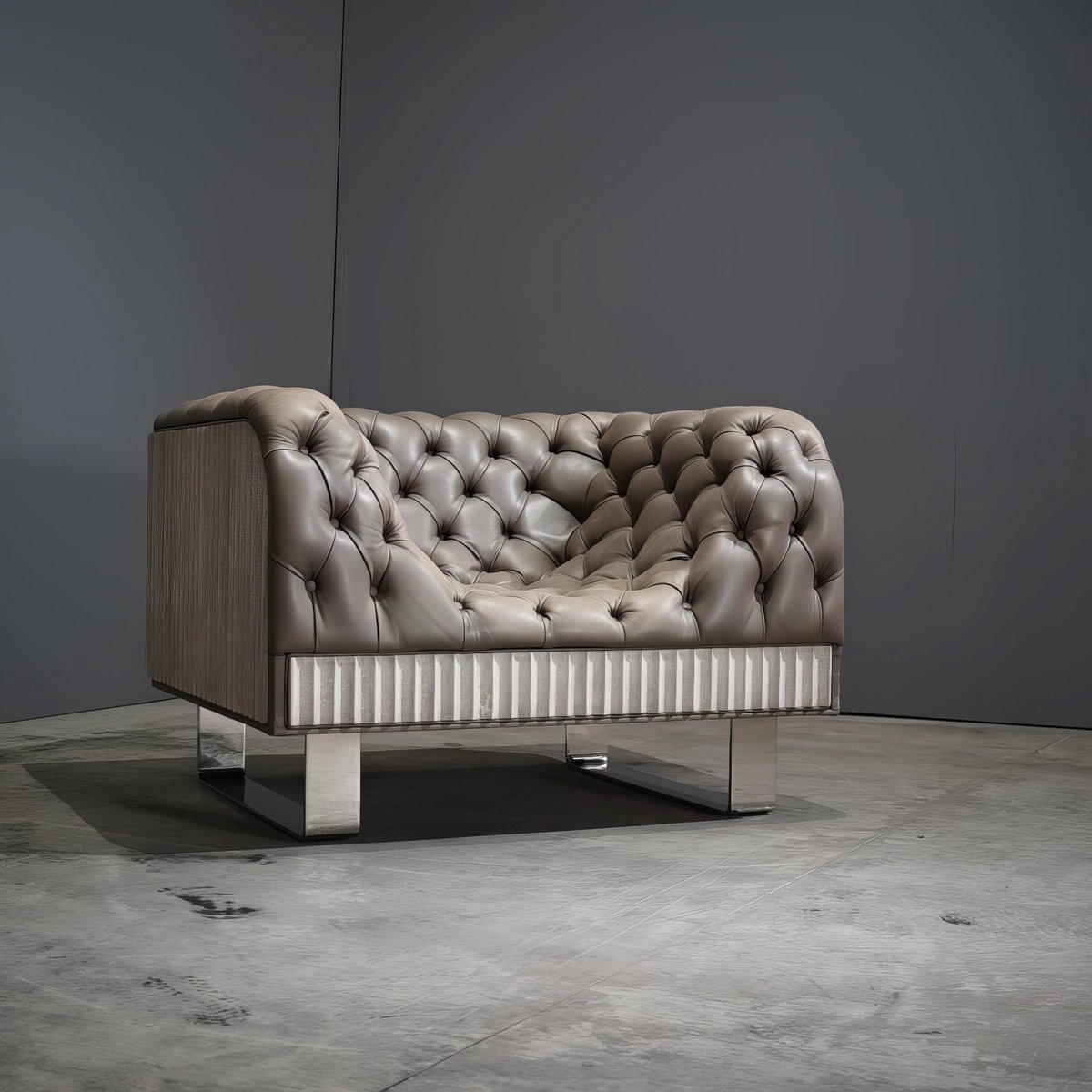 Bespoke Concrete Armchair in Pewter Napa Leather with Soft Chesterfield Detailing