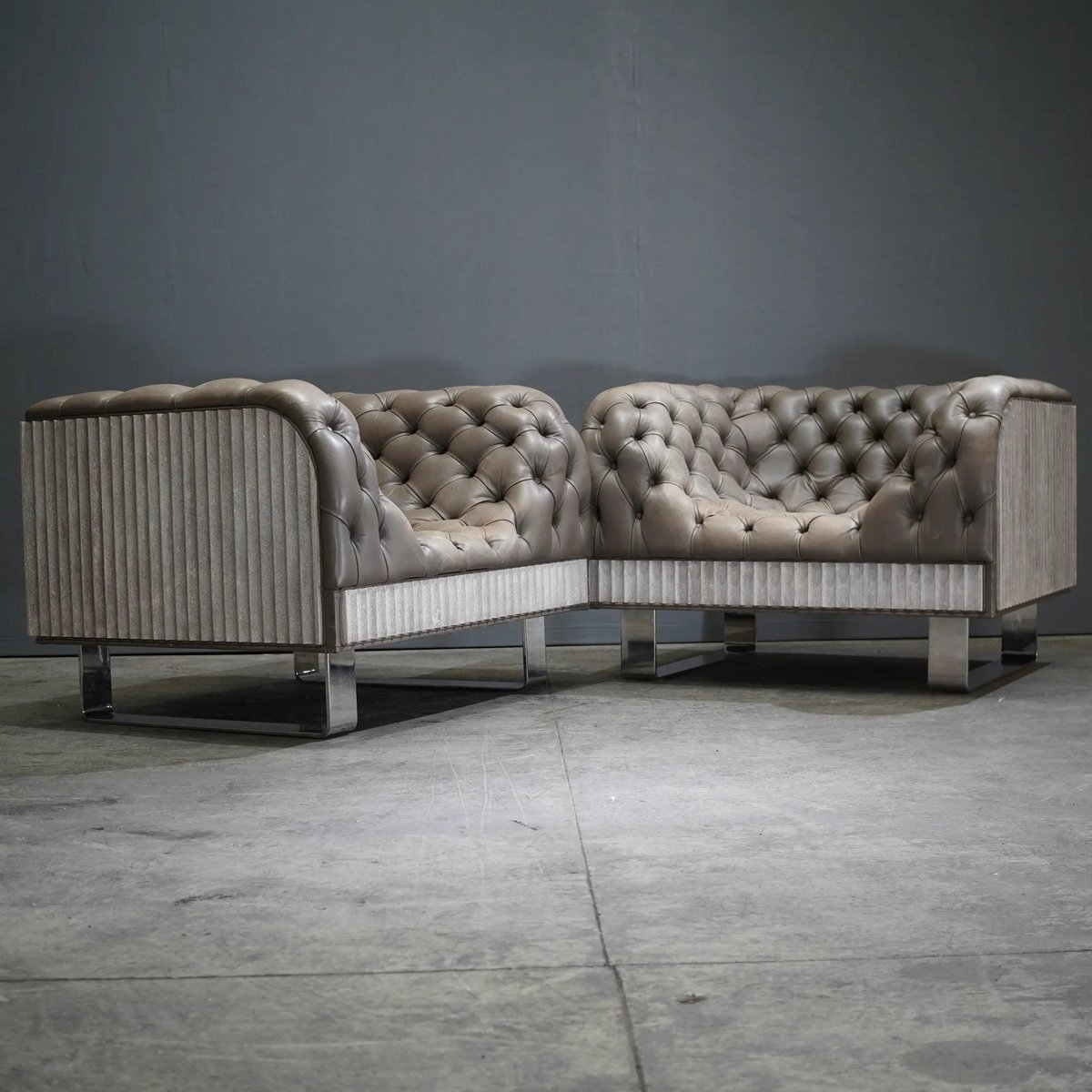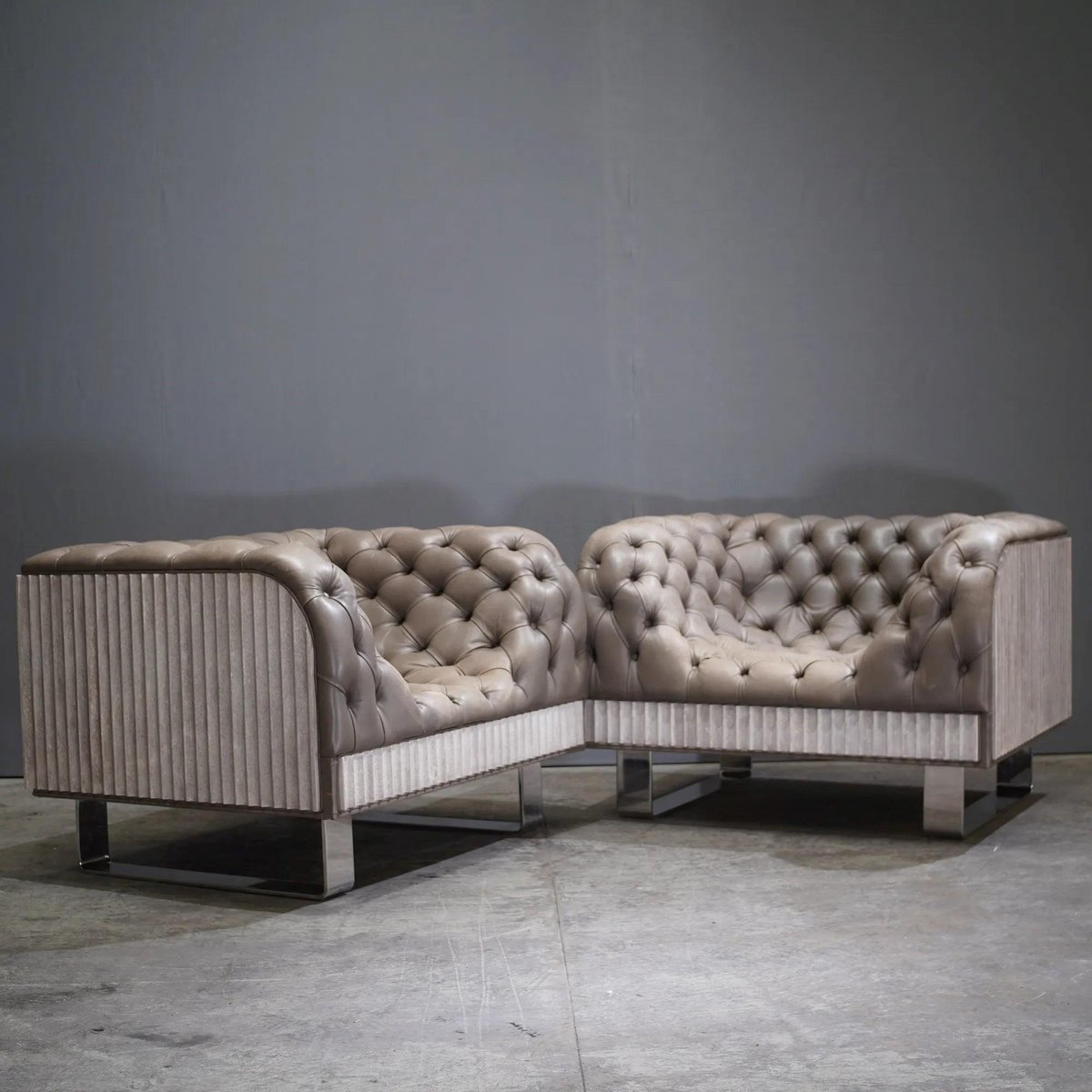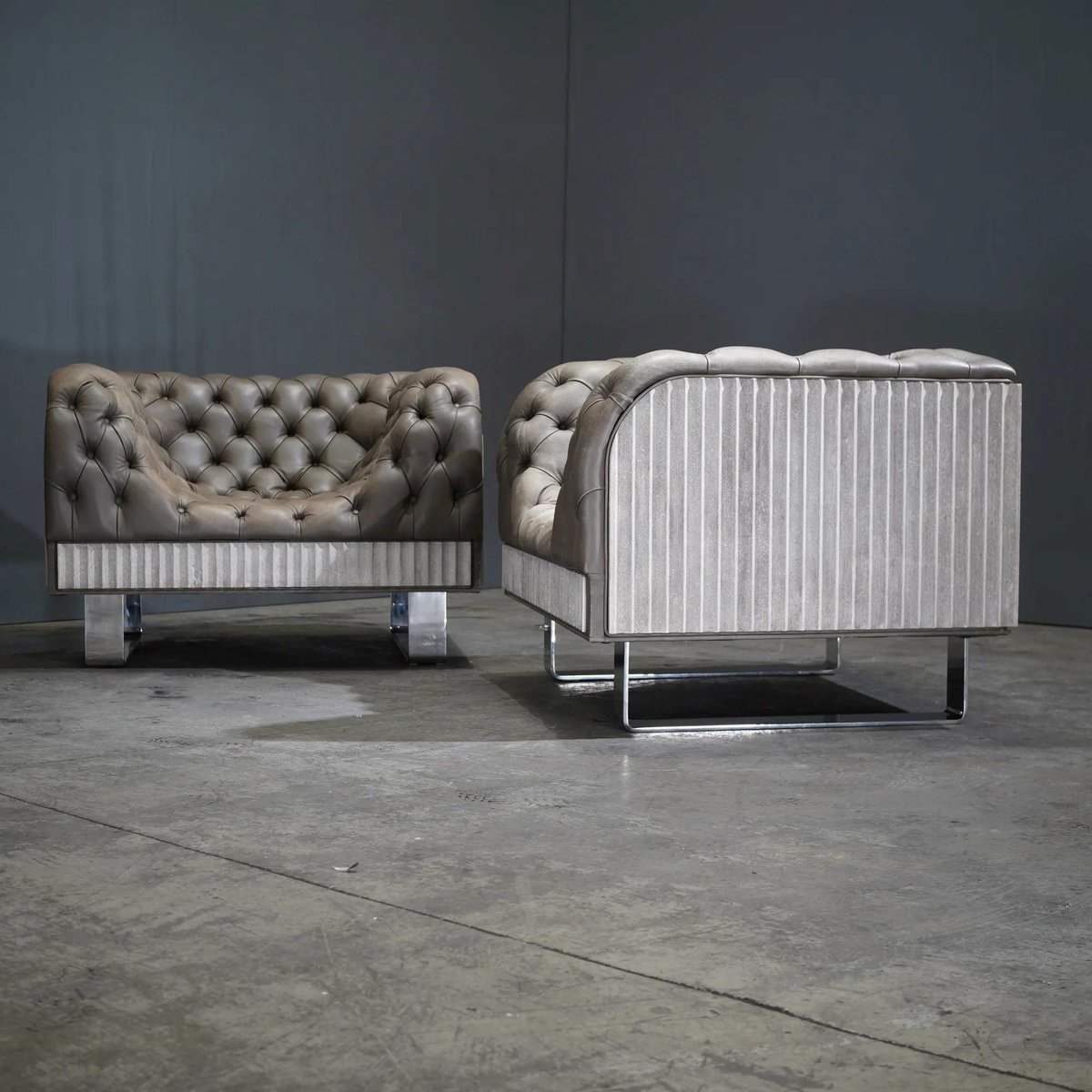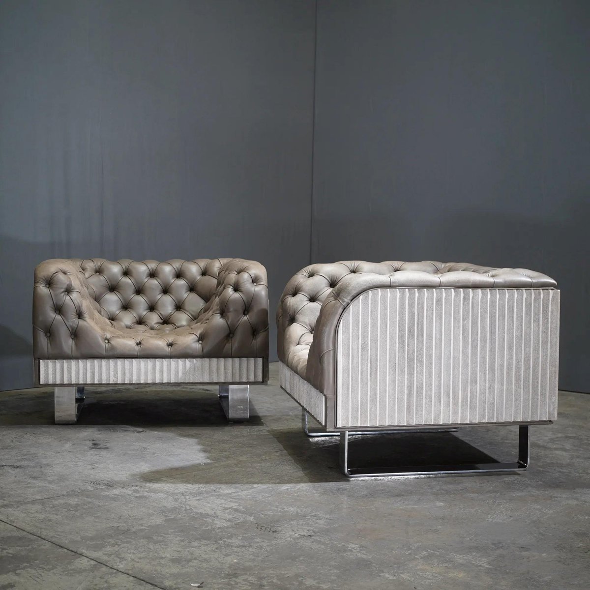 Bespoke Concrete Armchair in Pewter Napa Leather with Soft Chesterfield Detailing