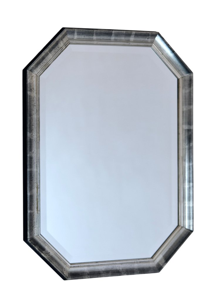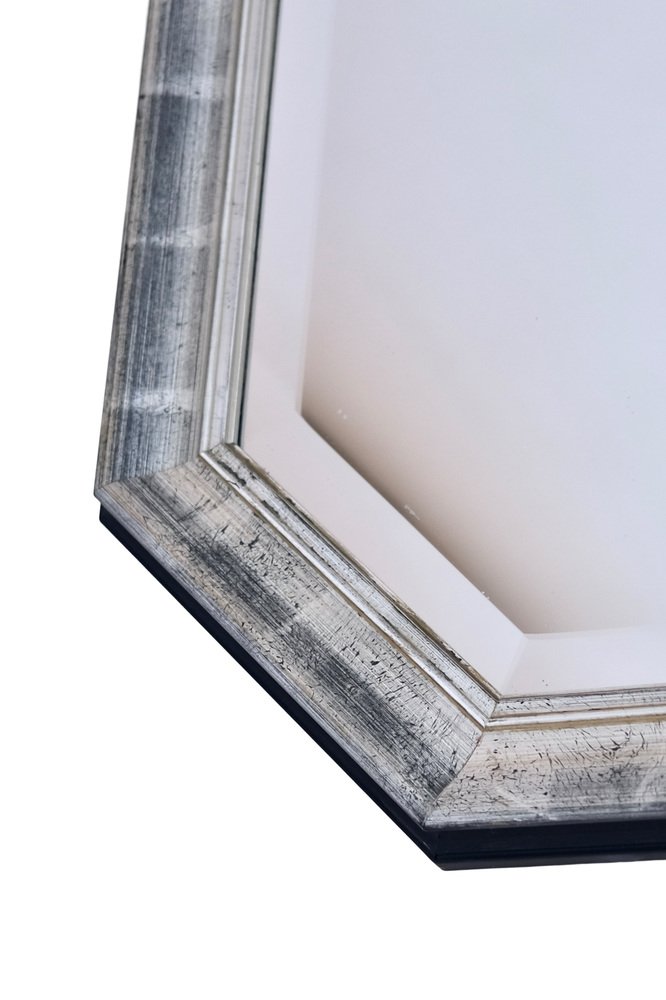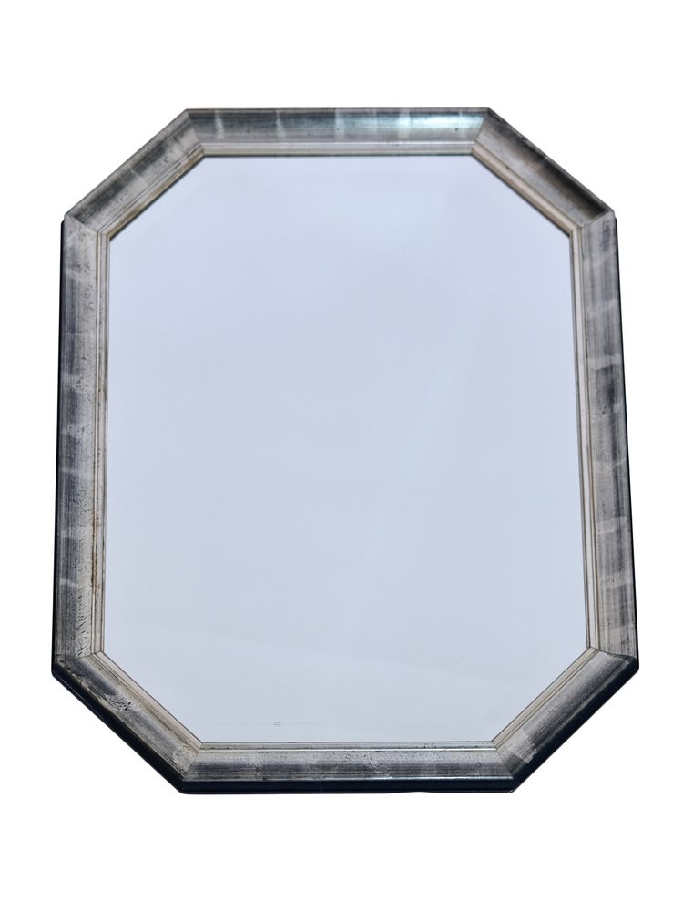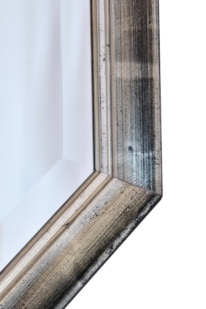 Beveled Wall Mirror with Silver and Black Frame, 1990s