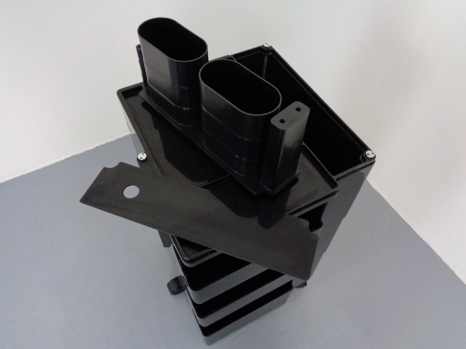 In 1953, Colombo made his first foray into design by creating a decorative ceiling for a Milan jazz club. In 1954, he made a series of television shrines for the Milan Trienniale. Inspired by these experiences, Colombo enrolled as an architecture student at Milan Polytechnic. When his father became ill in 1958, Colombo abandoned painting altogether; he and his younger brother, Gianni, took over the family business, using the factory as an experimental space for the latest production techniques and materials, including fiberglass, PVC, and polyethylene.